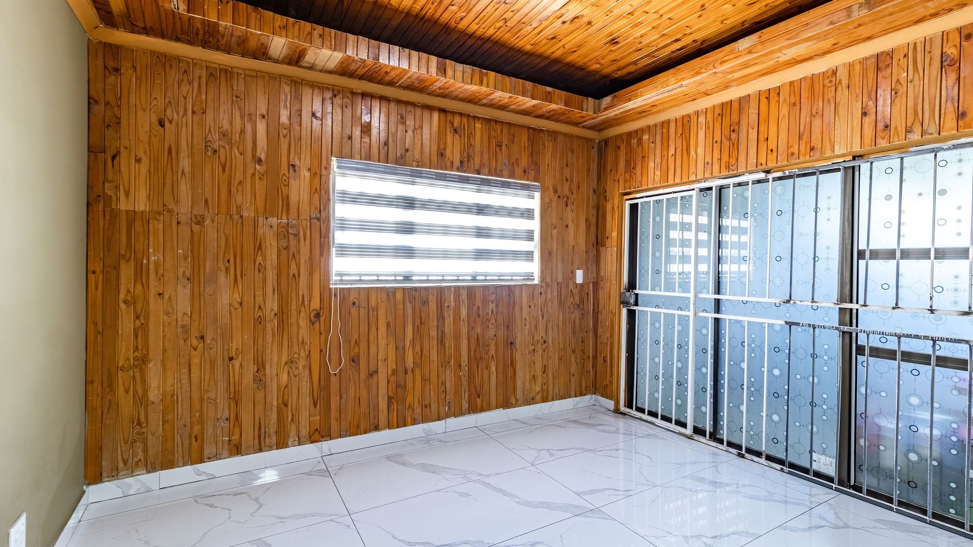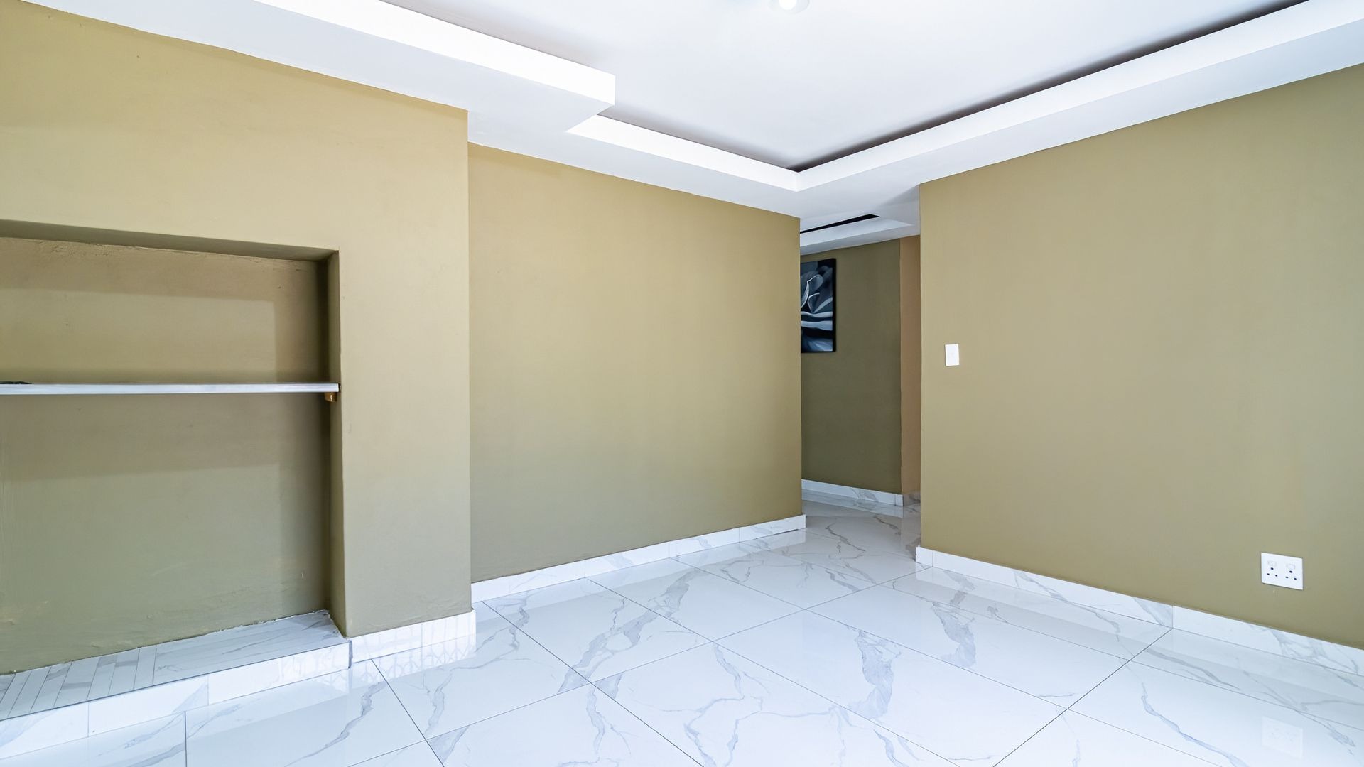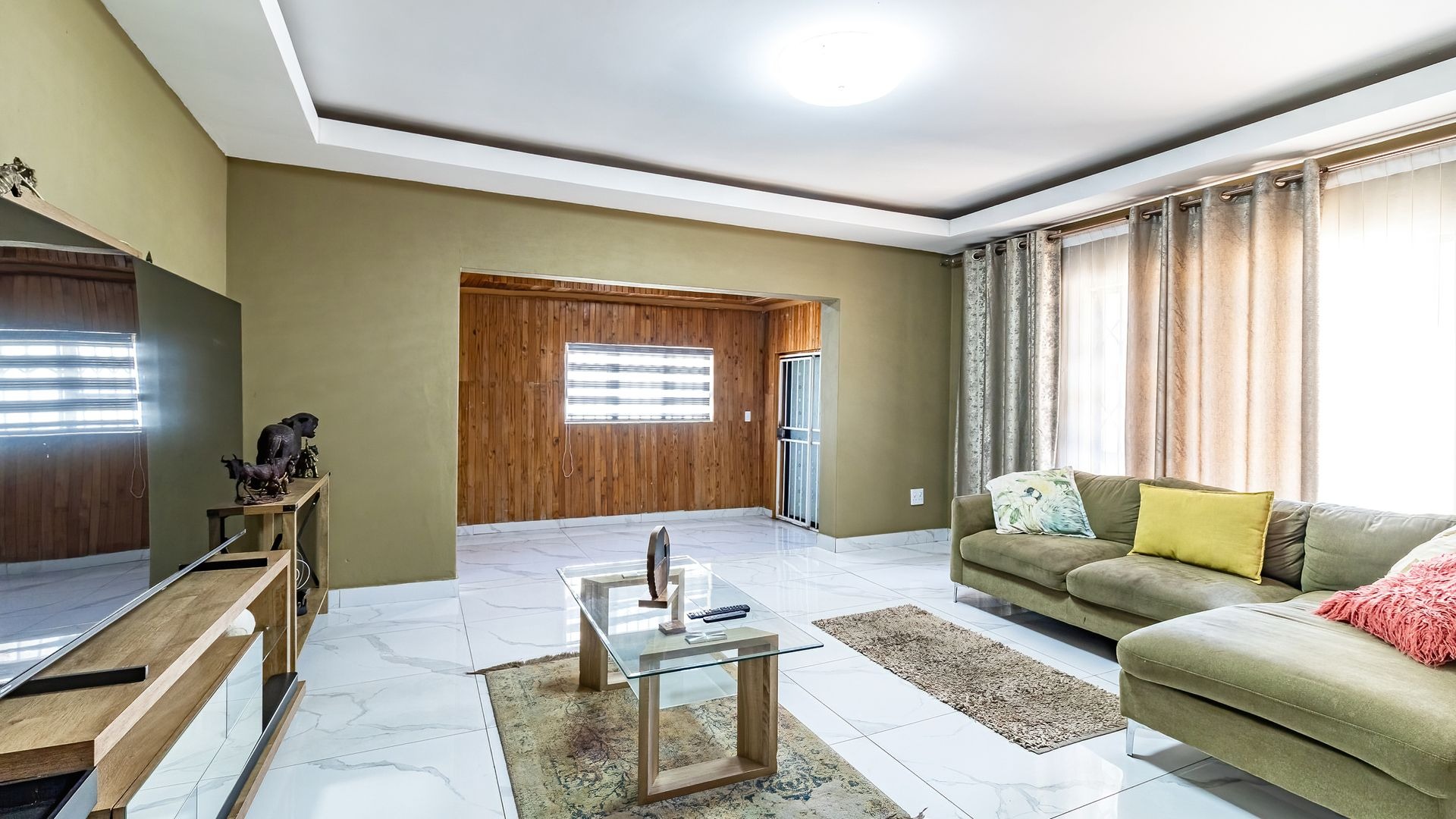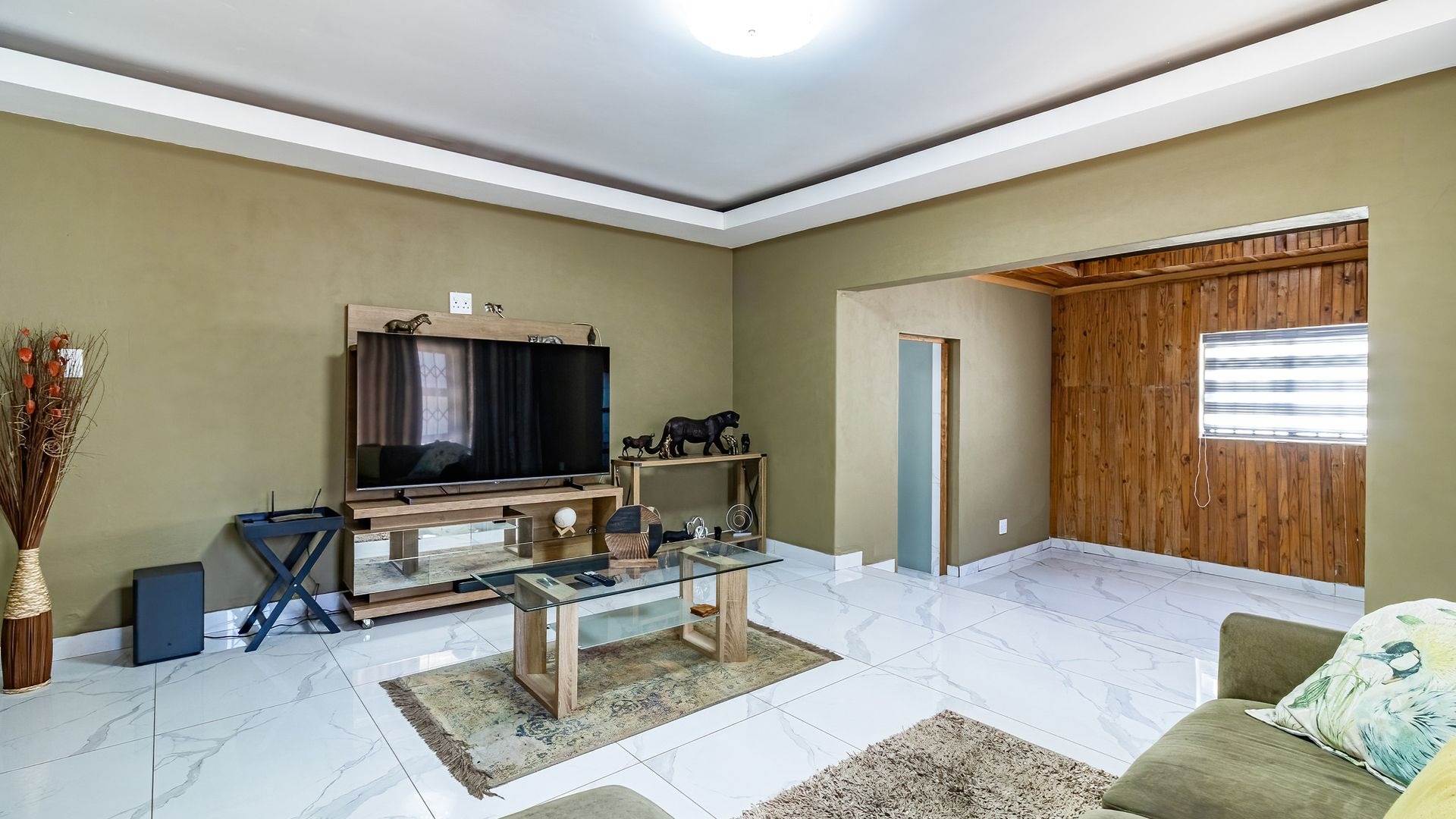 Discover this inviting 3-bedroom, 1.5-bathroom residence nestled on a generous 1030 sqm erf in the suburban heart of Mindalore, Krugersdorp. The property boasts a well-maintained exterior with a modern garage extension and a vast paved driveway, offering ample parking for up to five vehicles. A covered front porch with architectural pillars enhances kerb appeal, while mature shade trees and a private concrete boundary wall provide privacy and a blank canvas for landscaping. Enhanced security features, including window and door grilles, offer peace of mind.