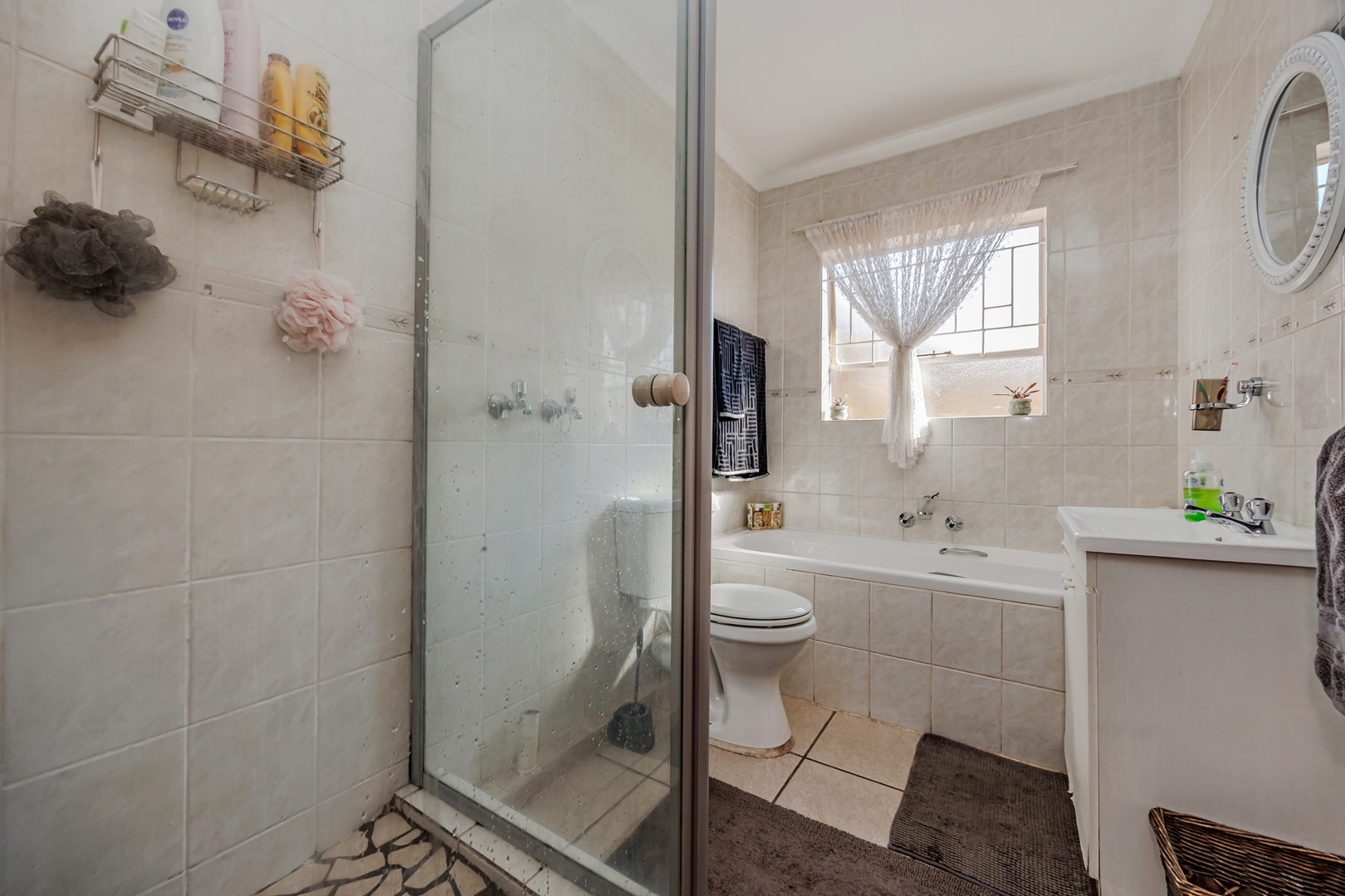 Inside, three sunlit bedrooms provide warm and comfortable retreats, with the spacious main bedroom boasting generous cupboard space. Two well-appointed bathrooms cater perfectly to family living—the family bathroom features a shower, bath, basin, and toilet, while the en-suite offers a bath, basin, and toilet for added privacy.