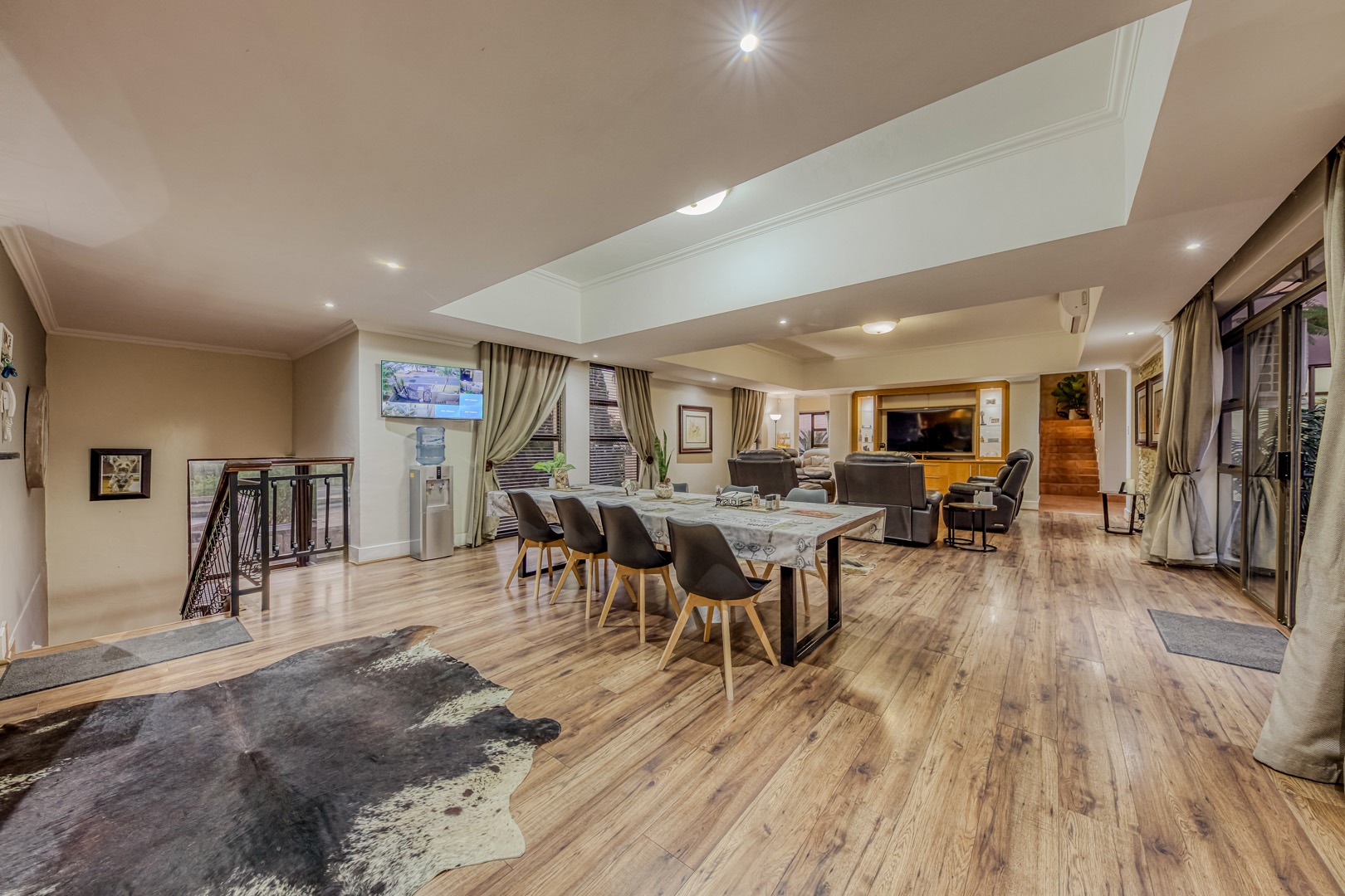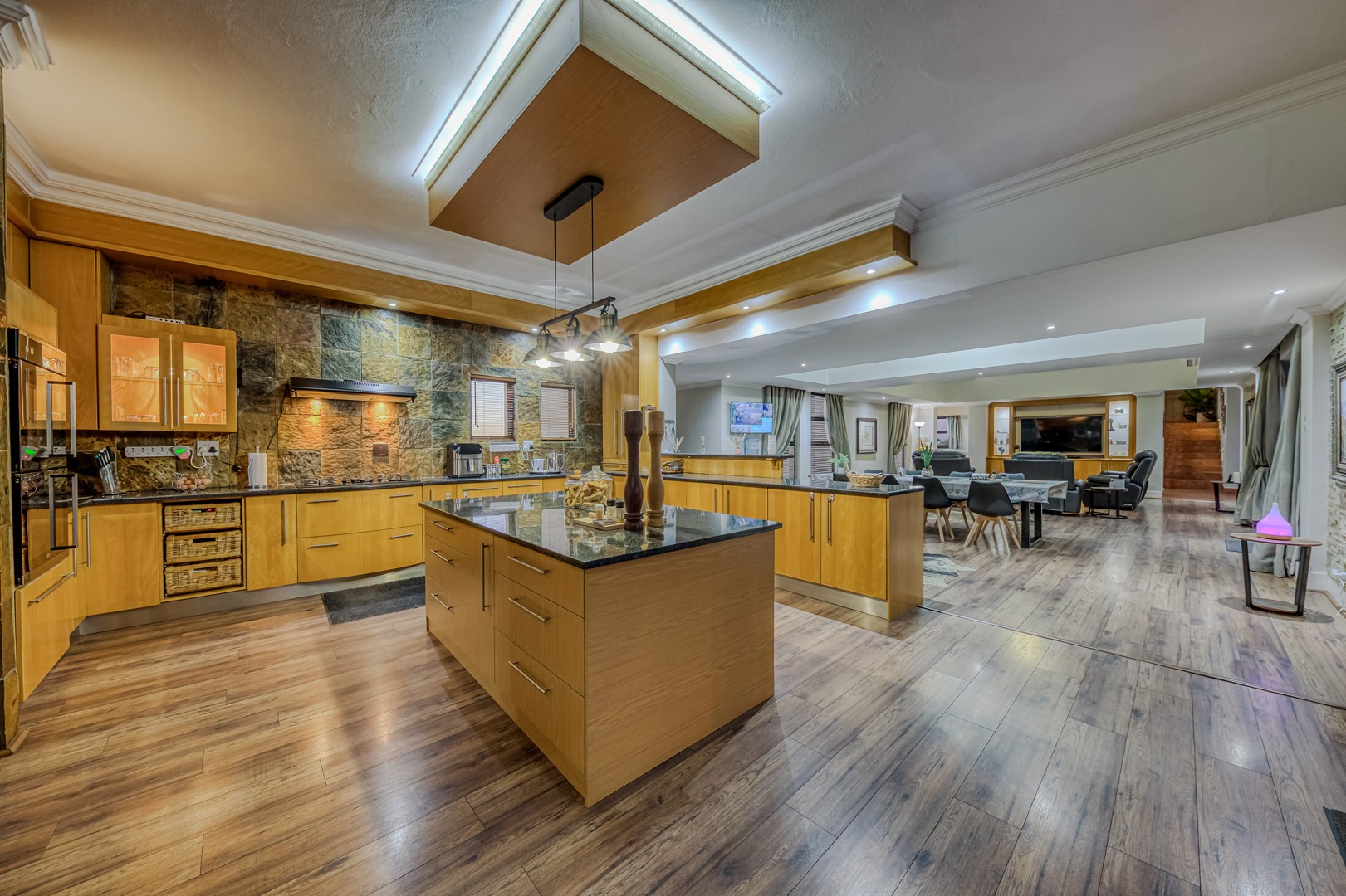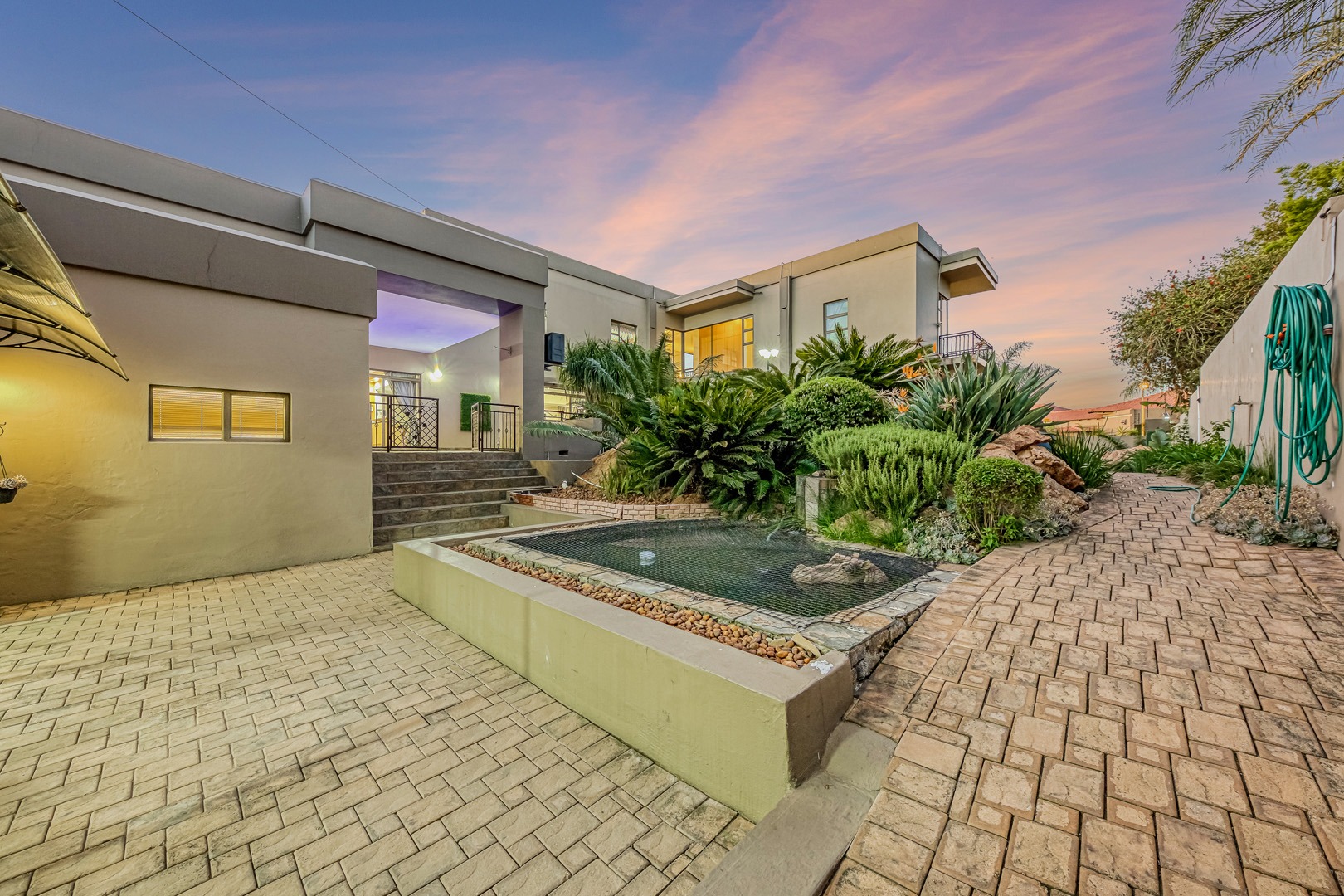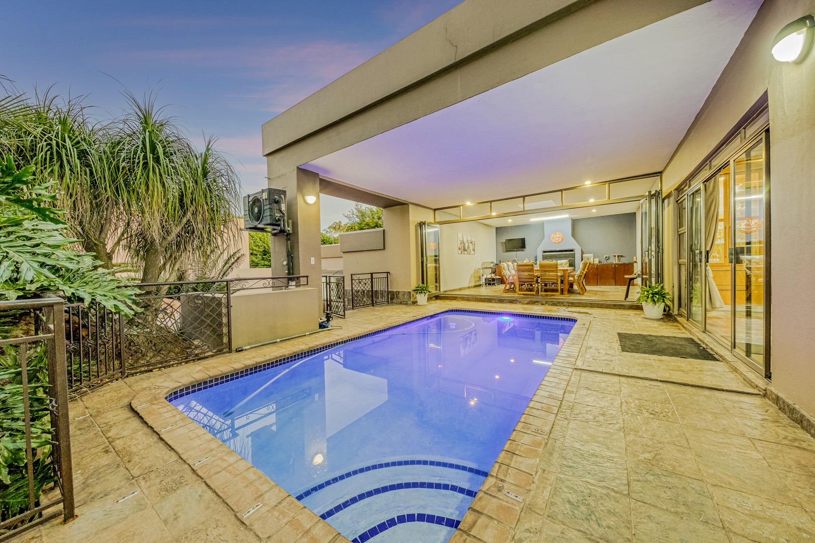 Designed for true off-grid lifestyle, the home is powered by 3-phase electricity, a 15kVA inverter system, and 38 solar panels – keeping your home running efficiently and cost-effectively. A solar-fed heat pump warms the sparkling swimming pool, while a comprehensive water backup system ensures uninterrupted supply.