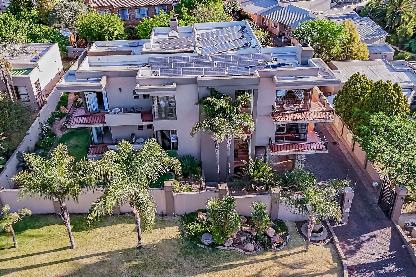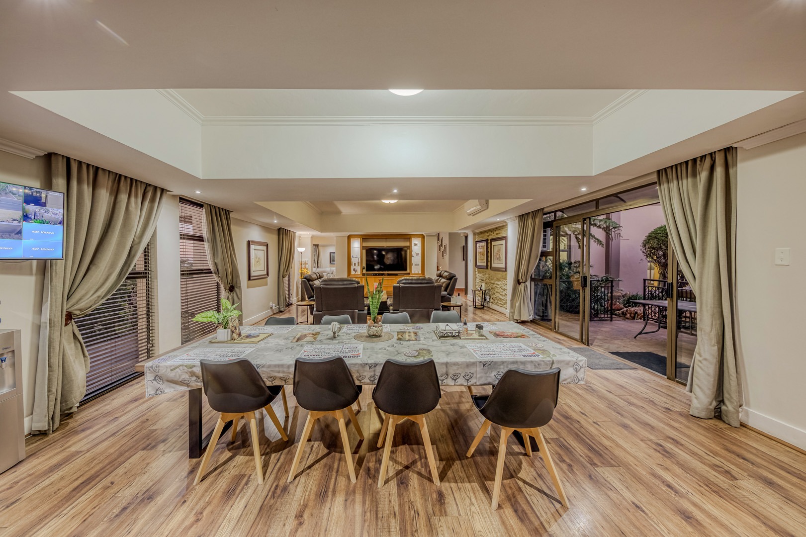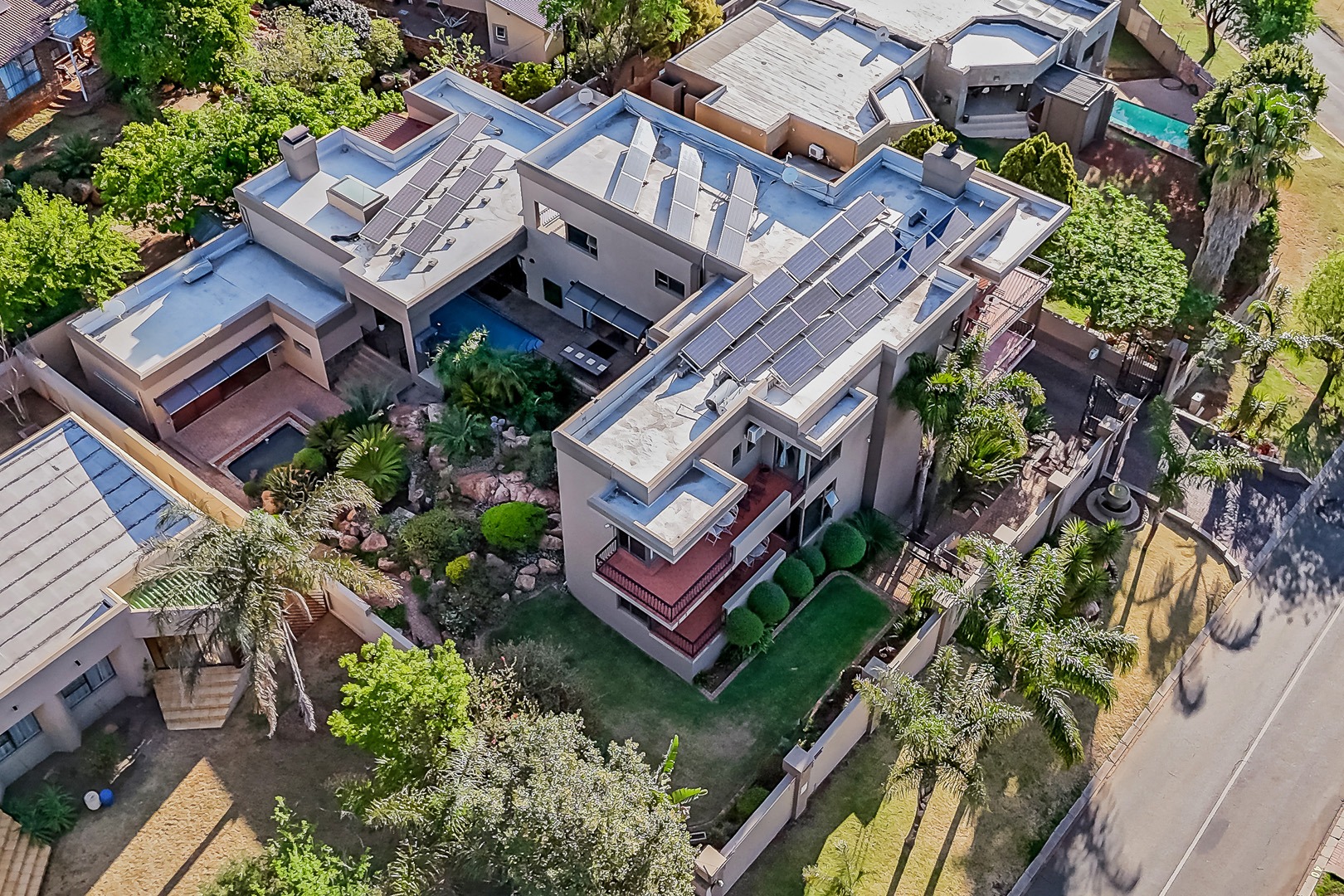 Designed for true off-grid lifestyle, the home is powered by 3-phase electricity, a 15kVA inverter system, and 38 solar panels – keeping your home running efficiently and cost-effectively. A solar-fed heat pump warms the sparkling swimming pool, while a comprehensive water backup system ensures uninterrupted supply.