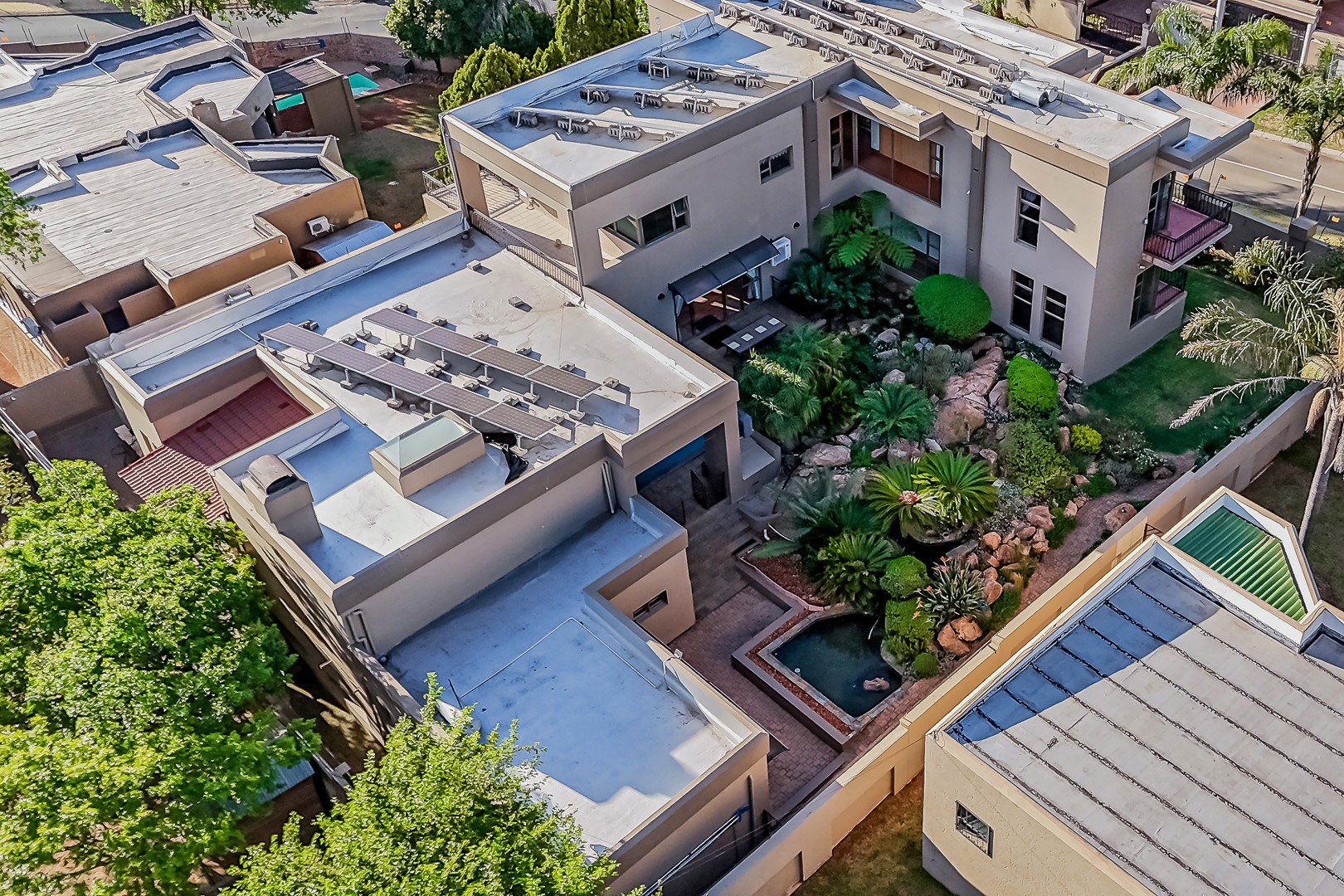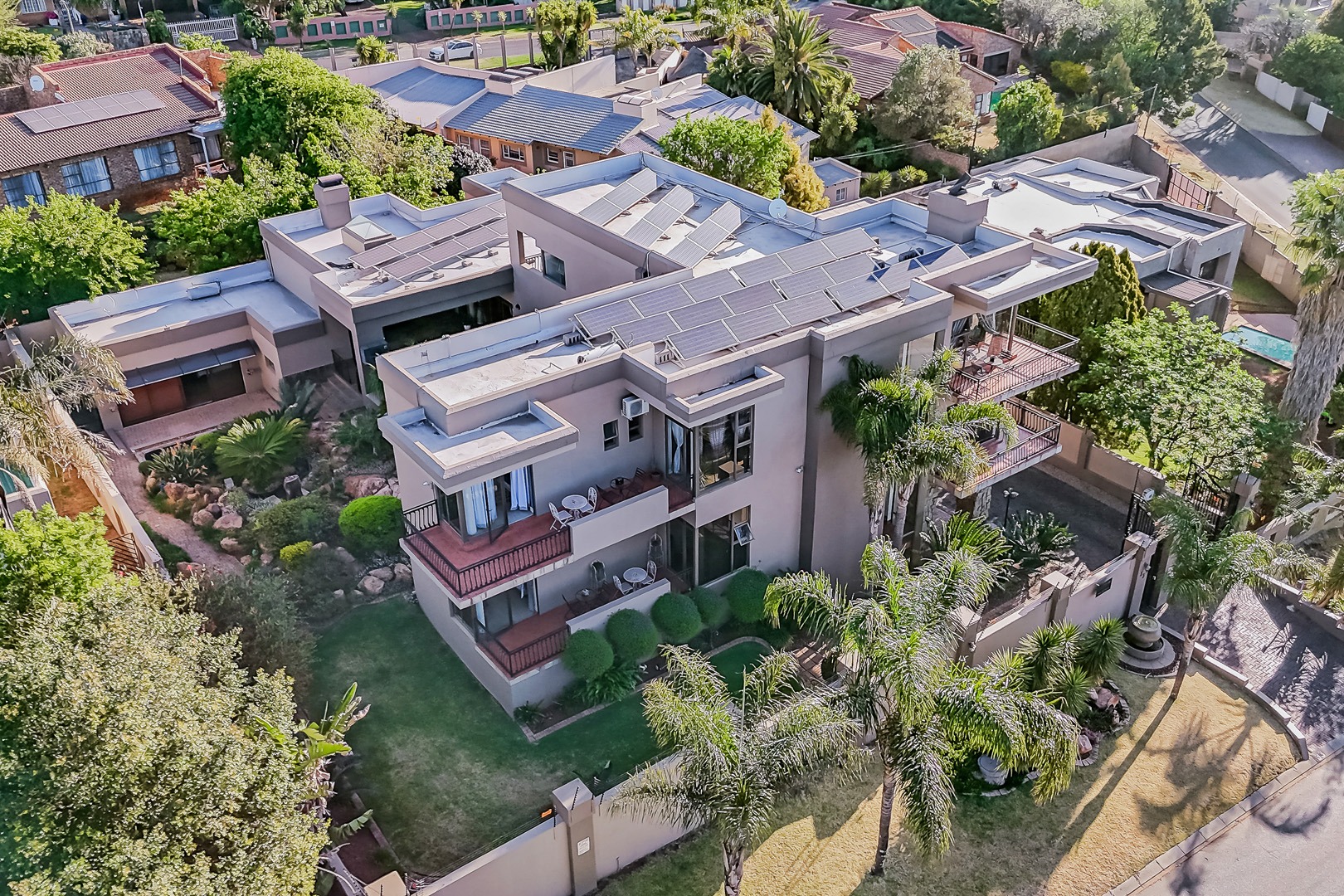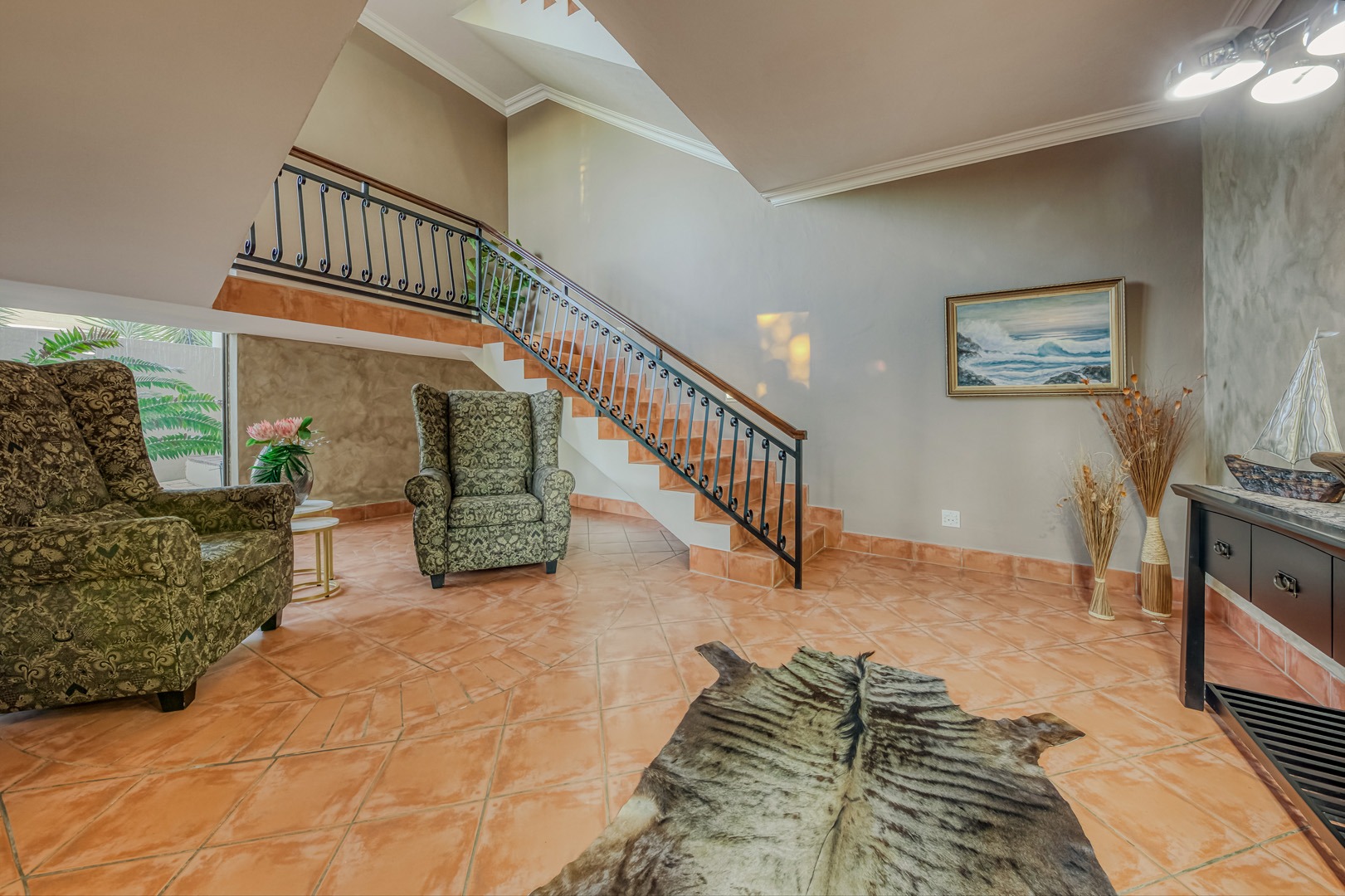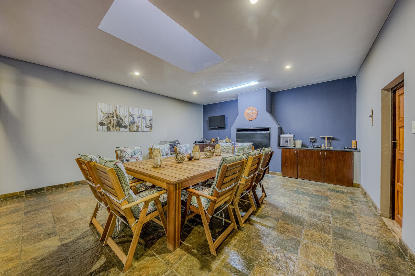 Designed for true off-grid lifestyle, the home is powered by 3-phase electricity, a 15kVA inverter system, and 38 solar panels – keeping your home running efficiently and cost-effectively. A solar-fed heat pump warms the sparkling swimming pool, while a comprehensive water backup system ensures uninterrupted supply.