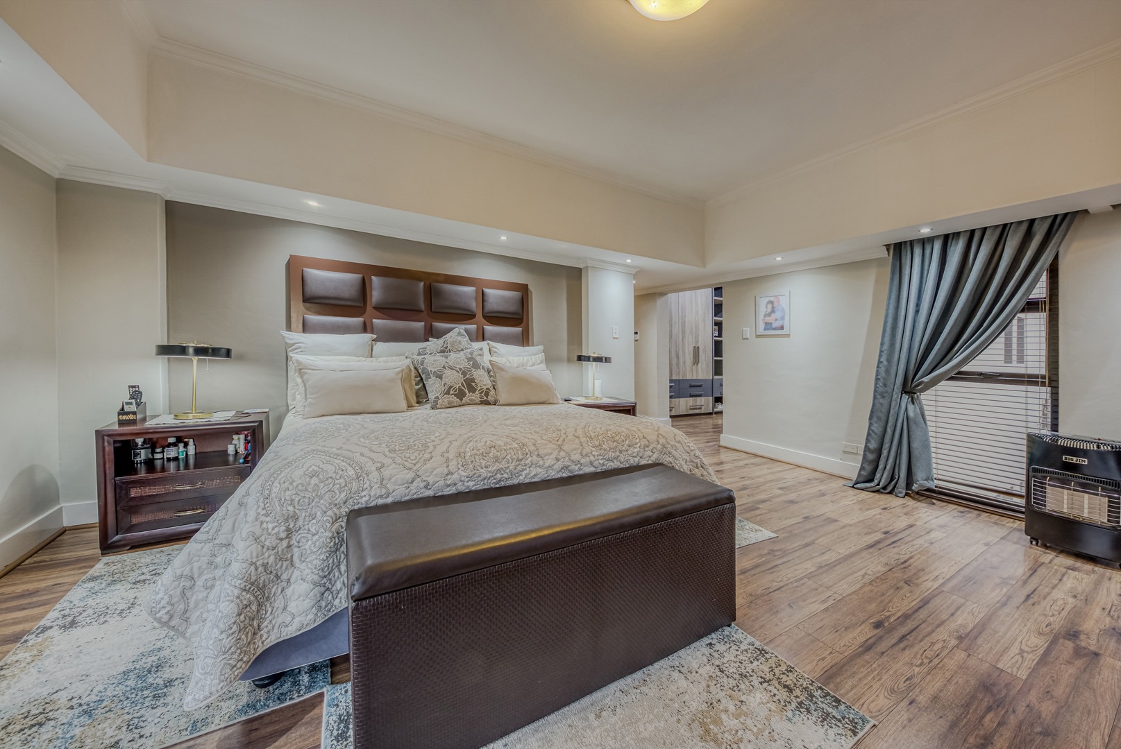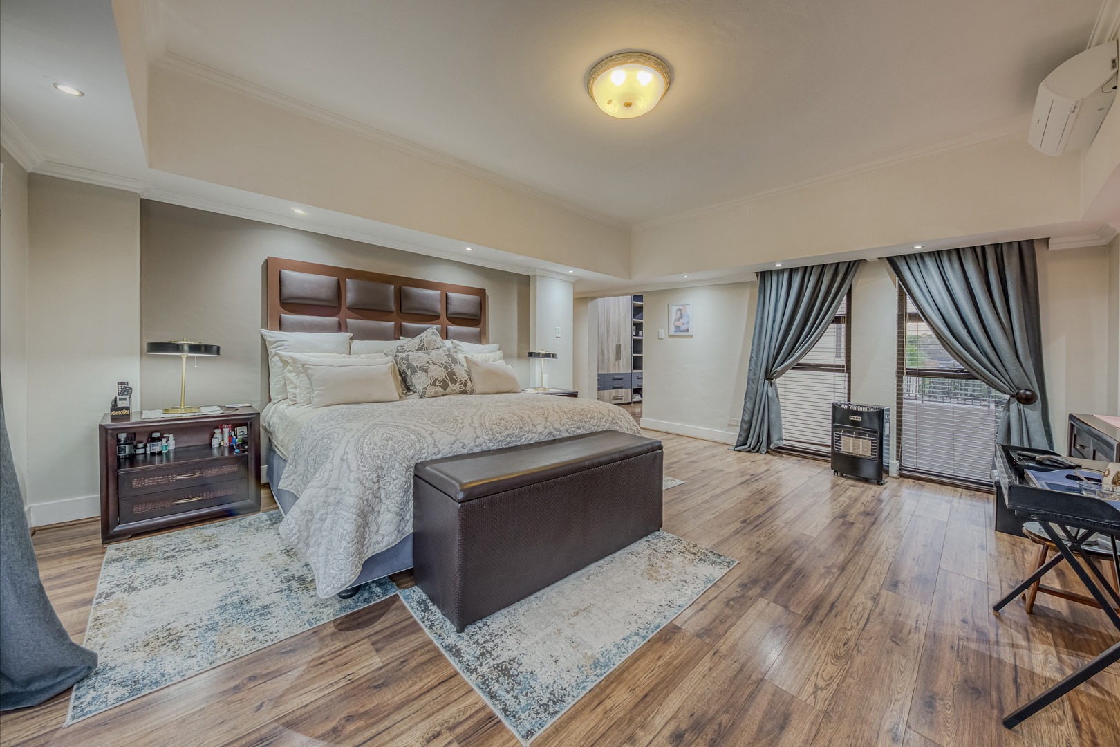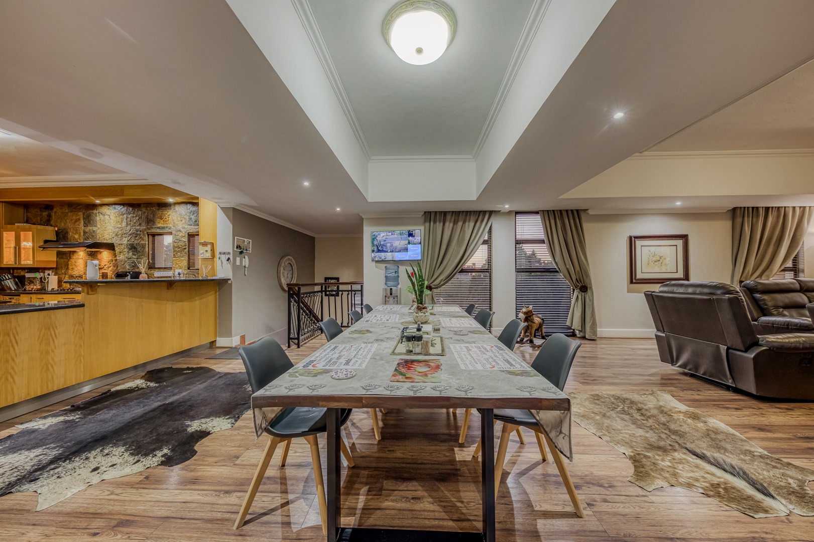 The kitchen is a showpiece on its own – equipped with a gas stove, dedicated scullery, separate laundry, and a walk-in pantry. Large open-plan living areas flow effortlessly, featuring a warm wood-burning fireplace and inverter air-conditioning units in key areas for year-round comfort. All curtains remain – an added bonus for the new owners.