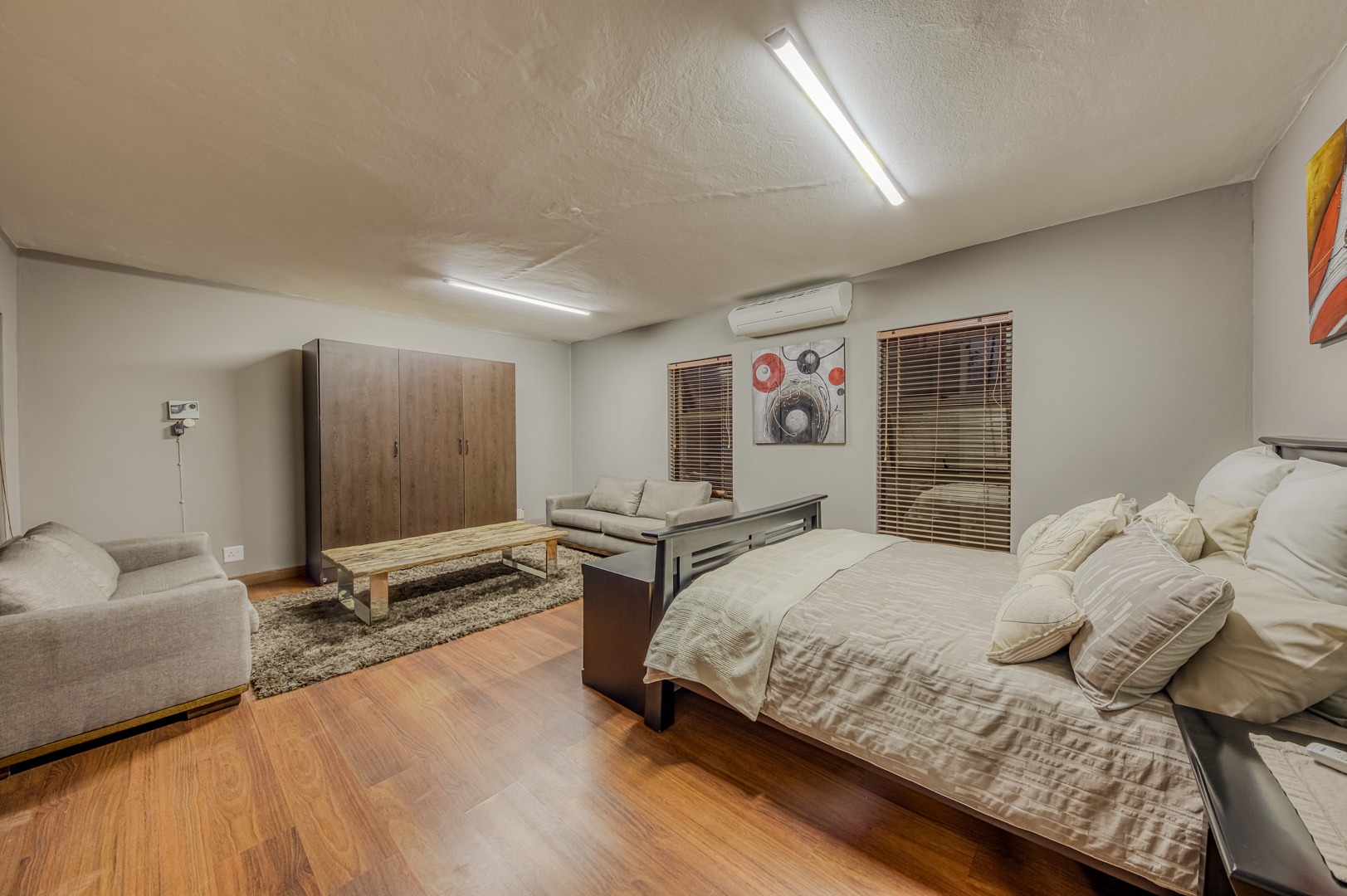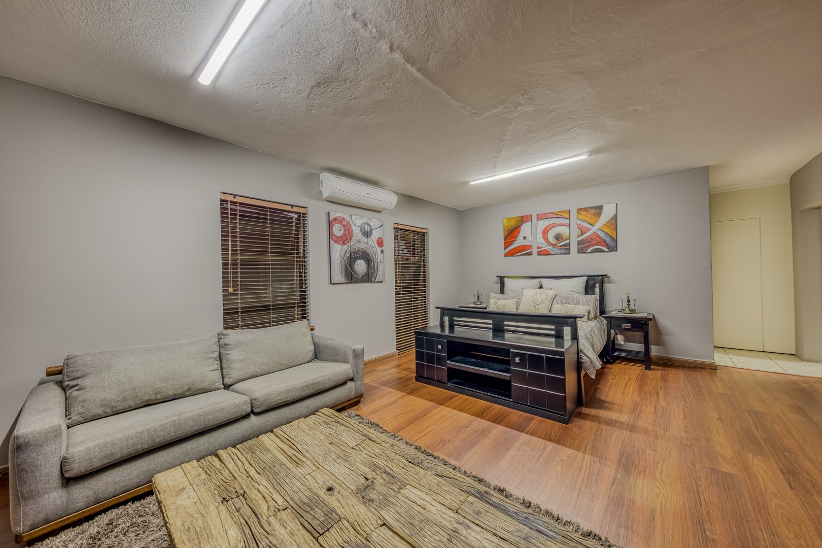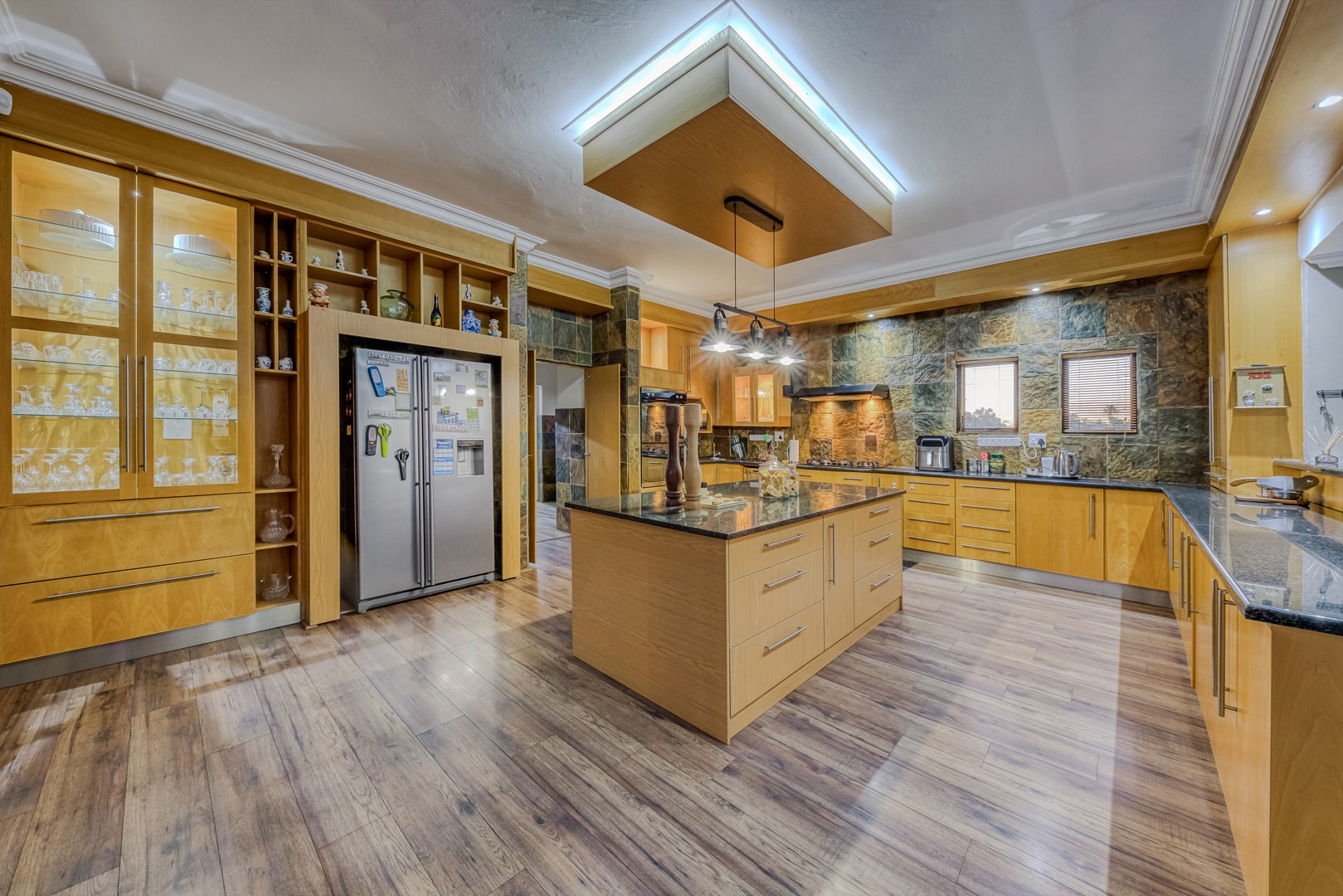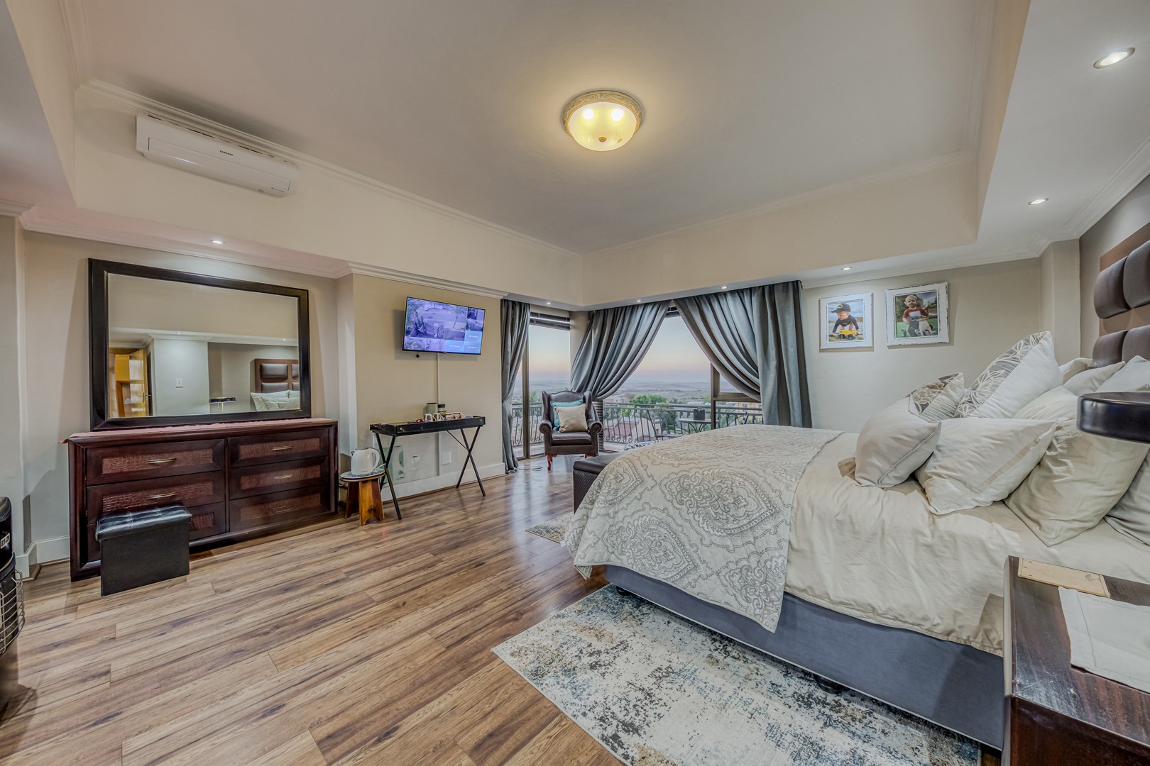 The kitchen is a showpiece on its own – equipped with a gas stove, dedicated scullery, separate laundry, and a walk-in pantry. Large open-plan living areas flow effortlessly, featuring a warm wood-burning fireplace and inverter air-conditioning units in key areas for year-round comfort. All curtains remain – an added bonus for the new owners.