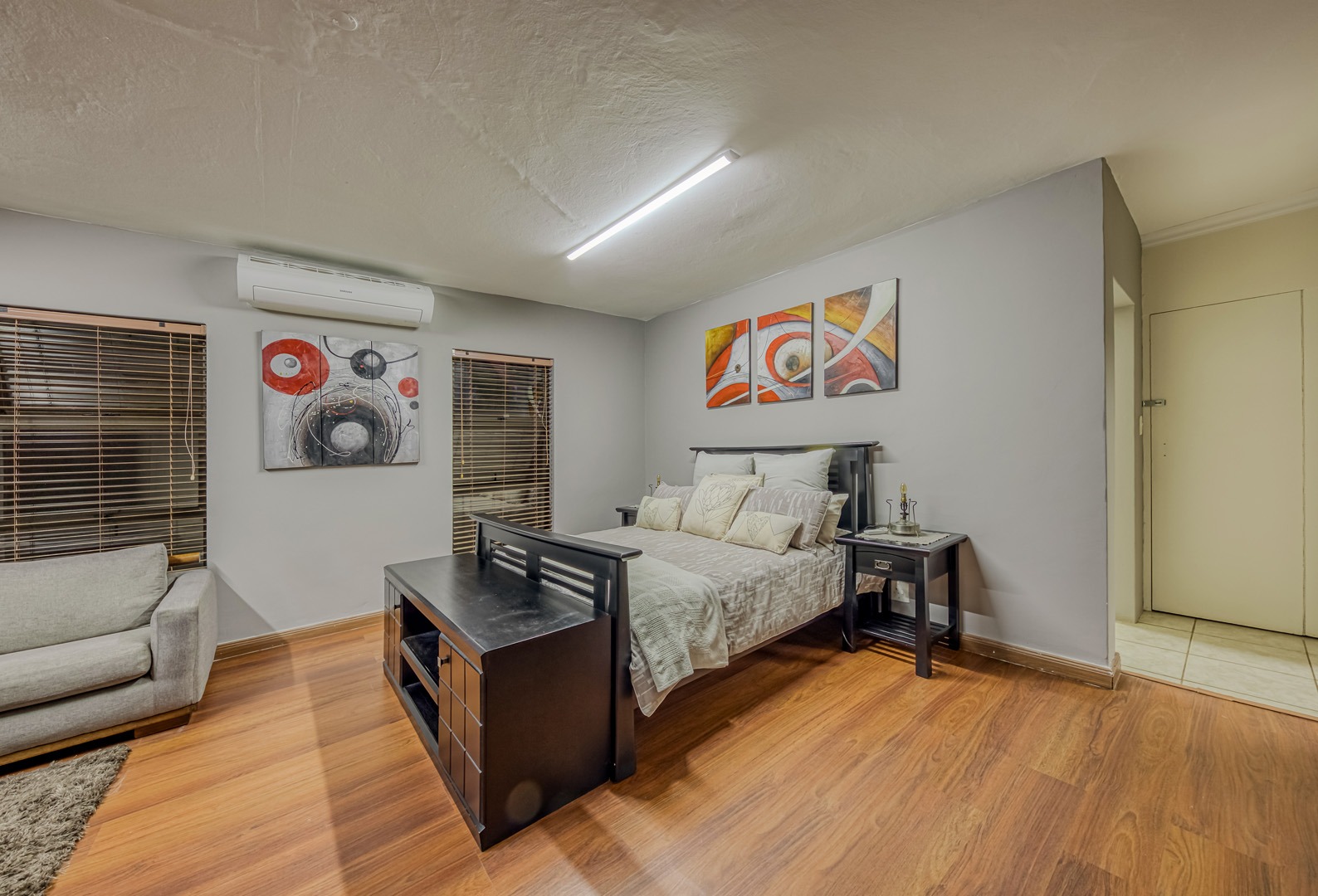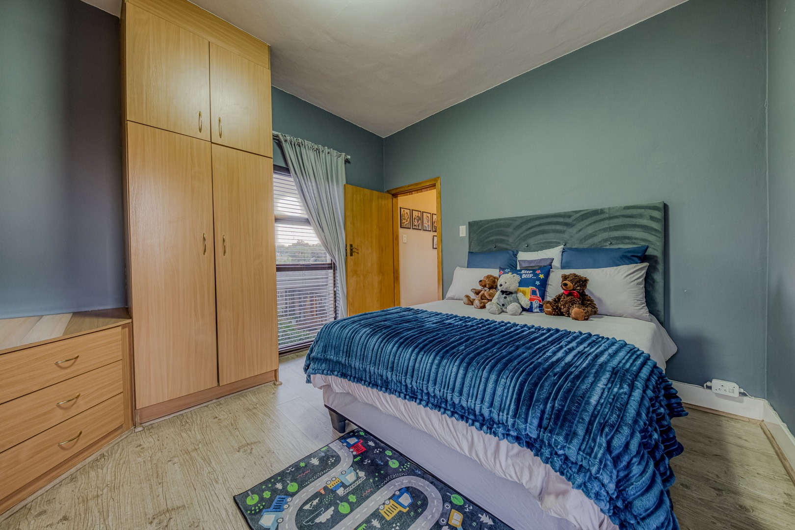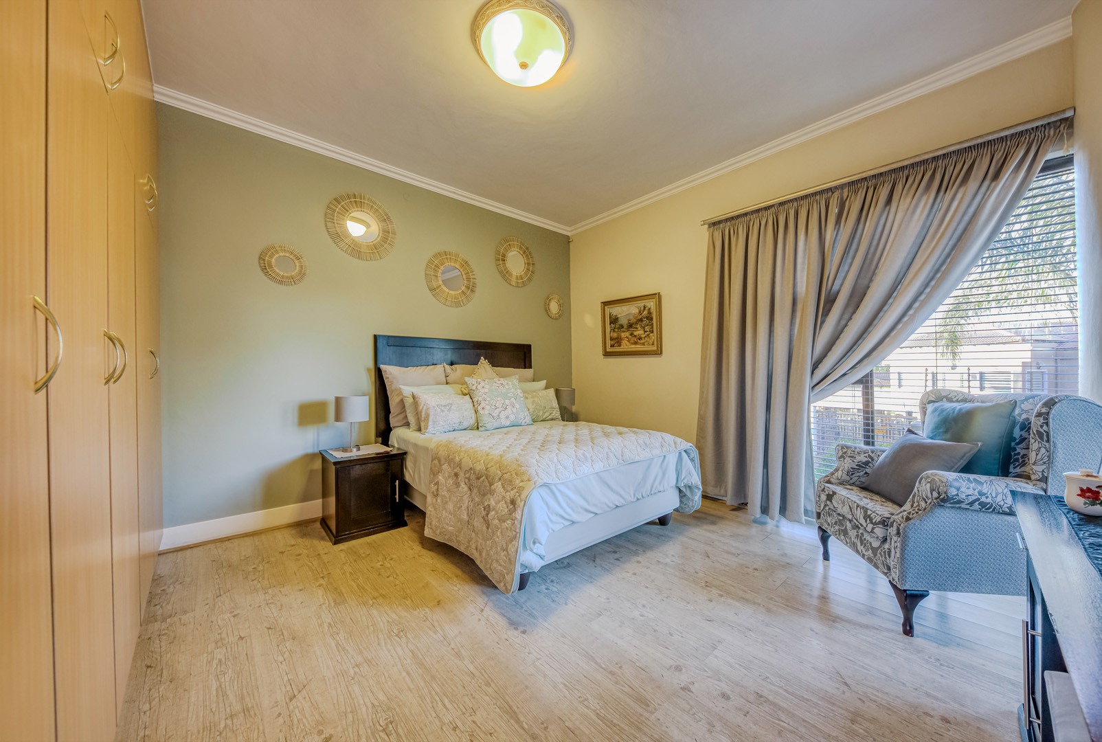 The kitchen is a showpiece on its own – equipped with a gas stove, dedicated scullery, separate laundry, and a walk-in pantry. Large open-plan living areas flow effortlessly, featuring a warm wood-burning fireplace and inverter air-conditioning units in key areas for year-round comfort. All curtains remain – an added bonus for the new owners.