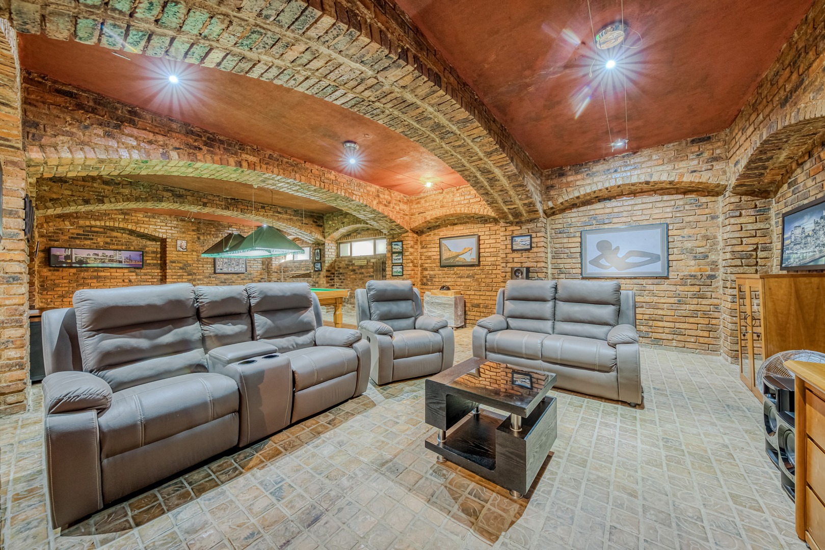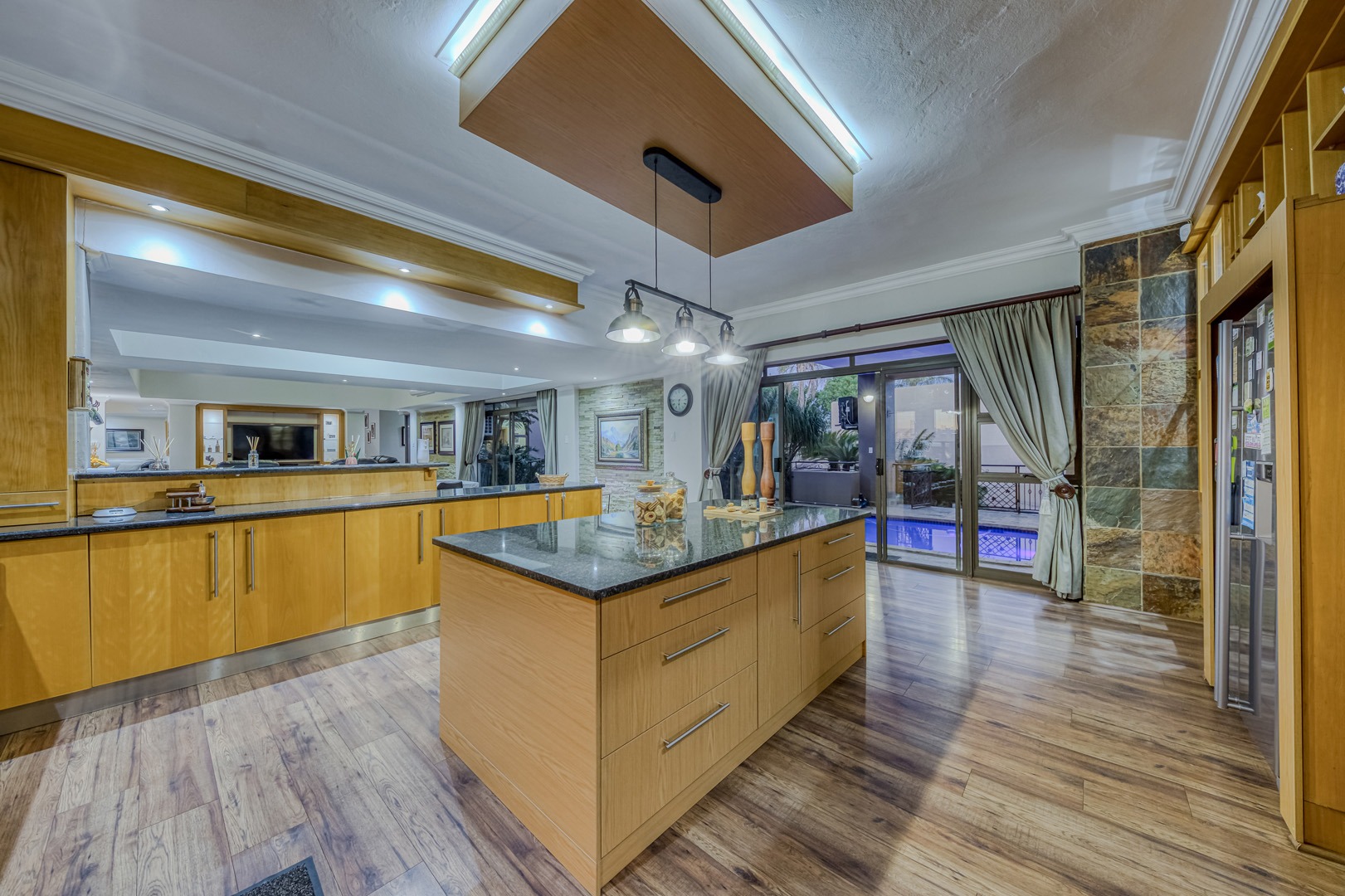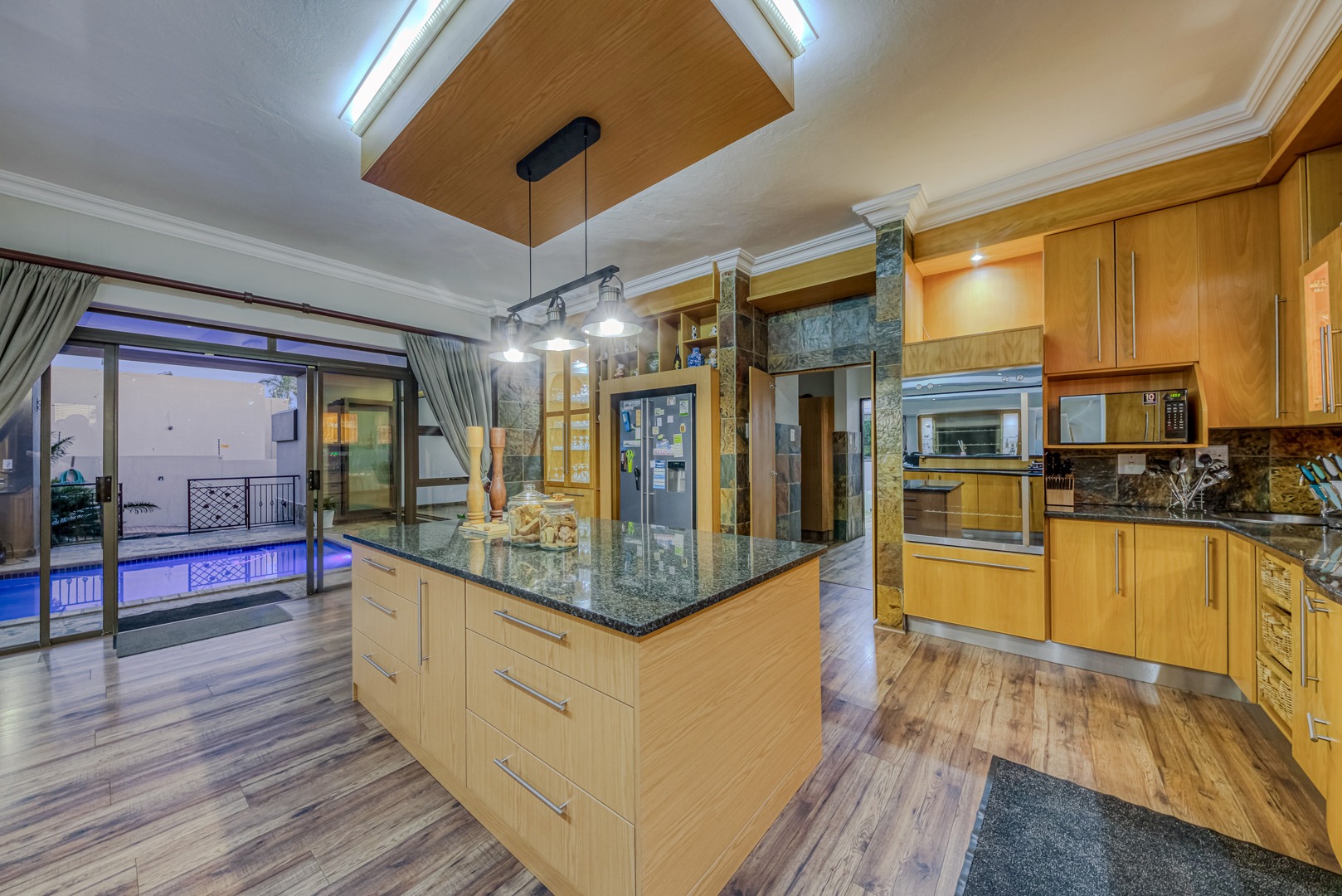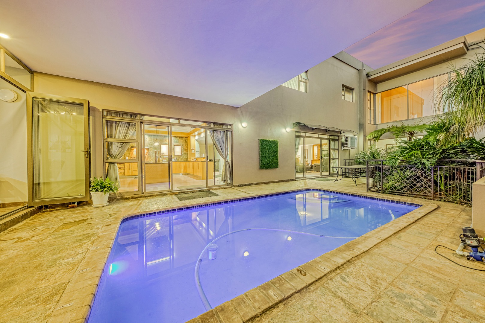 Designed for true off-grid lifestyle, the home is powered by 3-phase electricity, a 15kVA inverter system, and 38 solar panels – keeping your home running efficiently and cost-effectively. A solar-fed heat pump warms the sparkling swimming pool, while a comprehensive water backup system ensures uninterrupted supply.