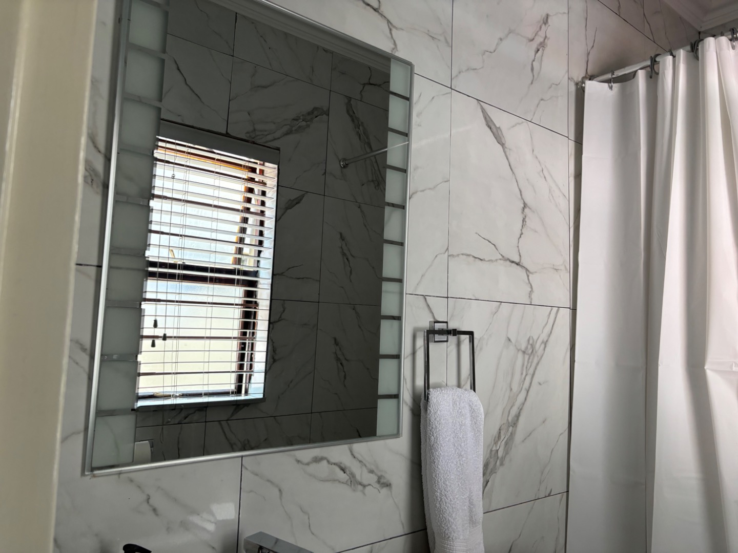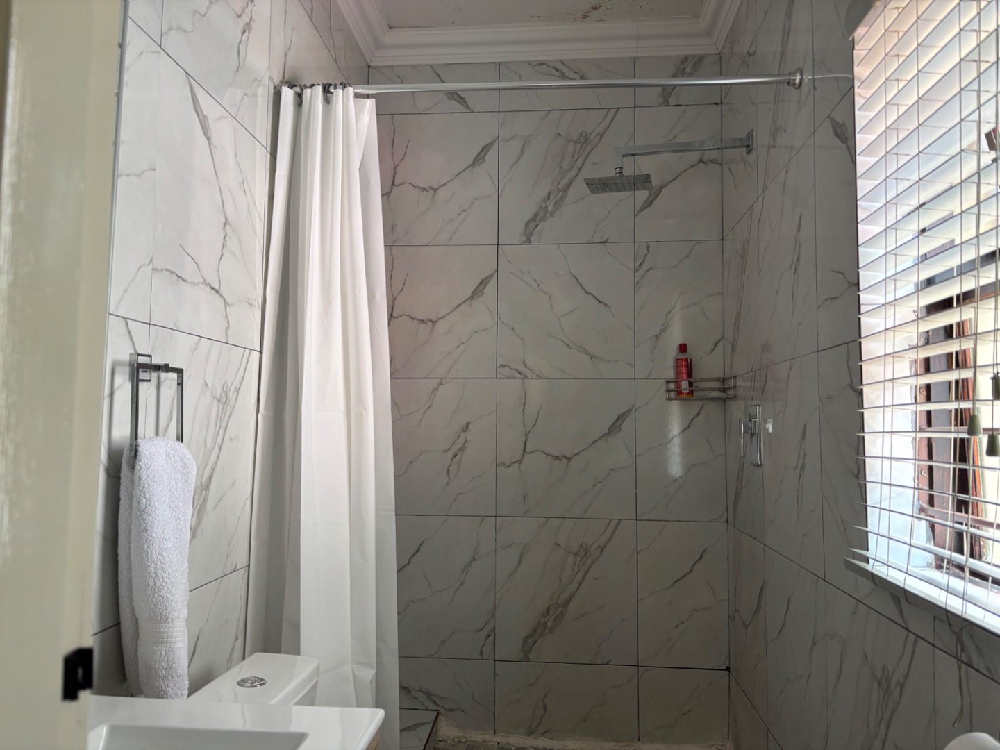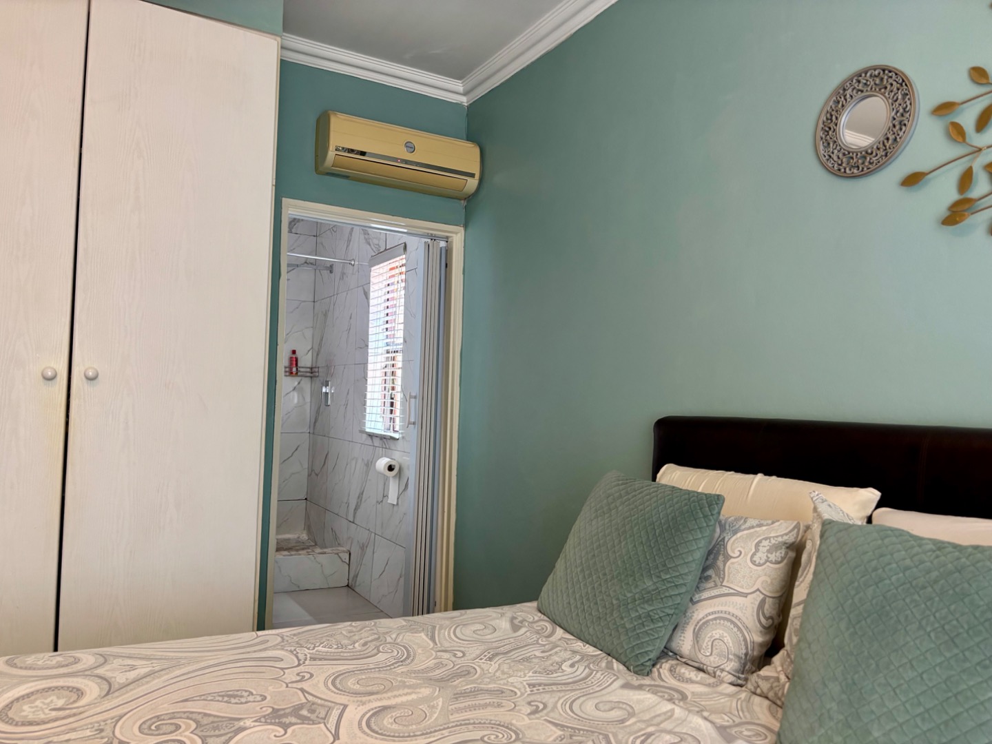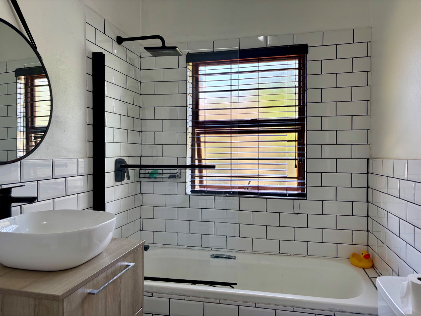 Bedroom 2 can host a double bed, while the 3rd bedroom is found off the lounge offering a large pad for a student or young adult with the single garage being converted into a full bedroom. Both these bedrooms are served by the additional full bathroom with the most beautiful modern finishes including floating wooden basin cupboard with large double drawers, railway white tiles, black matt taps and shower head.