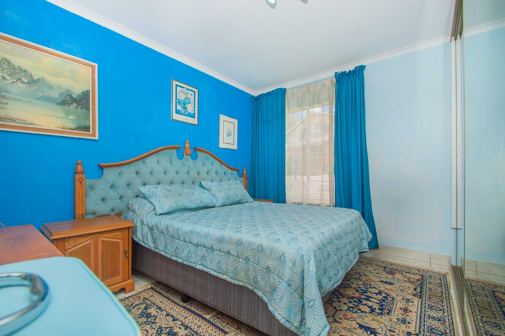 The main bedroom downstairs is very large. There are built-in-cupboards with mirrored doors as well as extra cupboards on the side for added comfort.