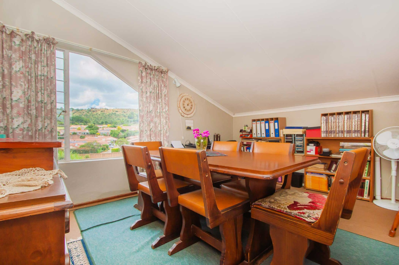 Experience this duplex townhouse in the popular area of Rangeview. As you enter the unit, you are welcomed by the warm and cozy feeling. A wooden staircase leads up to the upstairs loft. The open-plan lounge flows to the kitchen which is fitted with a full gas stove and oven, ensuring uninterrupted cooking in the case of loadshedding. There are ample cupboards and space for a dishwasher. A door leads out to the back garden.