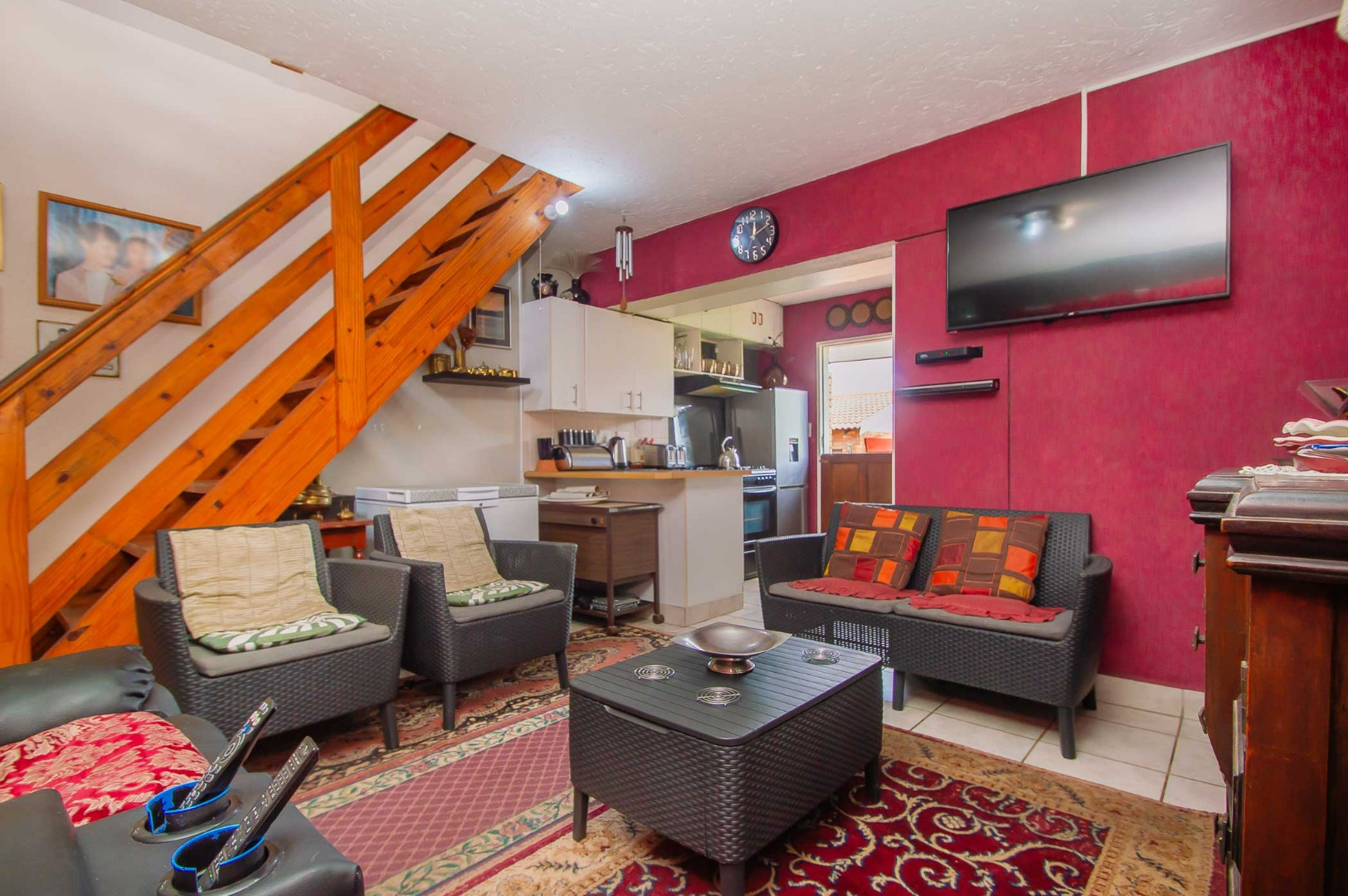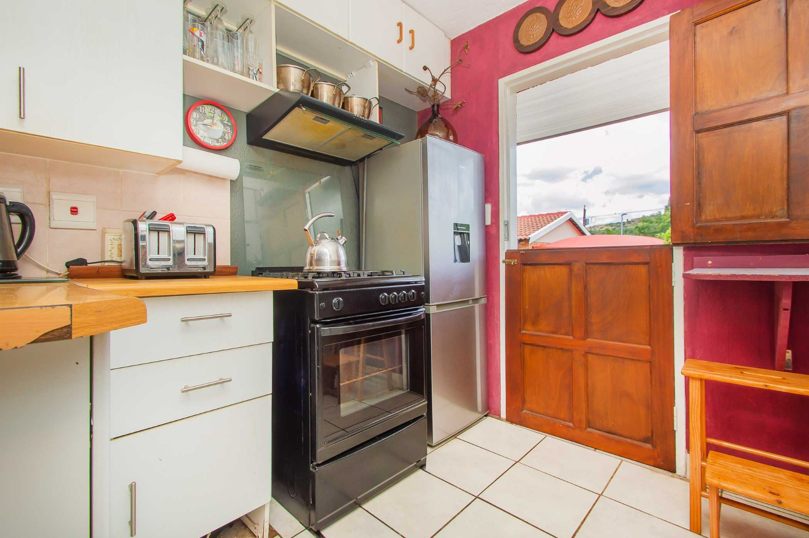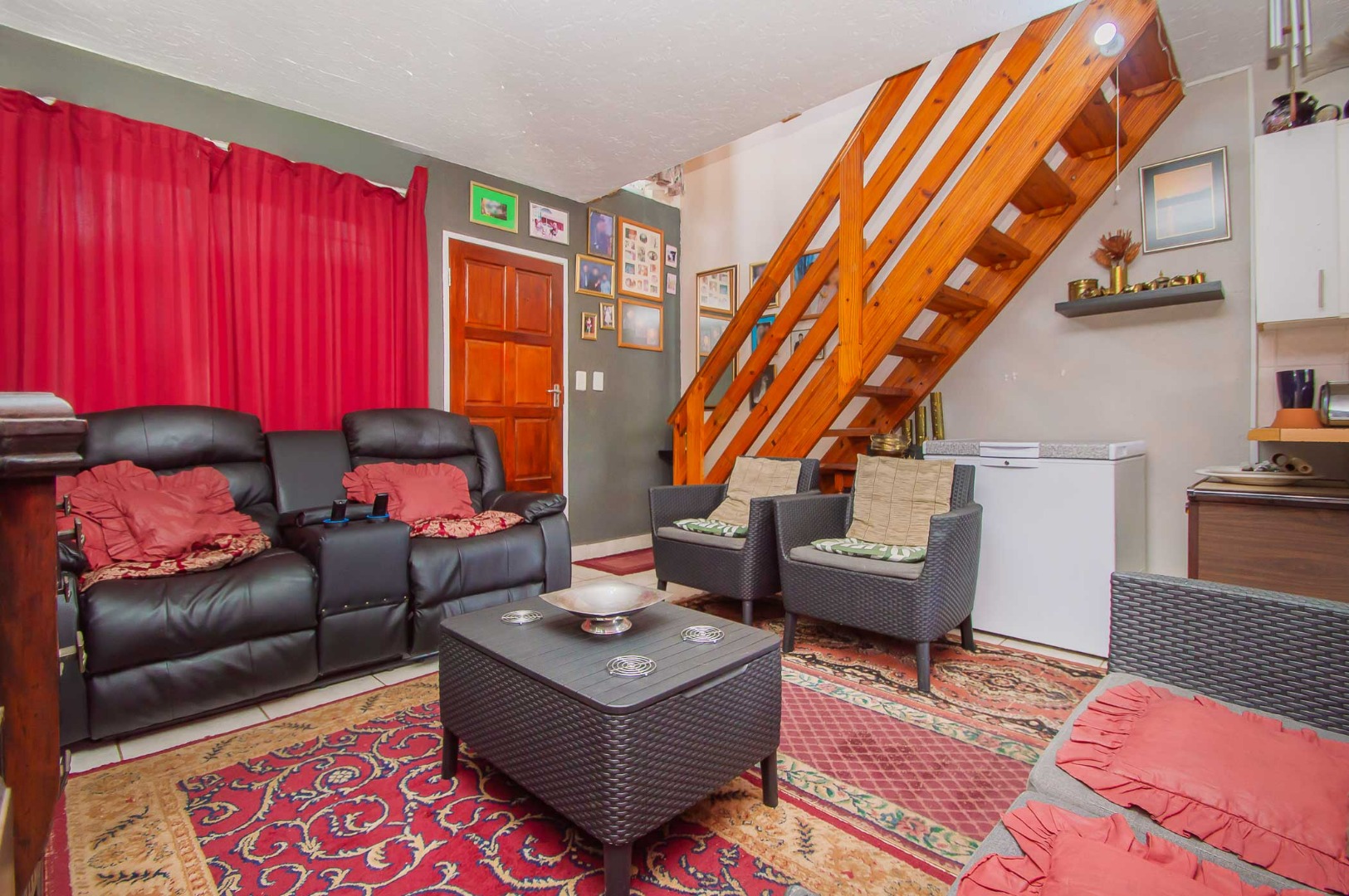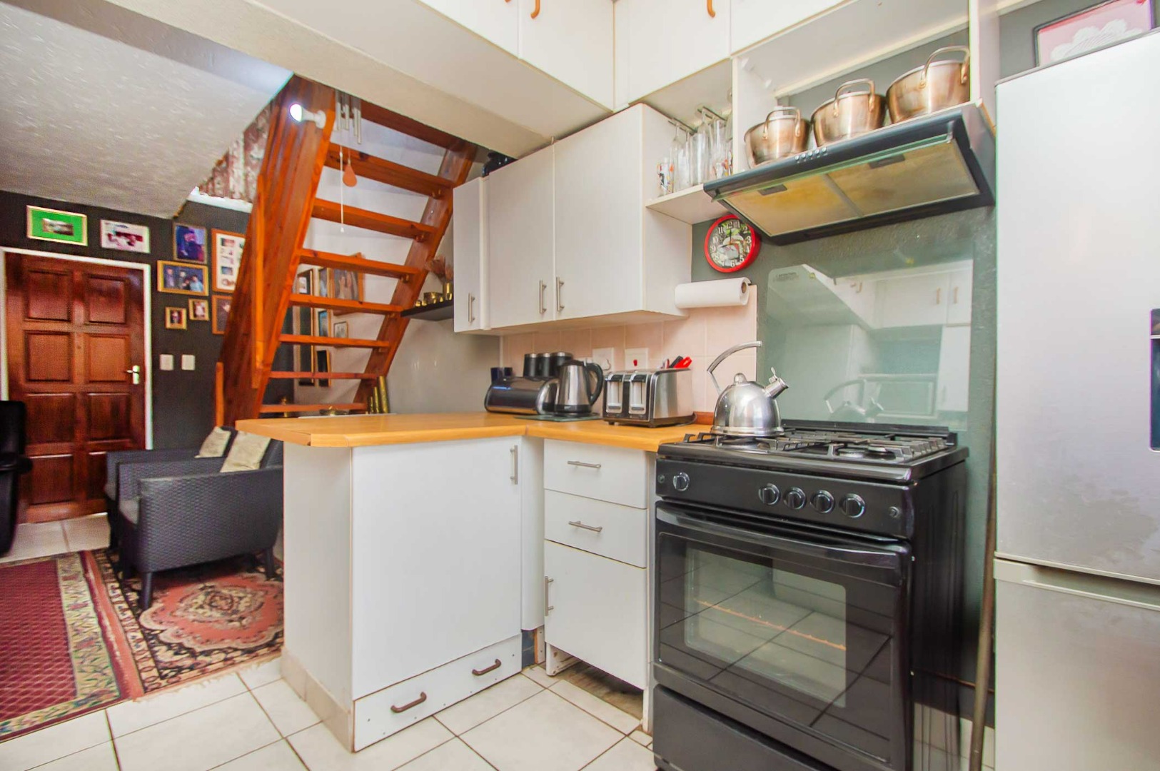Experience this duplex townhouse in the popular area of Rangeview. As you enter the unit, you are welcomed by the warm and cozy feeling. A wooden staircase leads up to the upstairs loft. The open-plan lounge flows to the kitchen which is fitted with a full gas stove and oven, ensuring uninterrupted cooking in the case of loadshedding. There are ample cupboards and space for a dishwasher. A door leads out to the back garden.