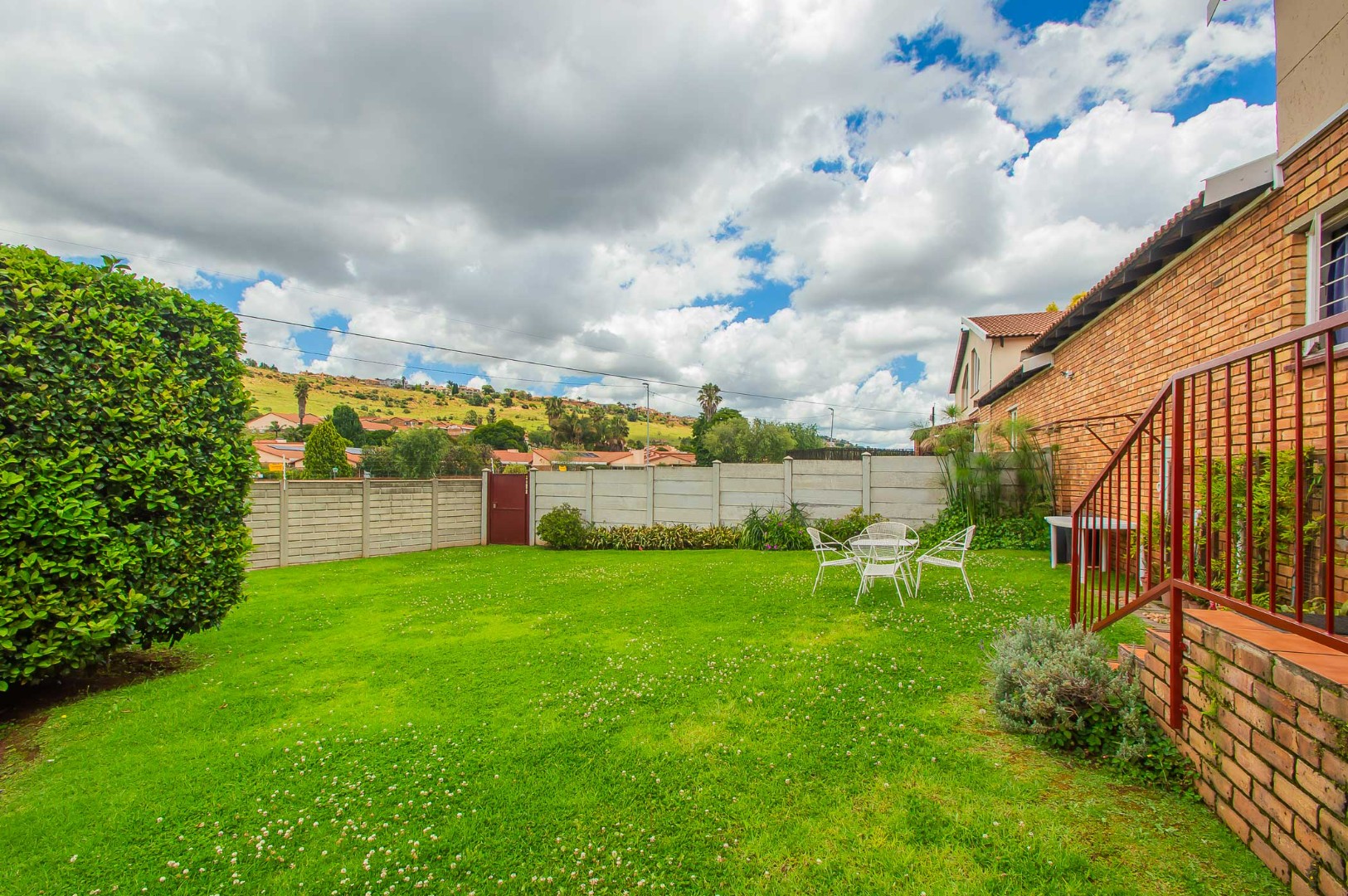 Outside you have one automated garage. The front and back gardens are ideal for relaxing or to have a braai while enjoying the peace and serenity of this well-kept complex.