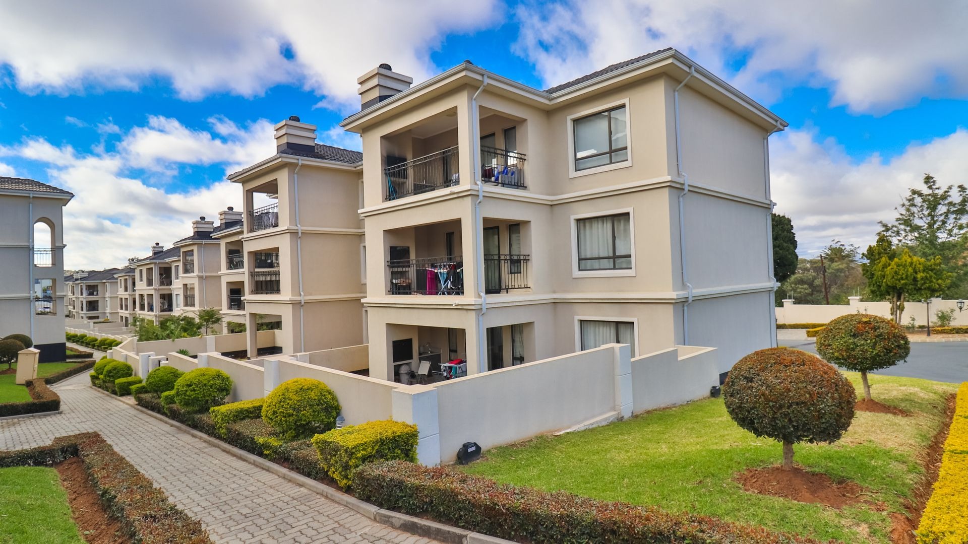 This contemporary 108 sqm residence offers comfortable estate living in the sought-after Carlswald area. Designed for modern convenience, the home features two well-appointed bedrooms and two bathrooms, including a private en-suite for added comfort, alongside a convenient guest toilet. The interior boasts a spacious lounge, a dedicated dining room, and a functional kitchen, creating an ideal flow for daily living and entertaining. An additional family TV room provides versatile space for relaxation or recreation, complemented by practical laundry facilities and ample storage solutions. Step outside to enjoy a private balcony, perfect for unwinding. Residents benefit from access to communal amenities within the estate, including a refreshing swimming pool and a clubhouse, fostering a vibrant community atmosphere. The property includes two dedicated parking bays, ensuring convenience for residents and guests. The expansive 29570 sqm erf size of the estate provides a sense of space and tranquility within this suburban landscape. Security is paramount within this residential estate, featuring 24-hour security, an access gate, and electric fencing, offering peace of mind. The home is also equipped with fibre connectivity, catering to modern digital needs. Paved areas enhance the property's neatness and accessibility. This Midrand suburb is a thriving node known for its accessibility and growing infrastructure. It offers a balanced lifestyle with proximity to essential amenities, major transport routes, and various lifestyle offerings, making it a desirable location for homeowners. Key Features: * 2 Bedrooms, 2 Bathrooms (1 En-suite, 1 Guest Toilet) * 108 sqm Floor Size * Lounge, Dining Room, Family TV Room, Kitchen * Balcony and Communal Pool * Clubhouse and Laundry Facilities * 2 Parking Bays * 24-Hour Security, Access Gate, Electric Fencing * Fibre Ready