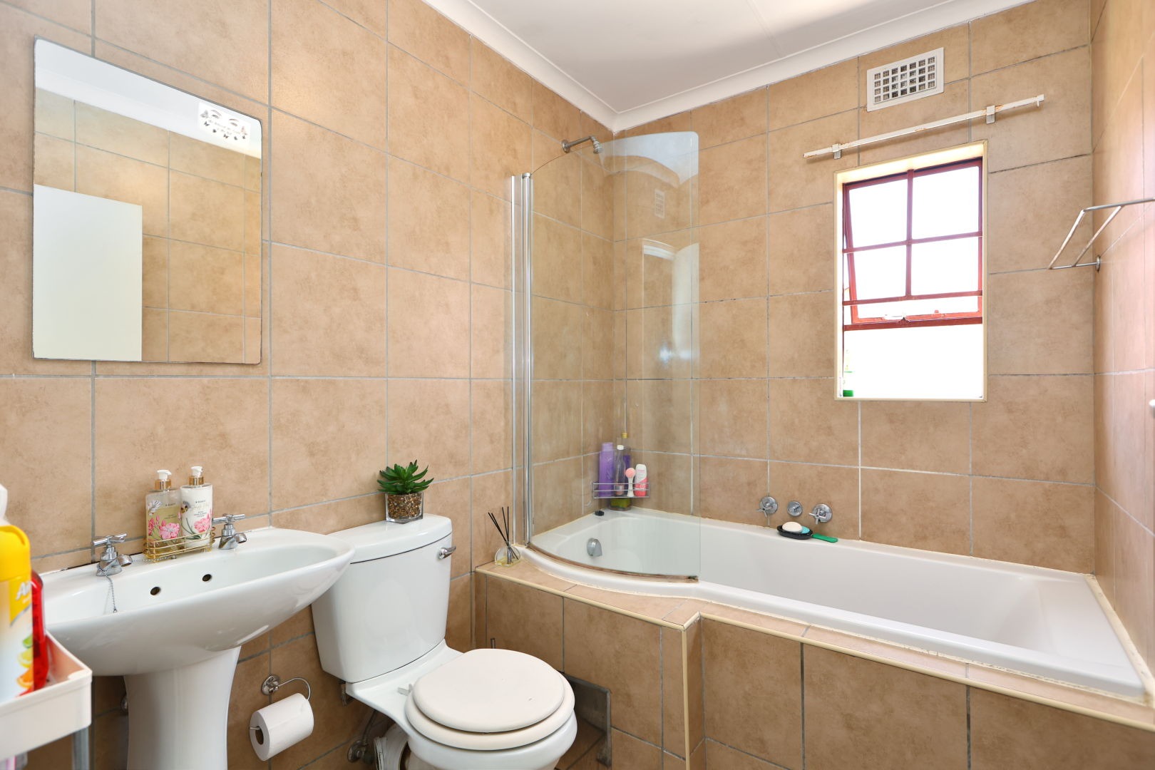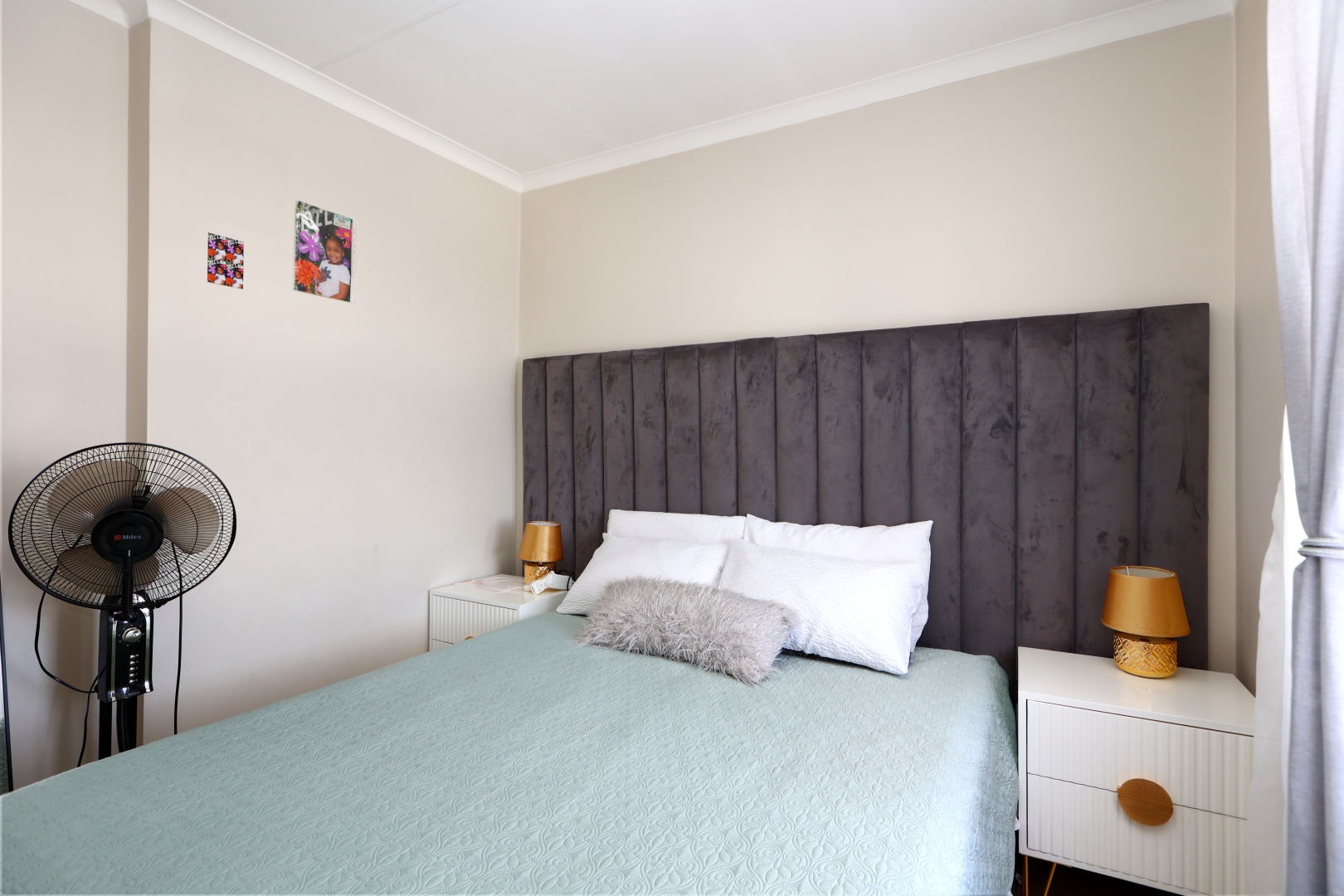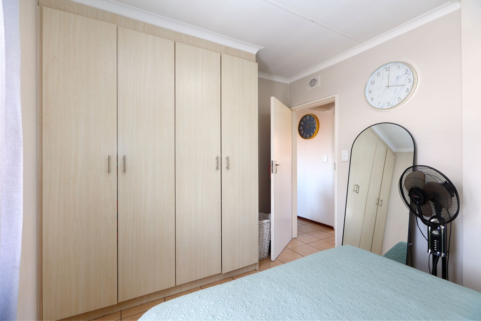 Both bedrooms are designed for comfort, boasting good natural light and neutral wall colours, complemented by built-in wardrobes that offer ample storage. The two bathrooms are well-appointed and serve residents and guests alike.