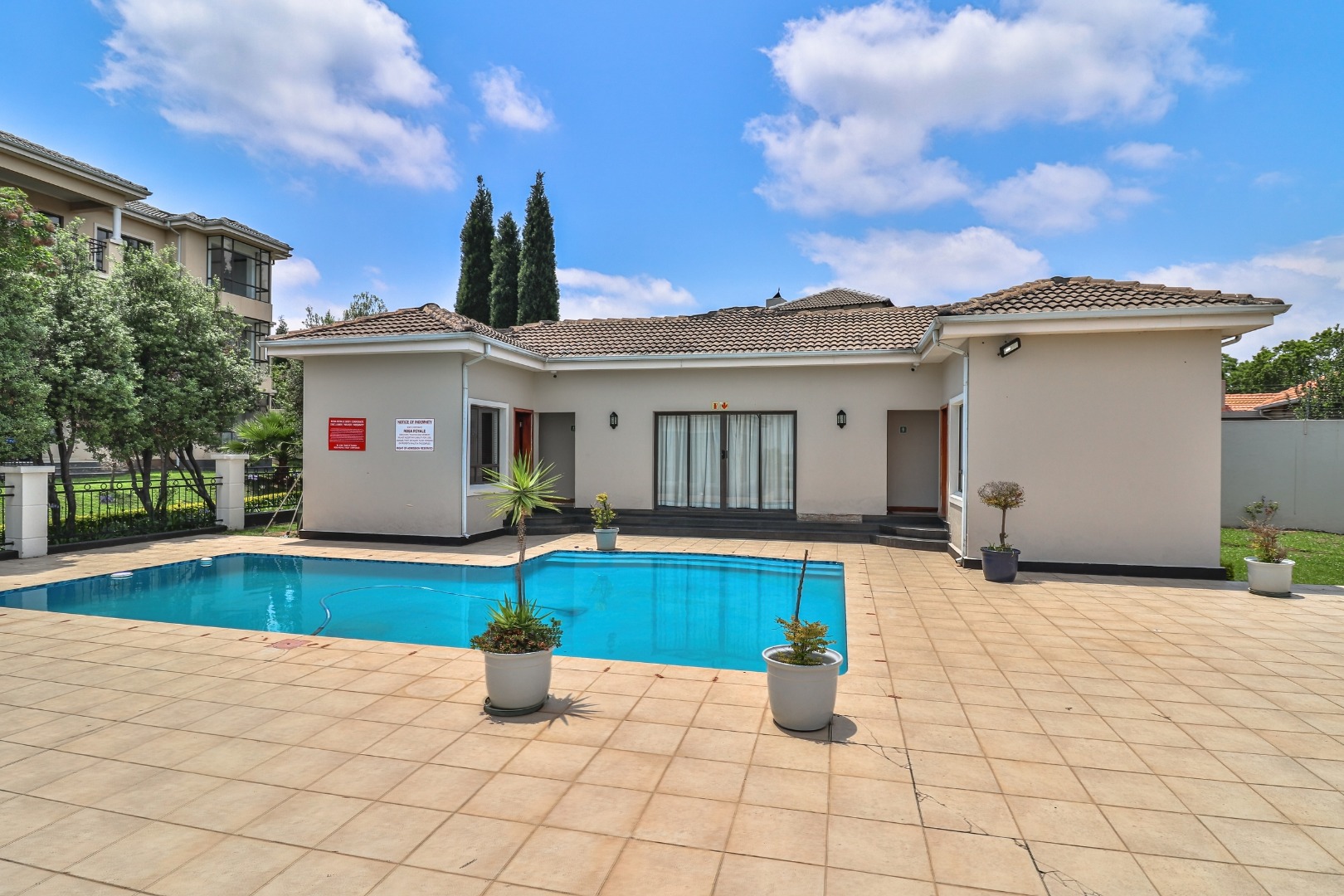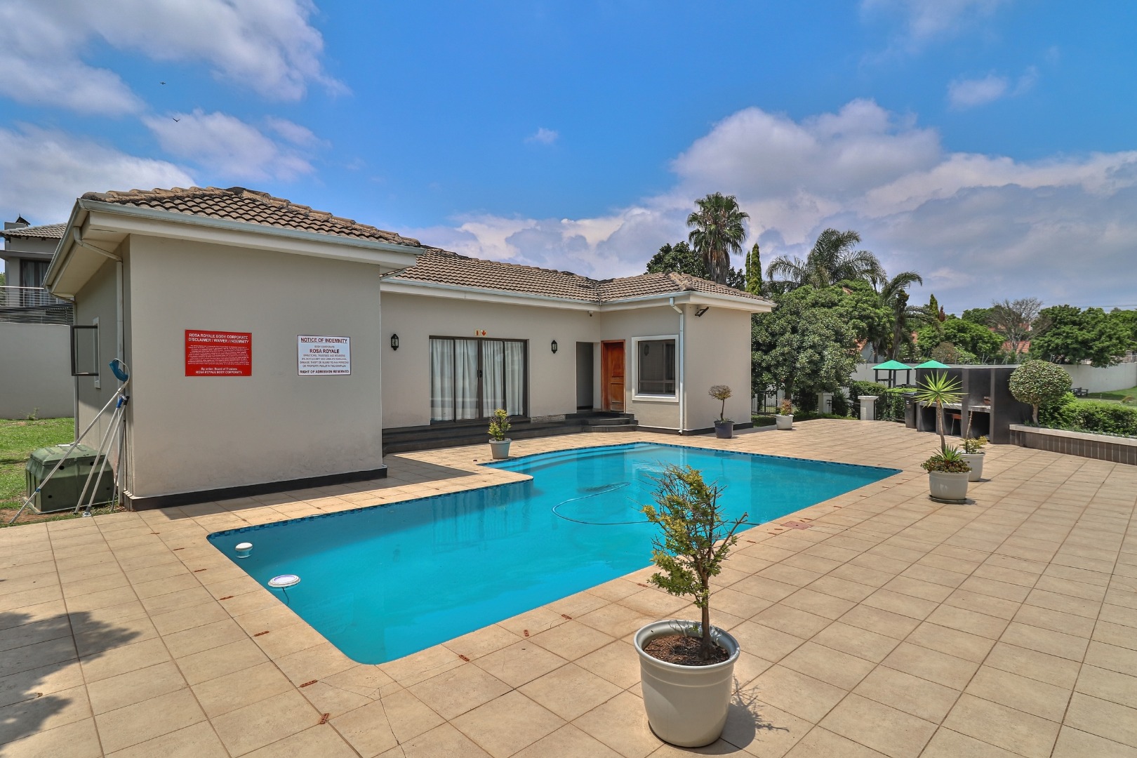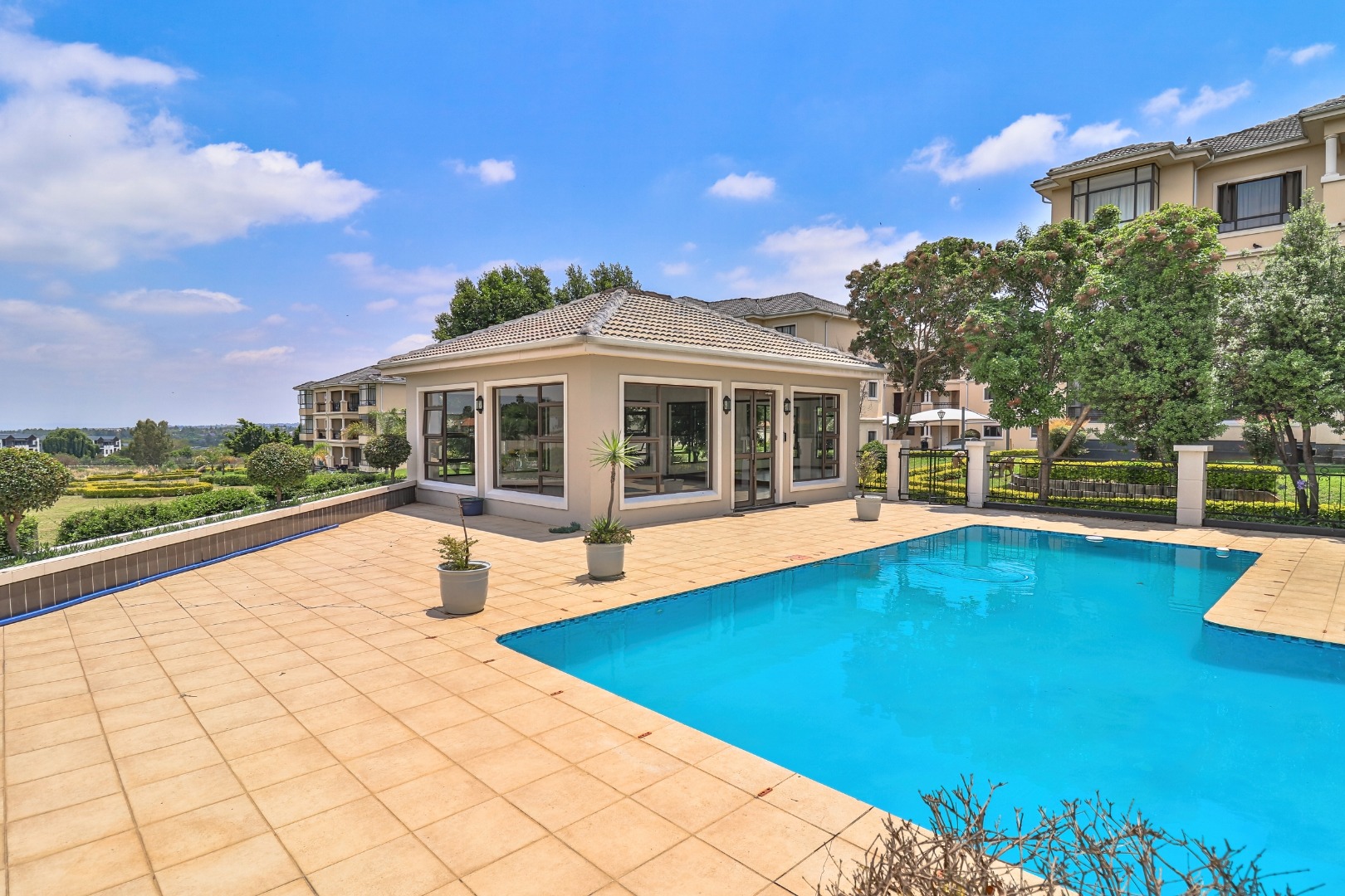 The complex offers immaculately maintained gardens, a clubhouse, and a sparkling communal swimming pool, creating a tranquil and secure lifestyle environment.