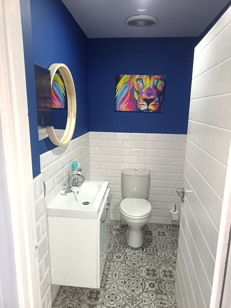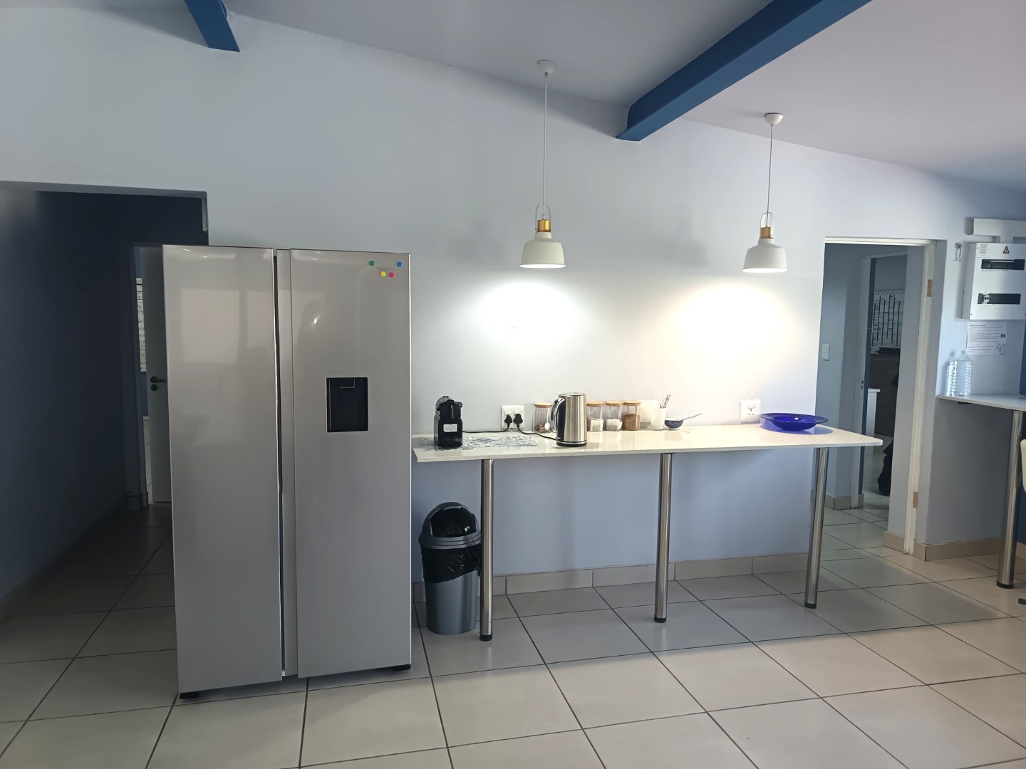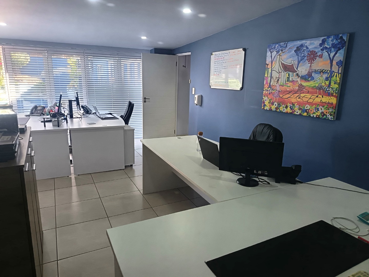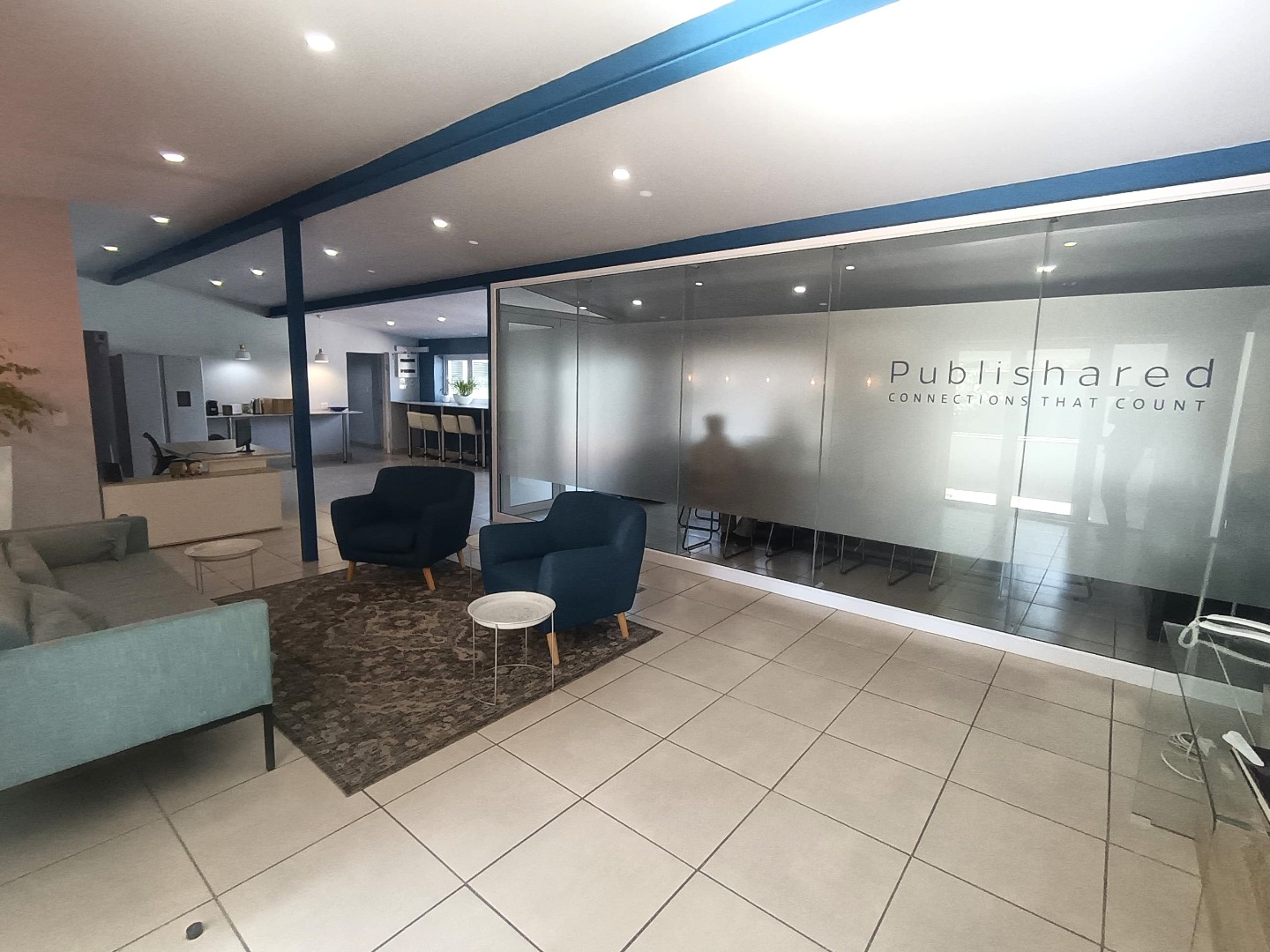 Spanning 377m², the premises feature a welcoming reception area, a glass-partitioned boardroom, and a bright open-plan workspace complemented by a spacious canteen and entertainment area with a separate, fully fitted kitchen.