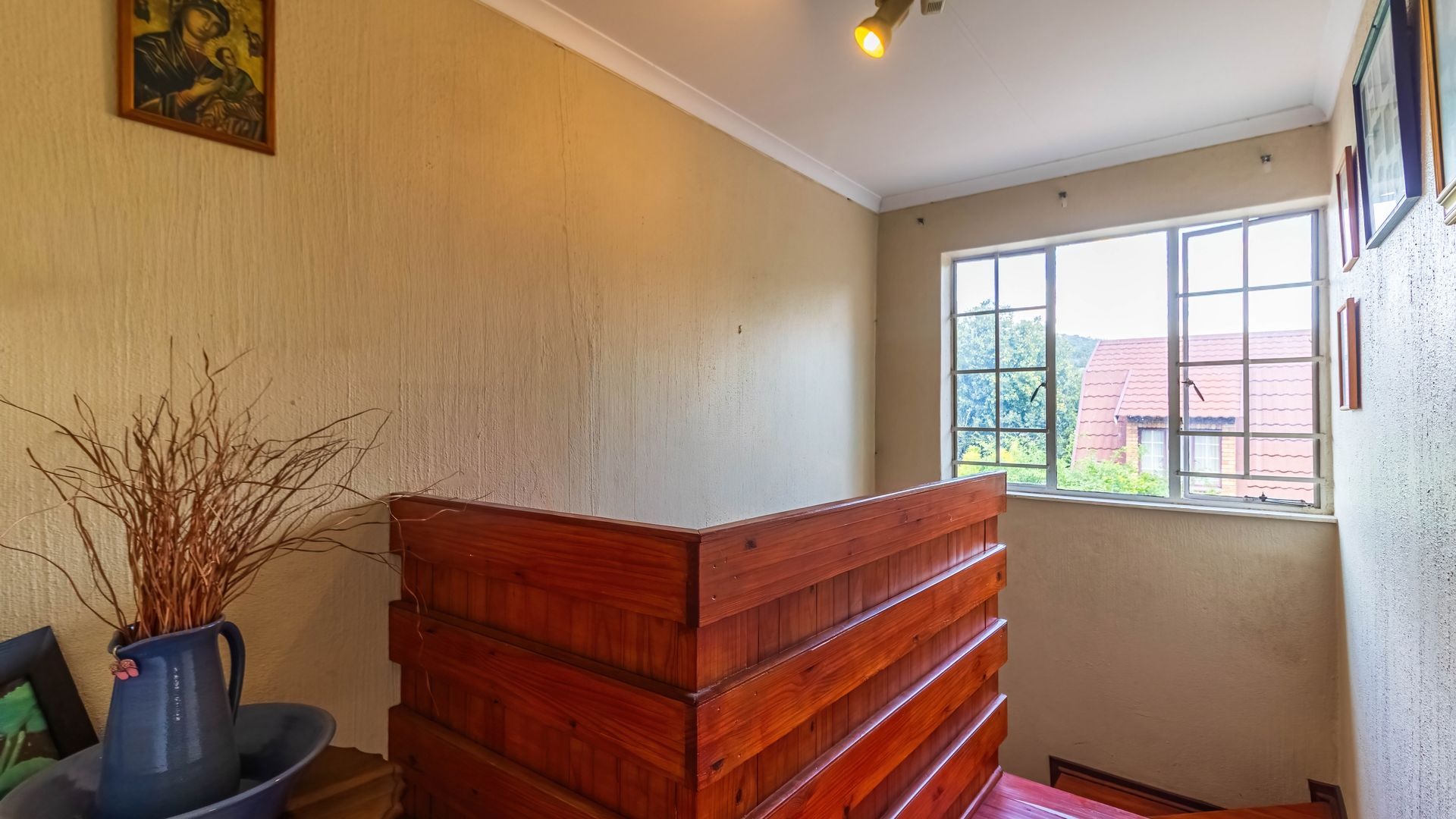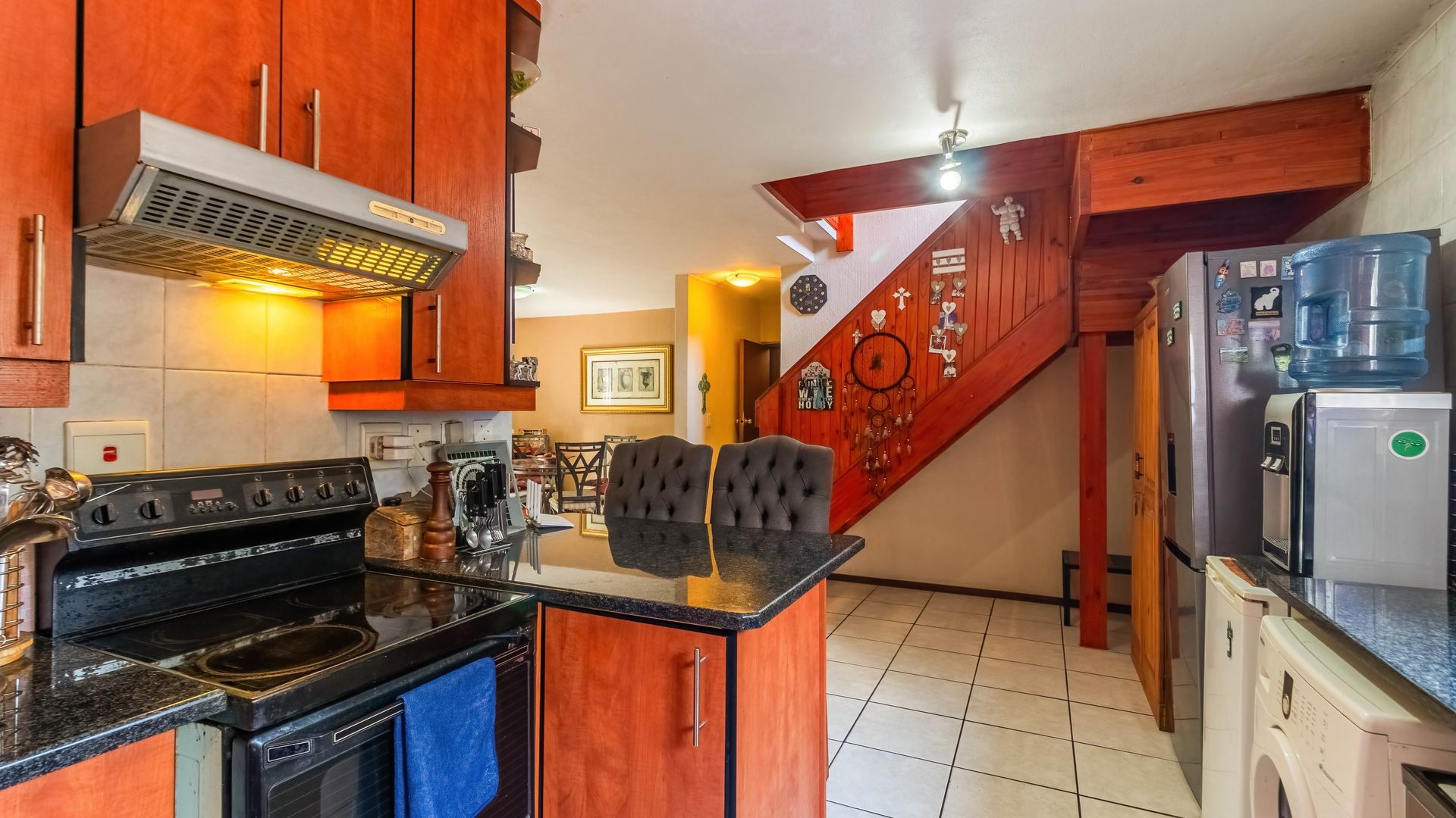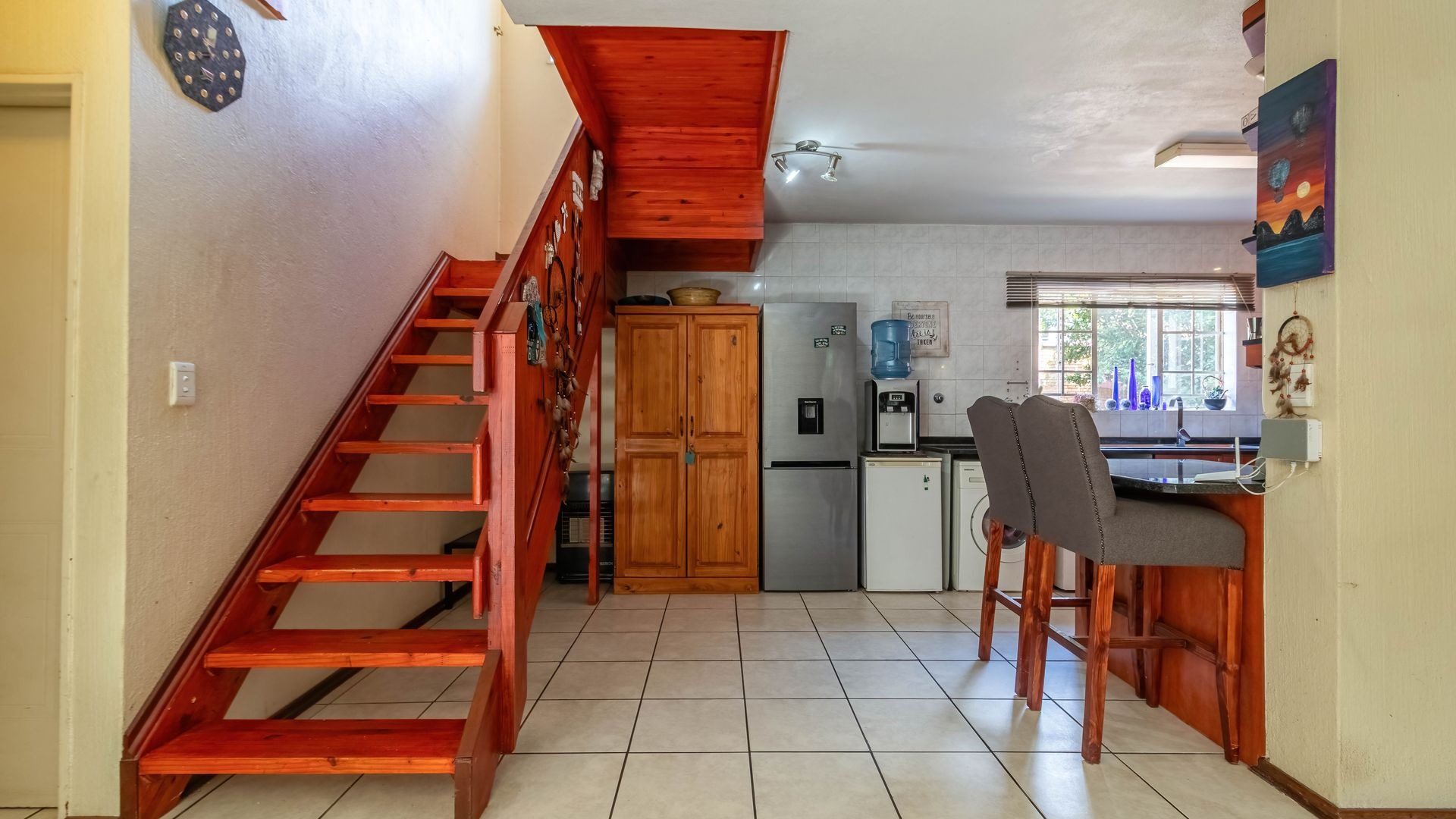Privately positioned within the complex, this open-plan space is bright and welcoming — perfect for easy evenings and gatherings that flow effortlessly from the lounge to the outdoor braai area. - Three Comfortable Bedrooms Upstairs