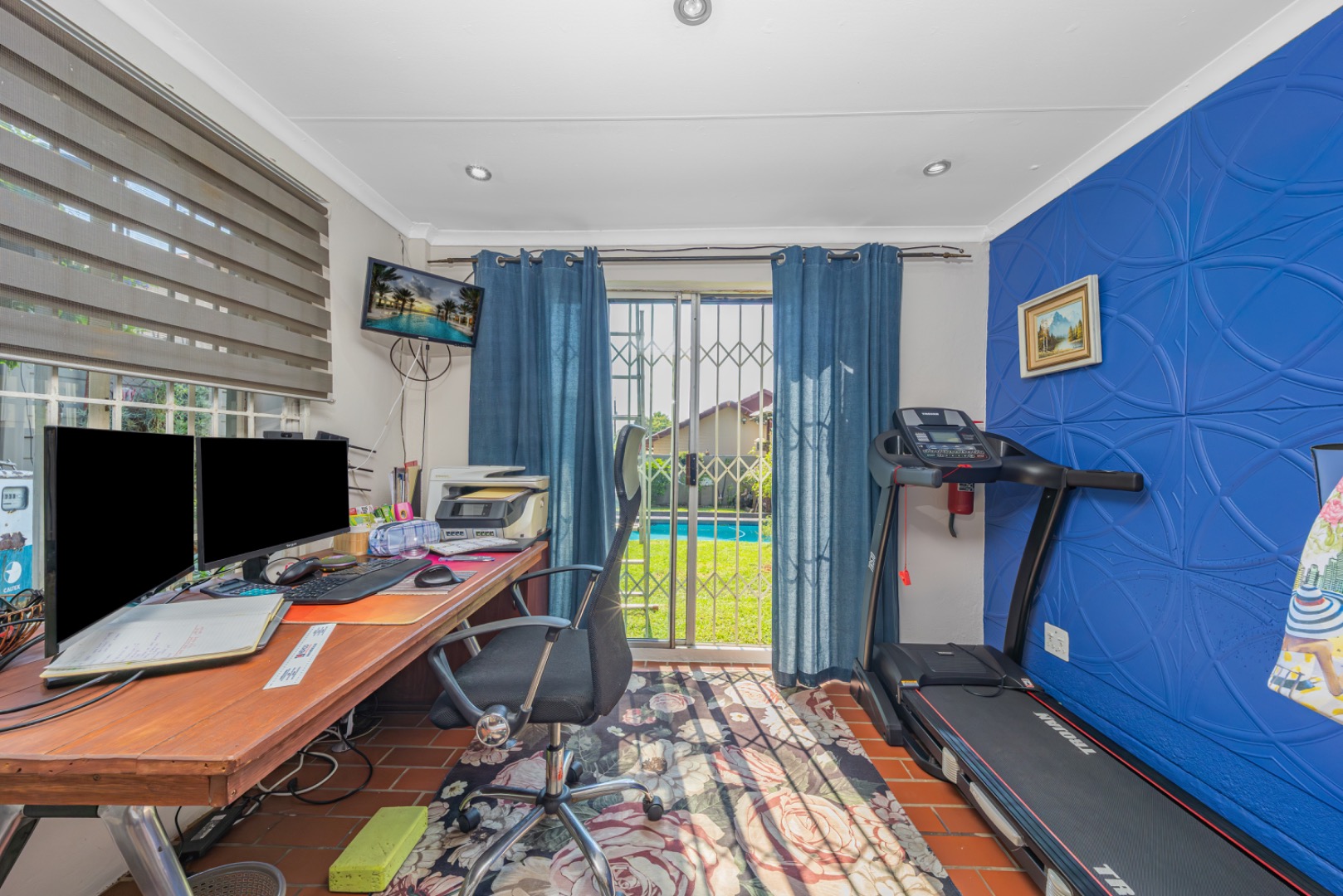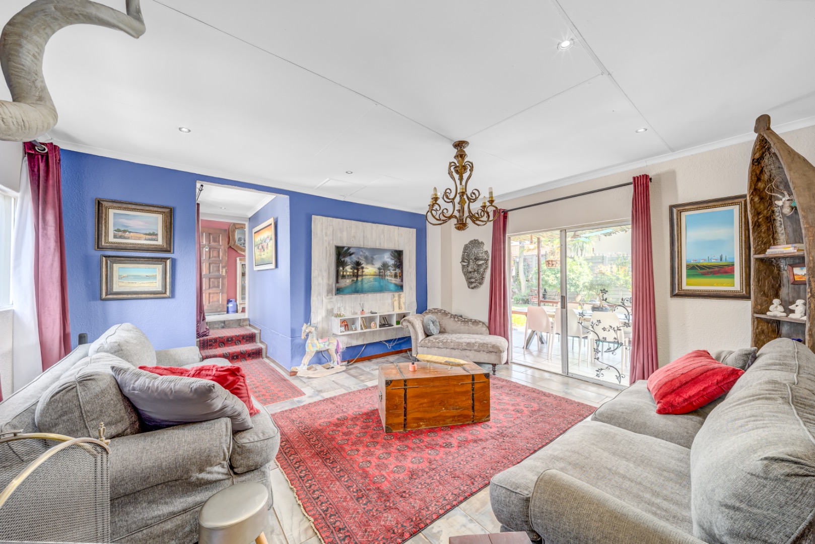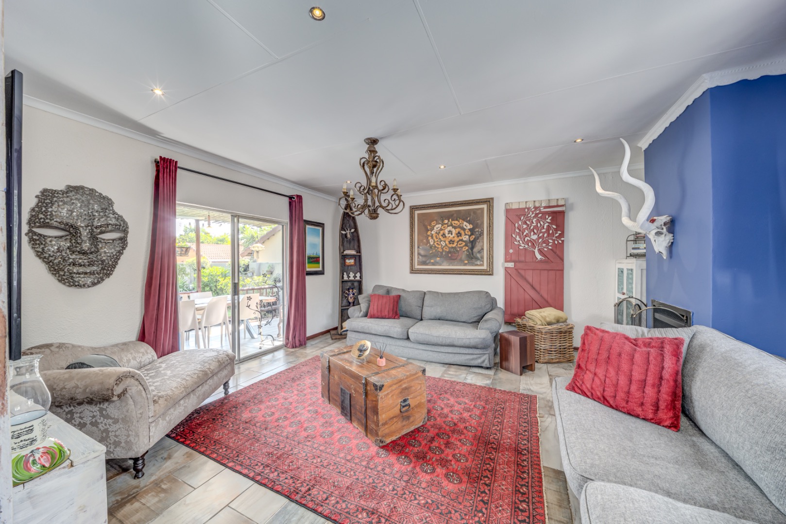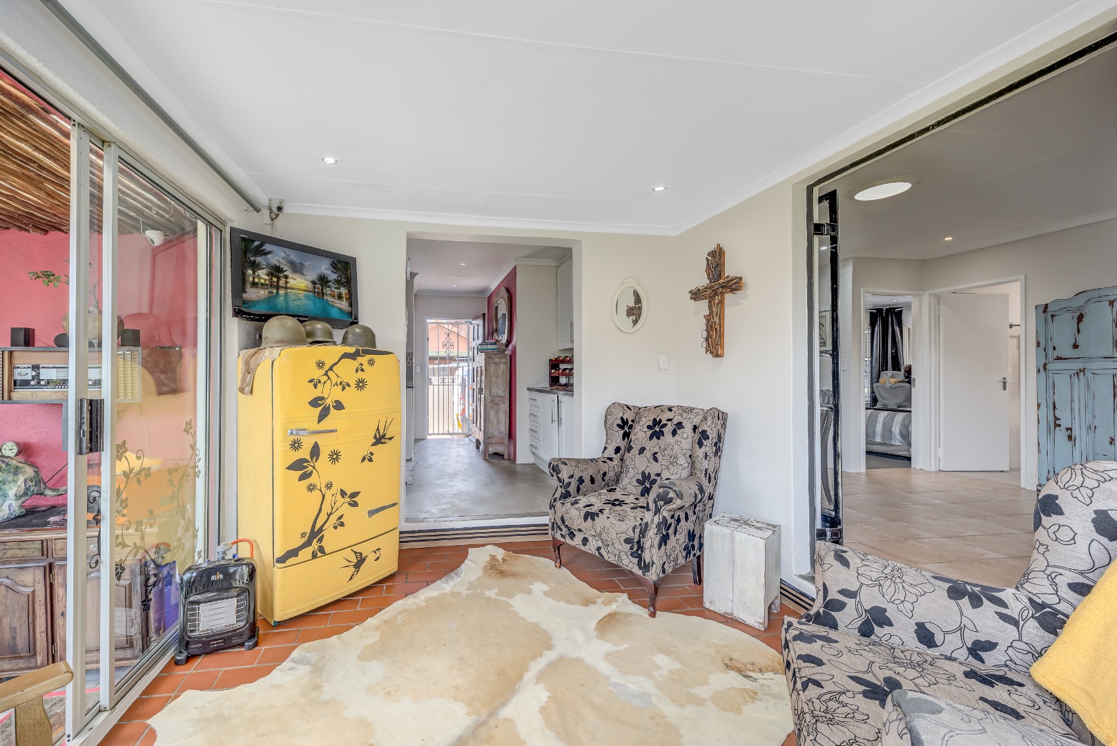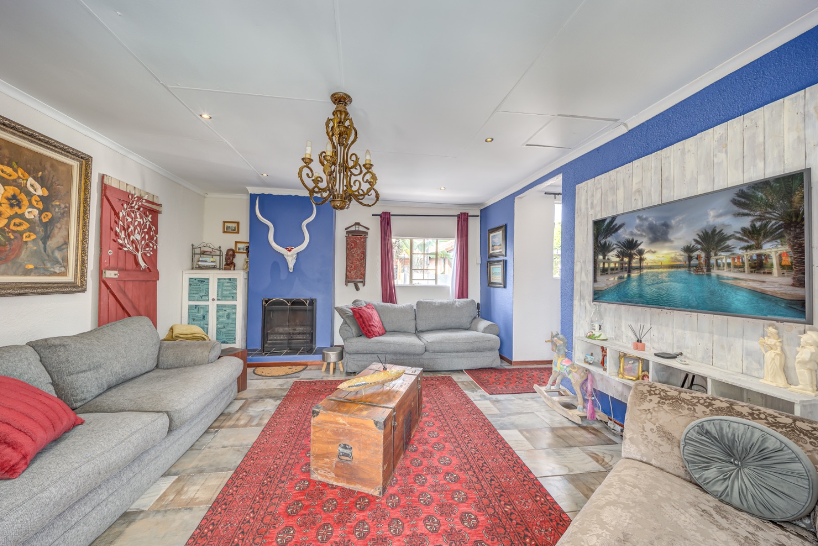 The heart of the home is a stunning modern kitchen offering ample cupboard space and room for two appliances, making it both stylish and highly functional. A separate dining room provides the ideal setting for family meals and entertaining, while the separate TV lounge features a cozy, working fireplace — perfect for relaxing evenings. The lounge flows seamlessly onto an enclosed patio, creating a wonderful indoor-outdoor living space.