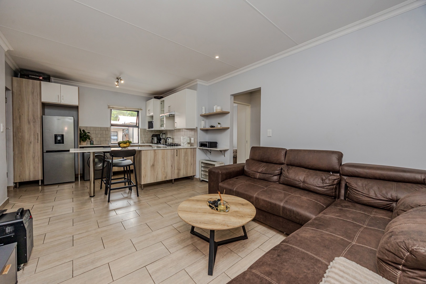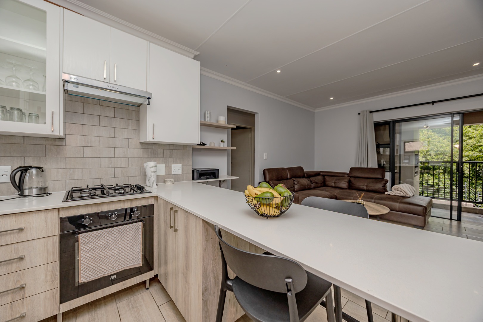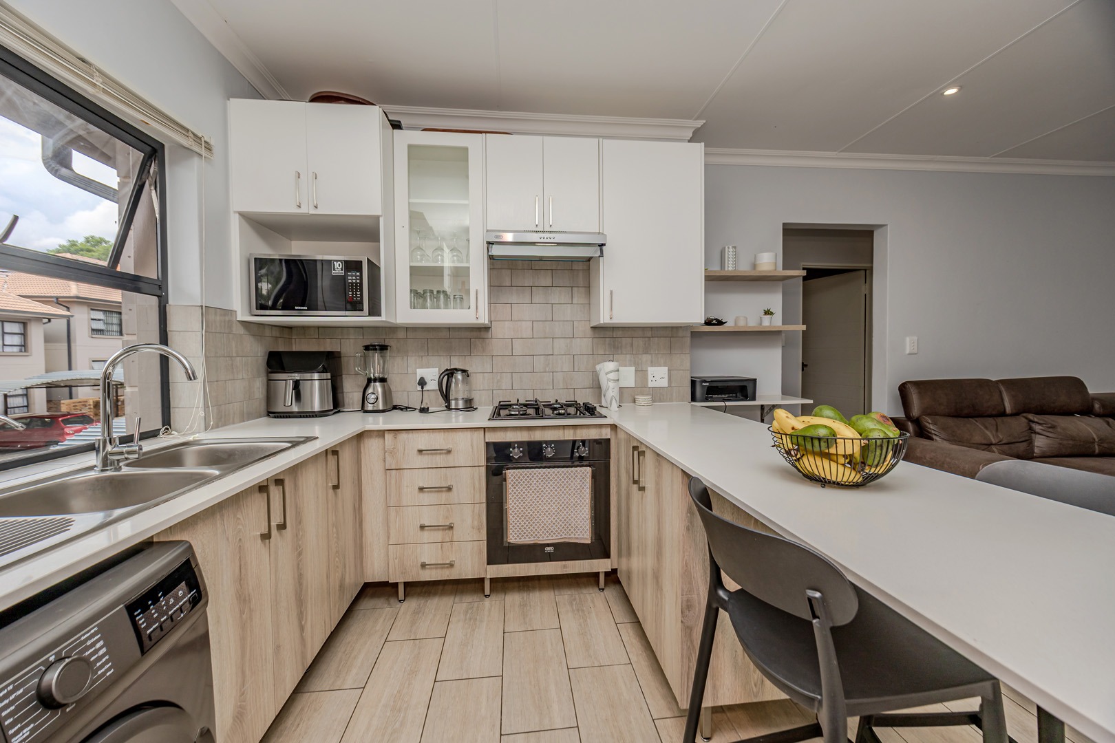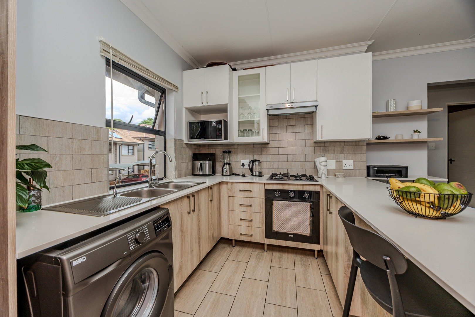 The kitchen is both stylish and practical, featuring a gas stove for efficient cooking, while a solar geyser helps reduce electricity costs. With pre-paid electricity already installed, you remain in full control of your monthly usage. Fibre connectivity is also available in the unit, ensuring fast and reliable internet access for work or leisure.