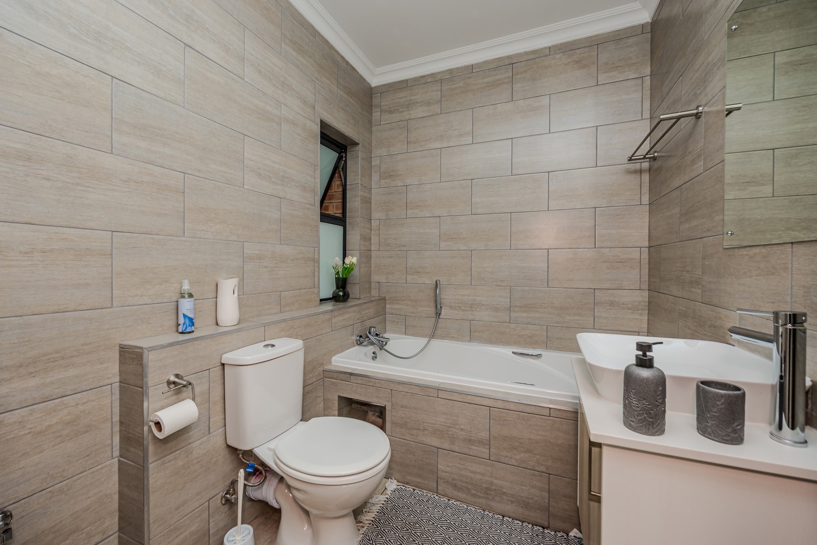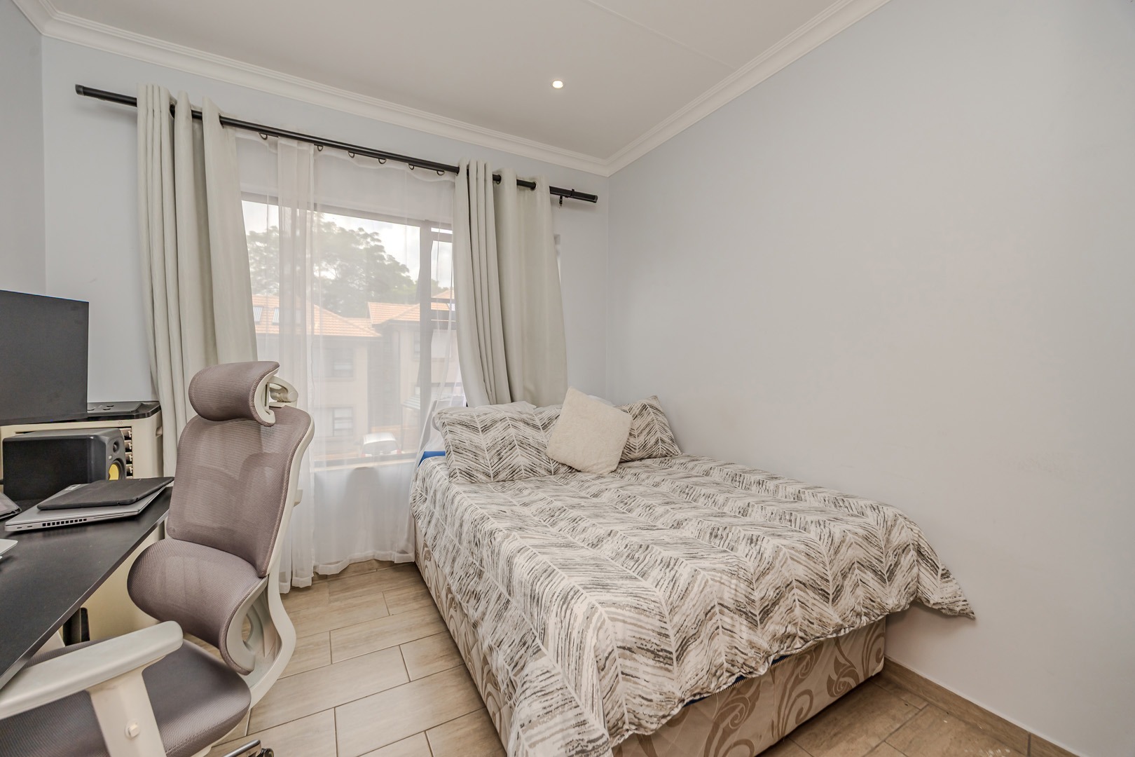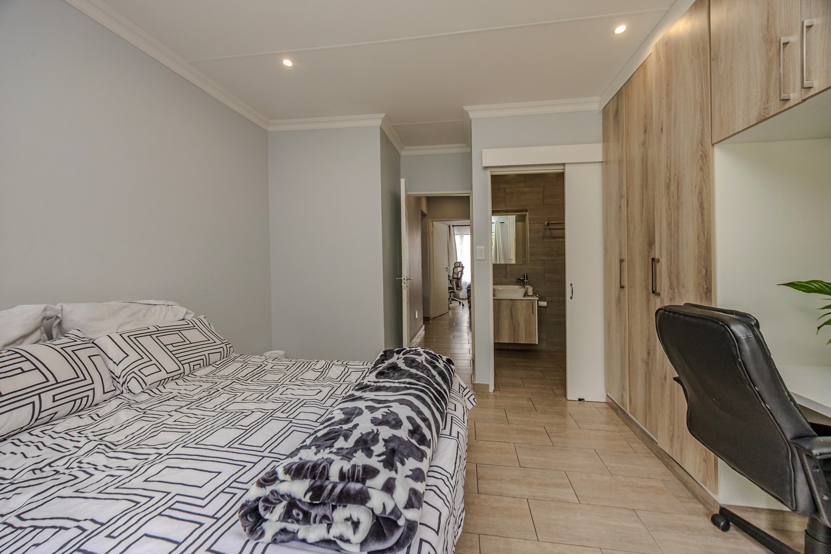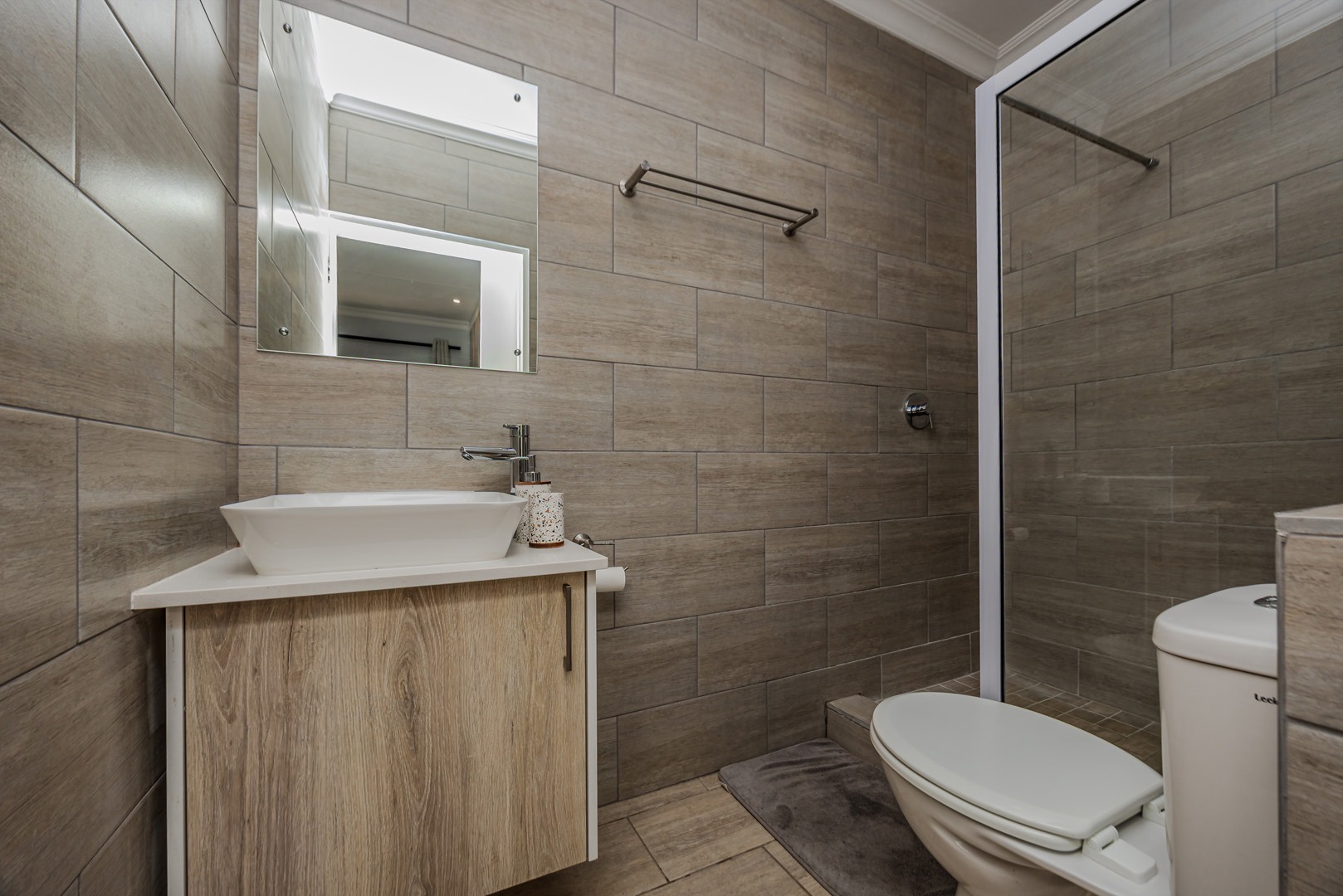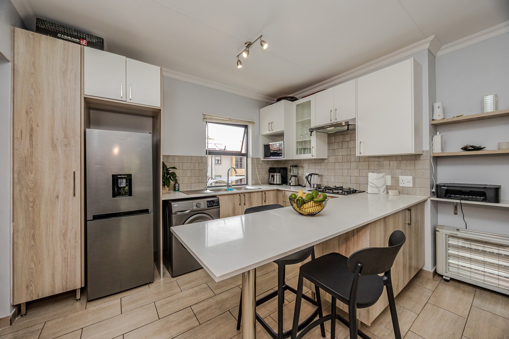 The kitchen is both stylish and practical, featuring a gas stove for efficient cooking, while a solar geyser helps reduce electricity costs. With pre-paid electricity already installed, you remain in full control of your monthly usage. Fibre connectivity is also available in the unit, ensuring fast and reliable internet access for work or leisure.