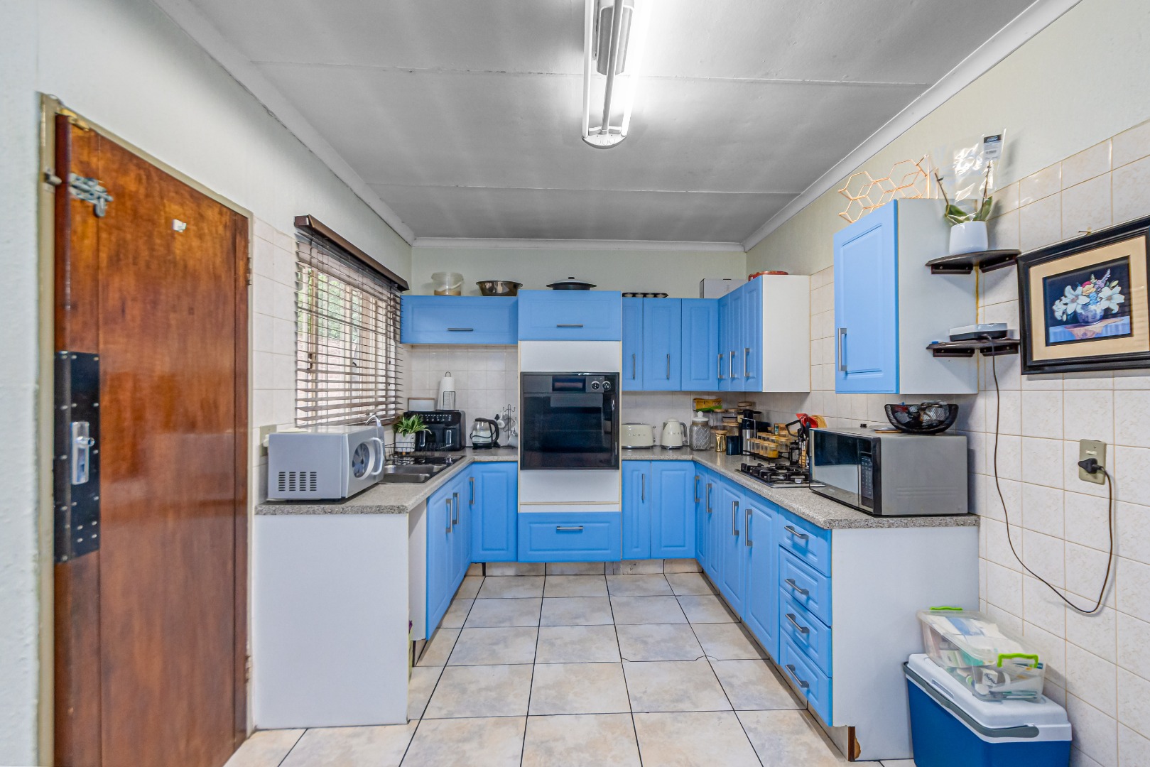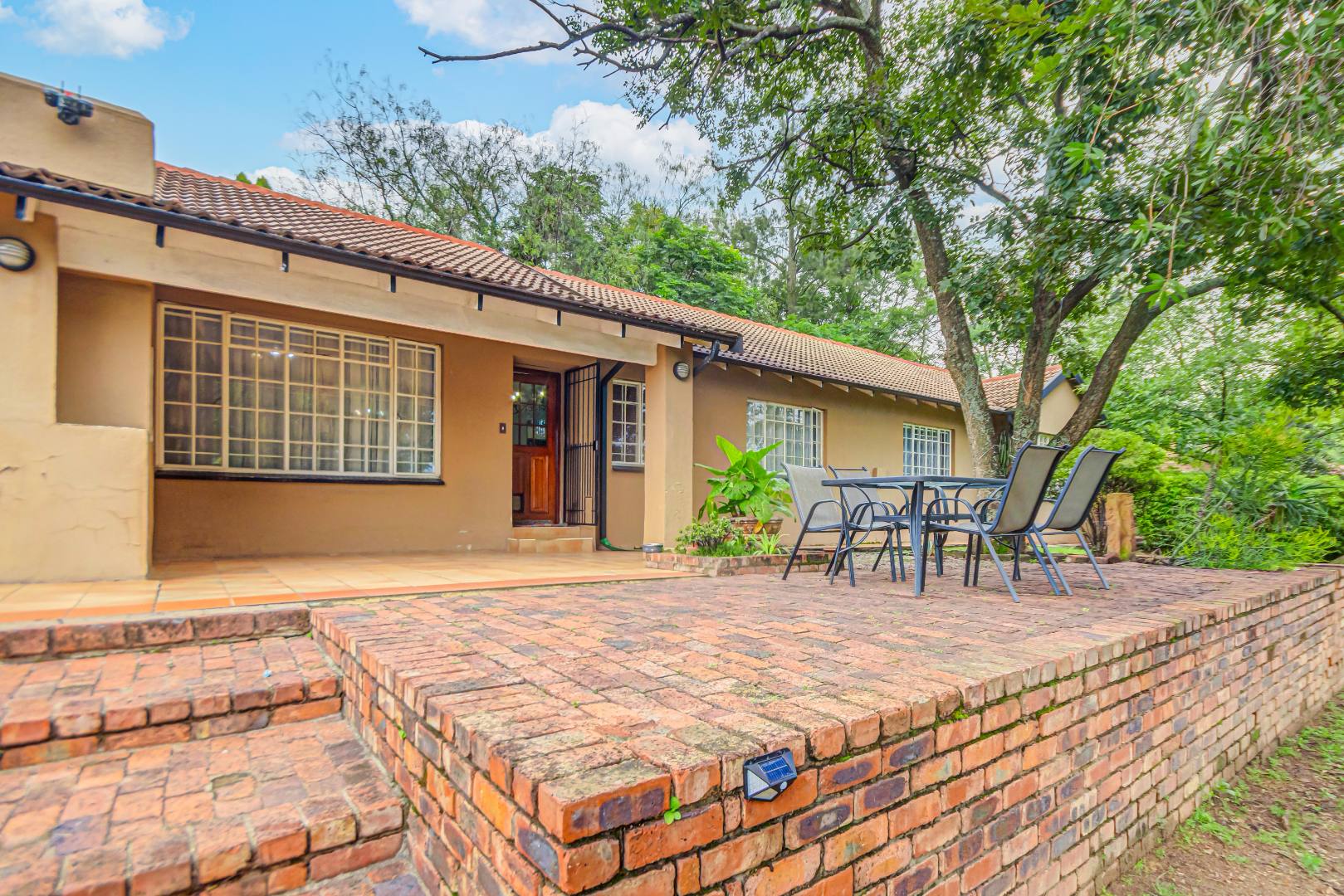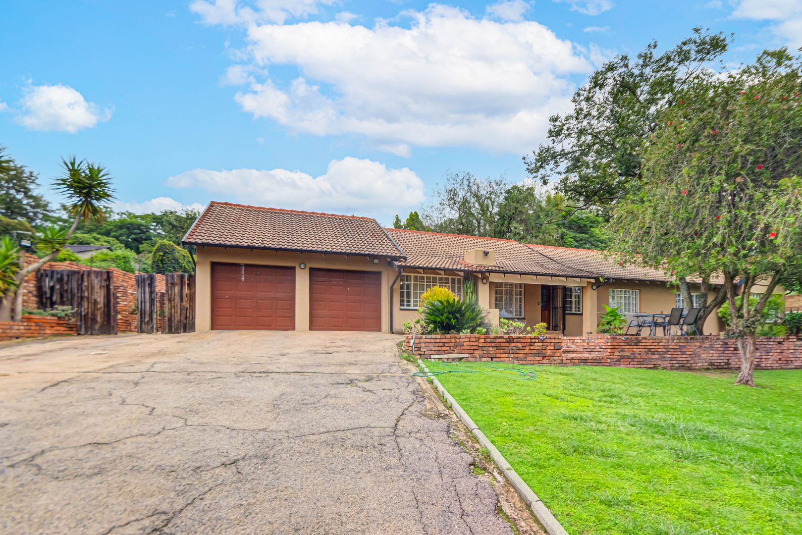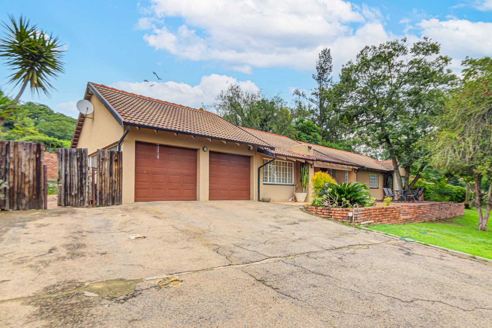 Additional features include a double garage an outside storeroom separated to the main house, servince quarters and security measures such as an alarm system and electric fencing.