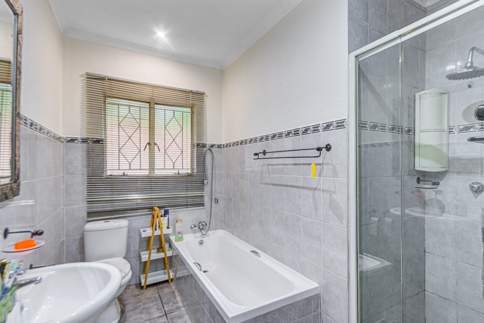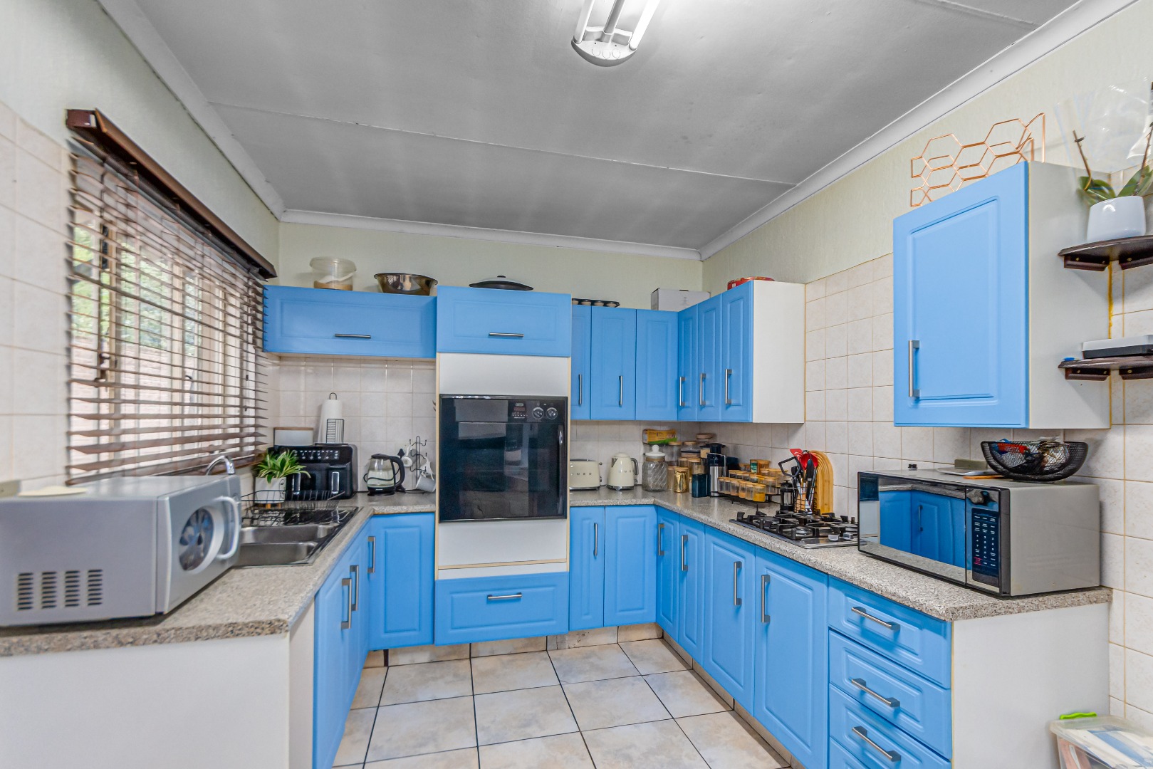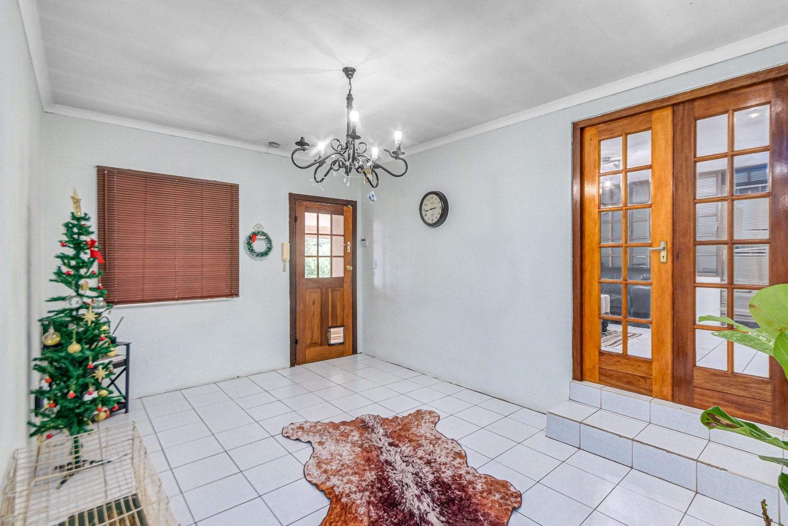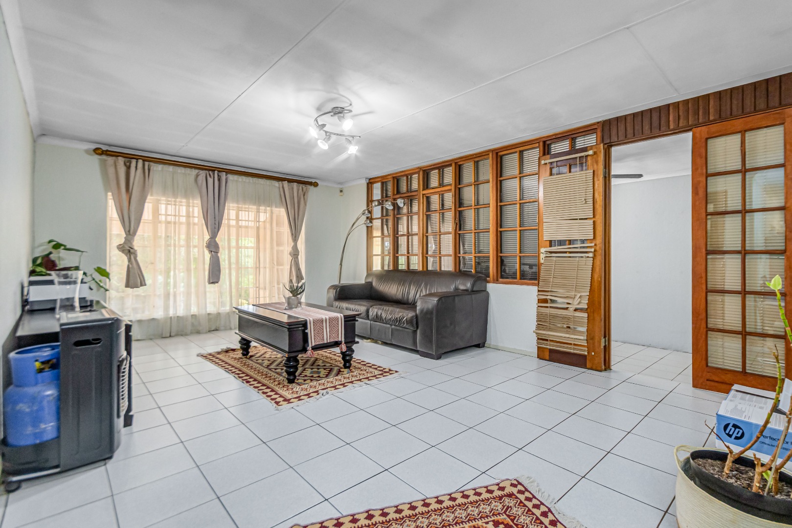 Additional features include a double garage an outside storeroom separated to the main house, servince quarters and security measures such as an alarm system and electric fencing.