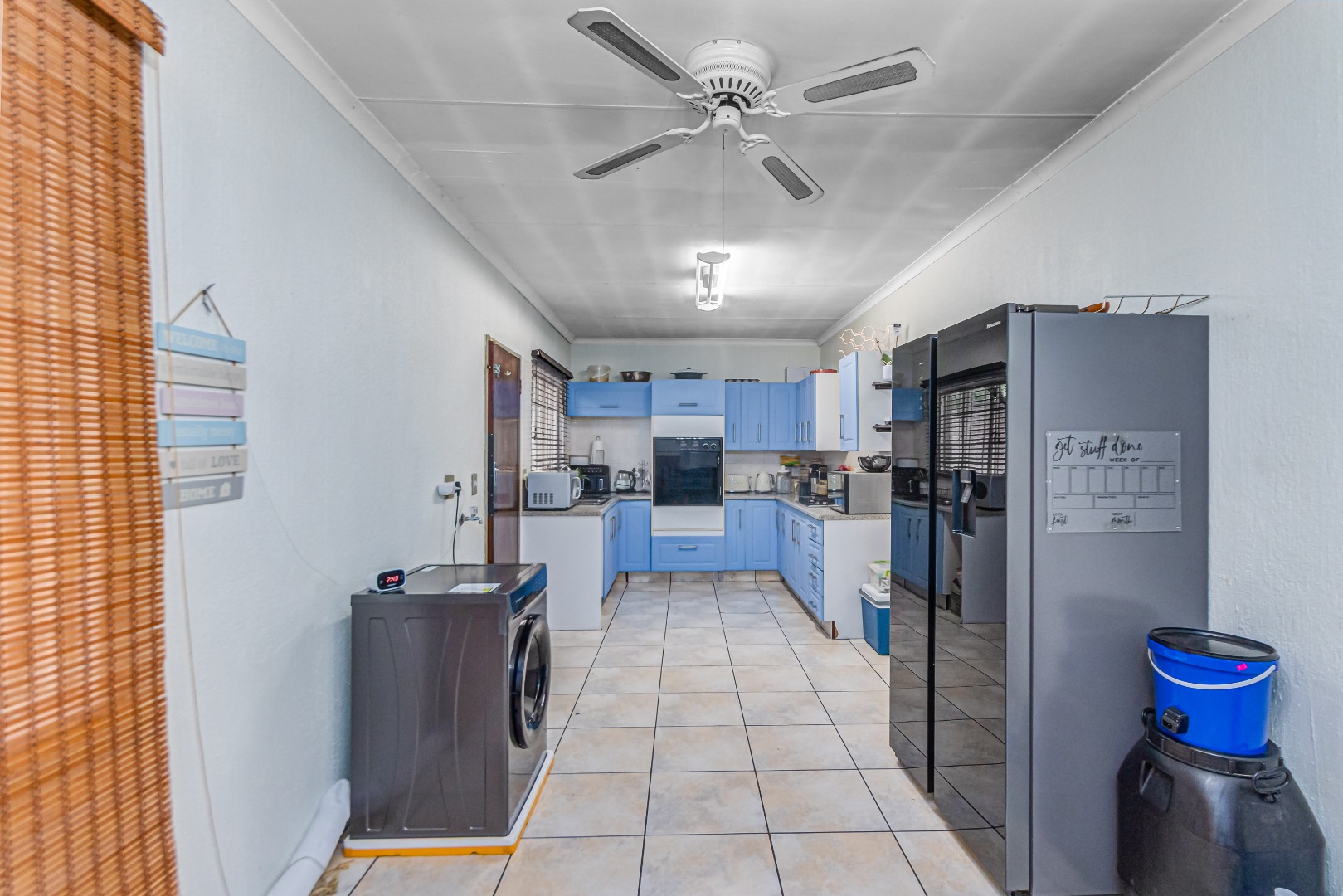 All three bedrooms are well-sized, with the main bedroom featuring a walk-in closet. The property offers two bathrooms, providing convenience for family living.