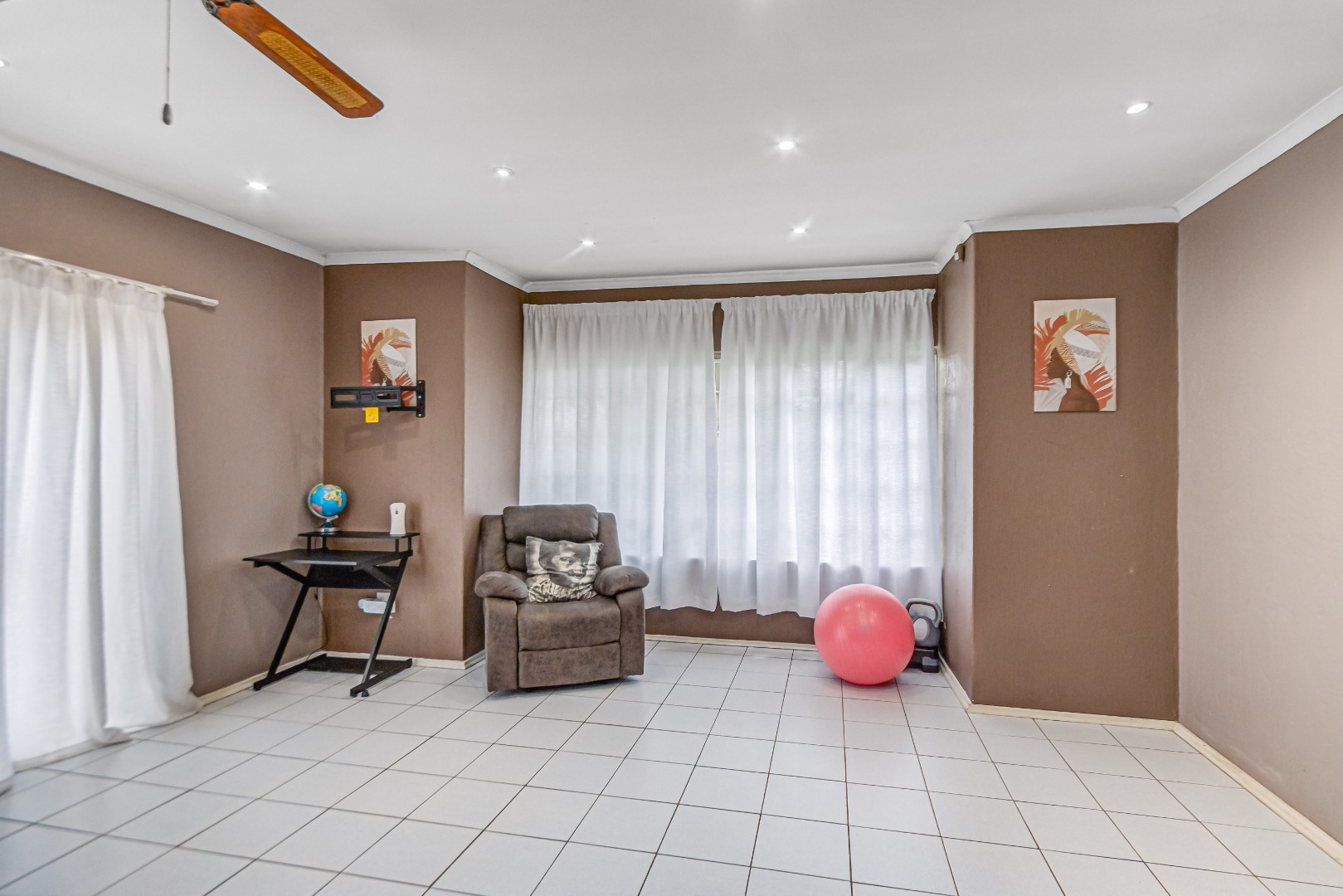 The home includes a spacious kitchen fitted with a gas hob, suitable for everyday cooking. A comfortable lounge provides a central living area, while a separate additional room, currently used as a dining area, can also serve as a home office or study, depending on your needs.