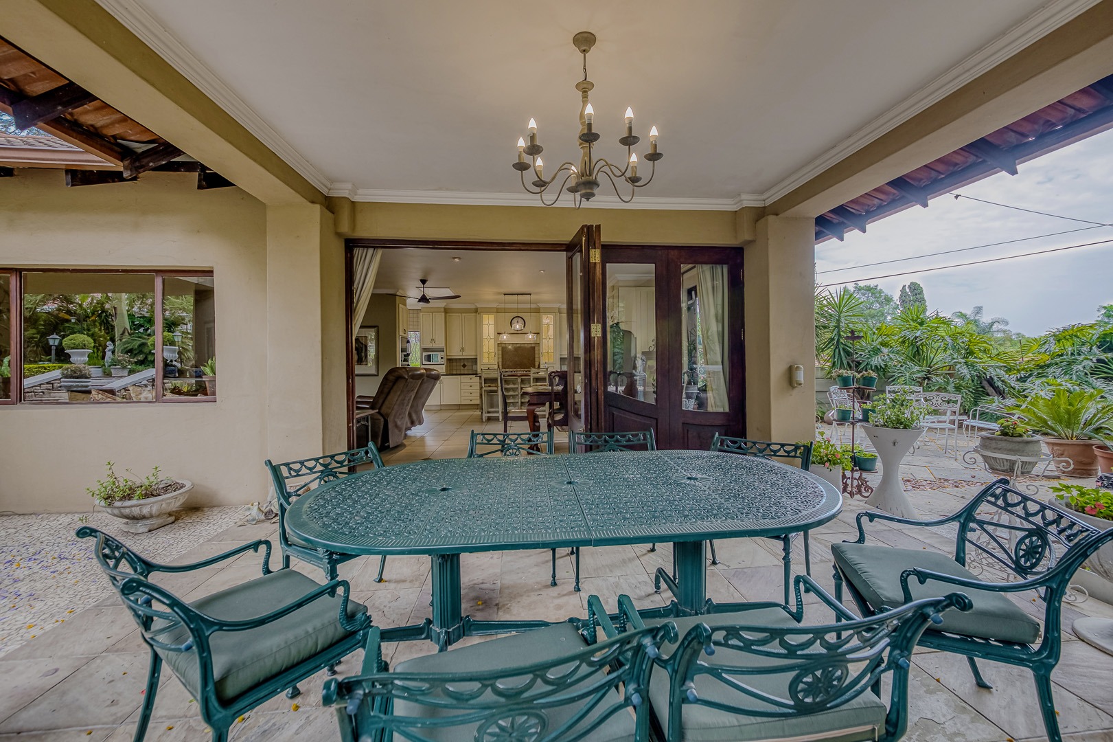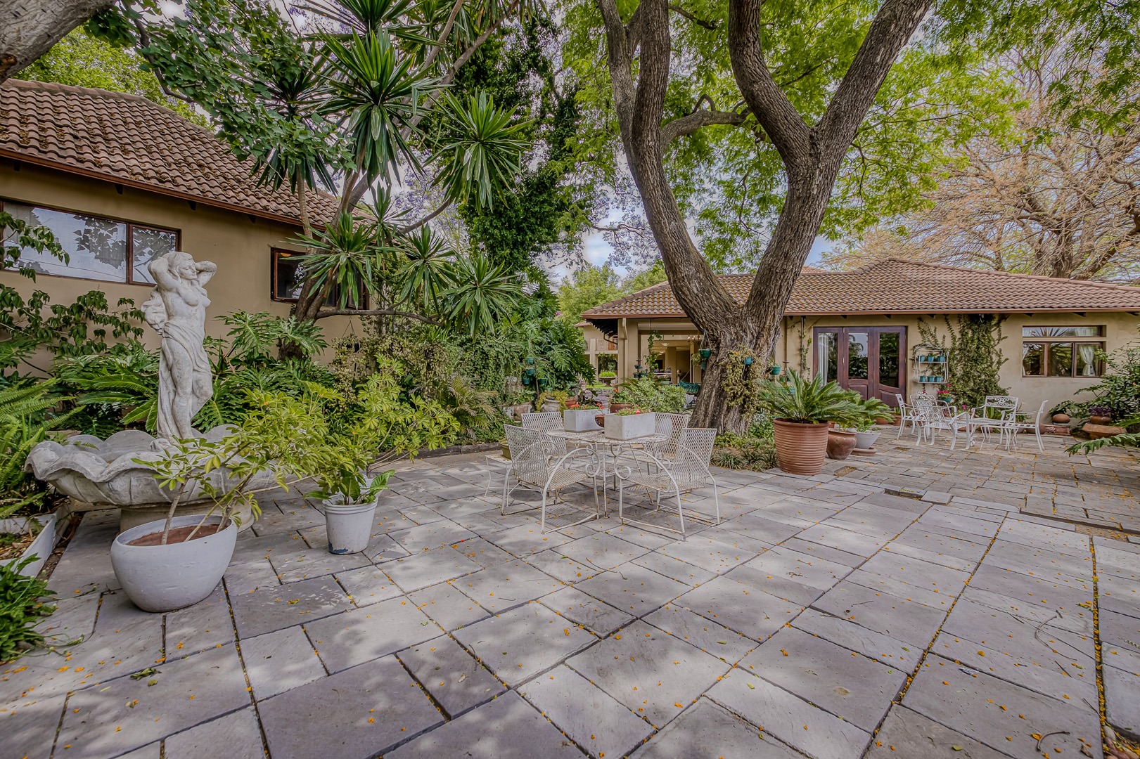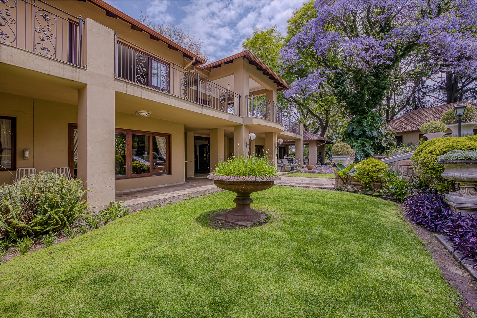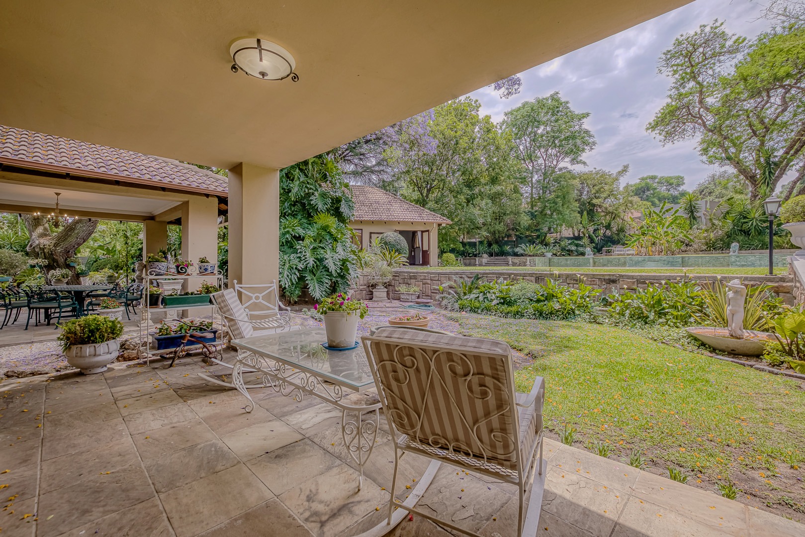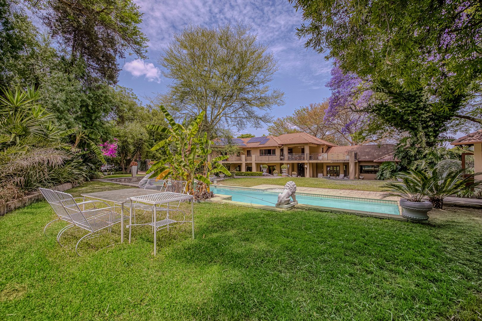 Step outside and immerse yourself in the beauty of the meticulously landscaped garden. The front patio overlooks the lush greenery and the sparkling swimming pool, framed by a stunning Jacaranda tree and vibrant Bougainvillea. Multiple courtyards provide perfect spots for entertaining or simply relaxing in the peaceful surroundings.