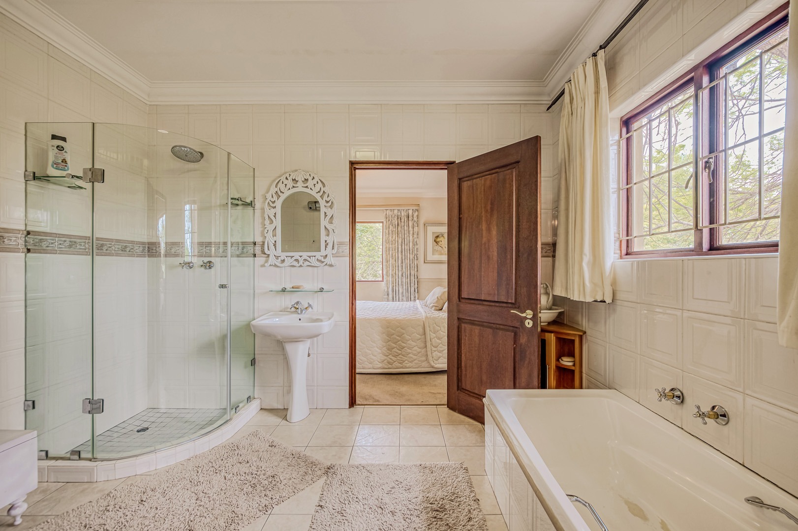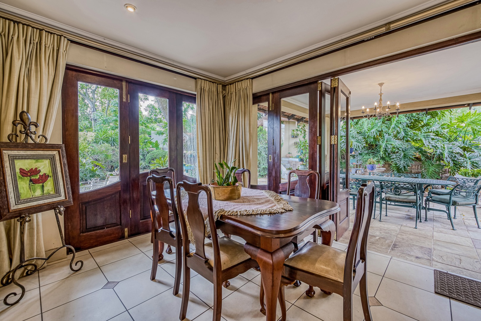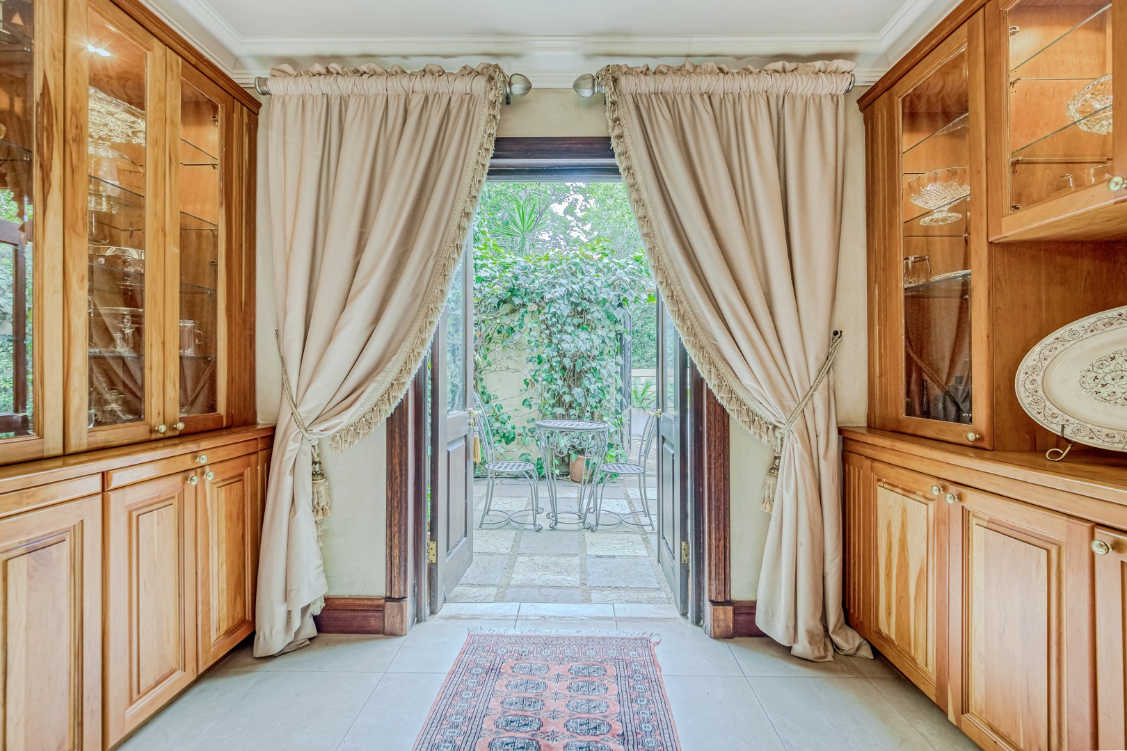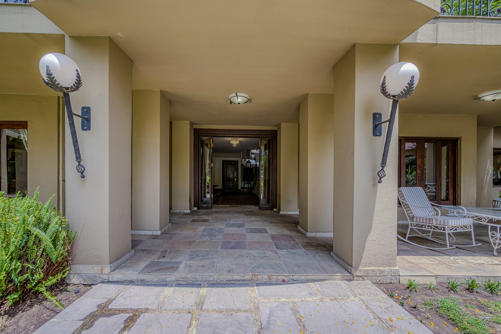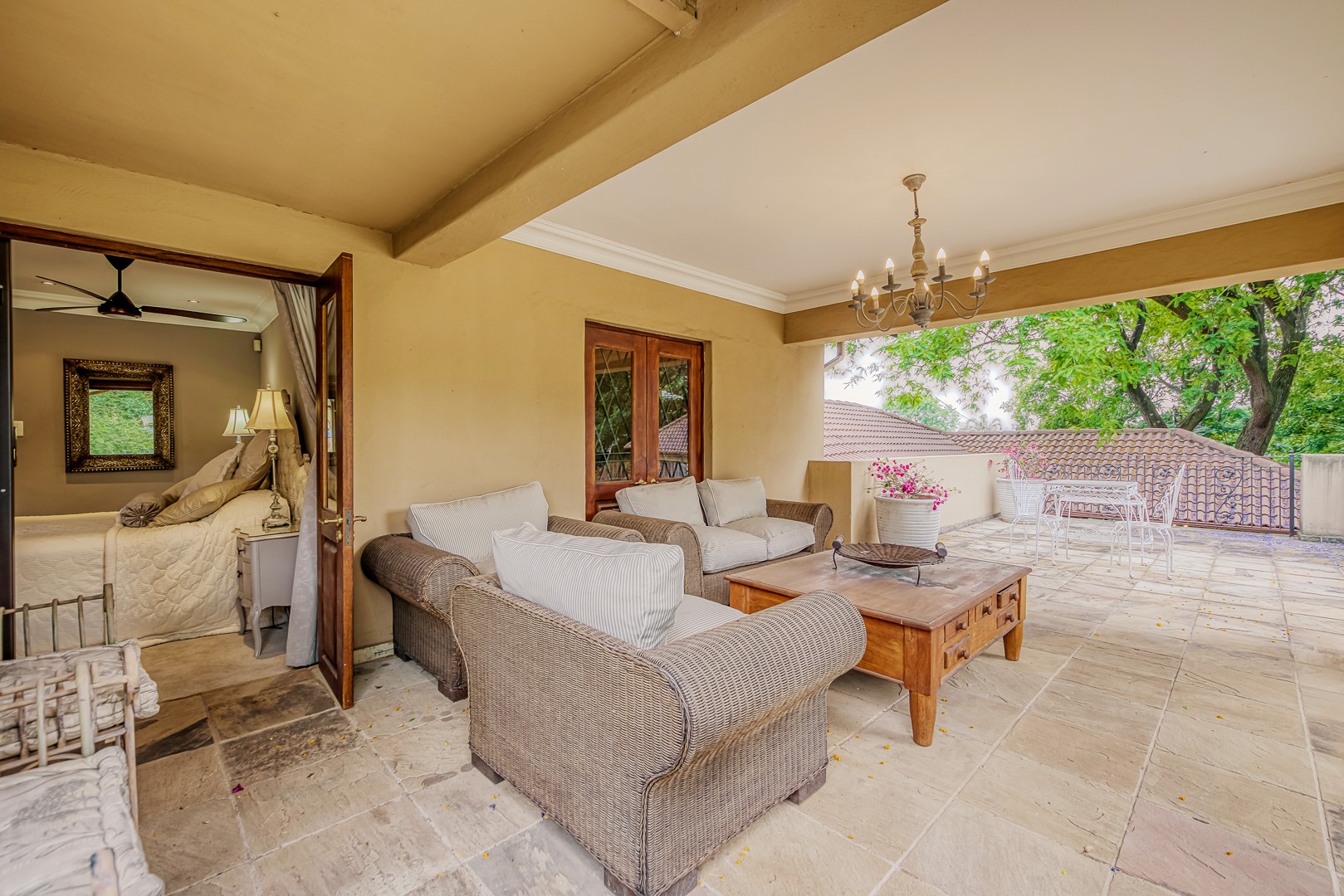 Step outside and immerse yourself in the beauty of the meticulously landscaped garden. The front patio overlooks the lush greenery and the sparkling swimming pool, framed by a stunning Jacaranda tree and vibrant Bougainvillea. Multiple courtyards provide perfect spots for entertaining or simply relaxing in the peaceful surroundings.