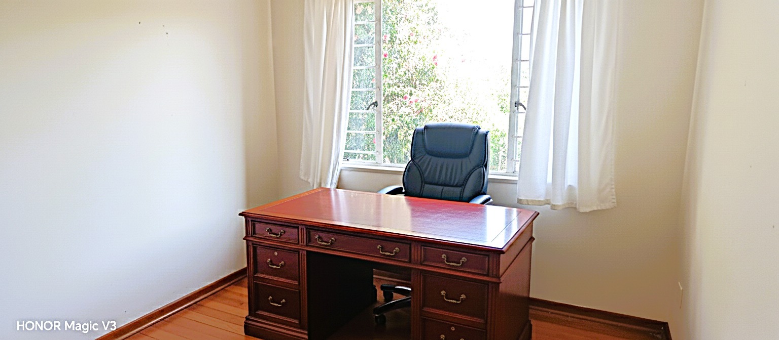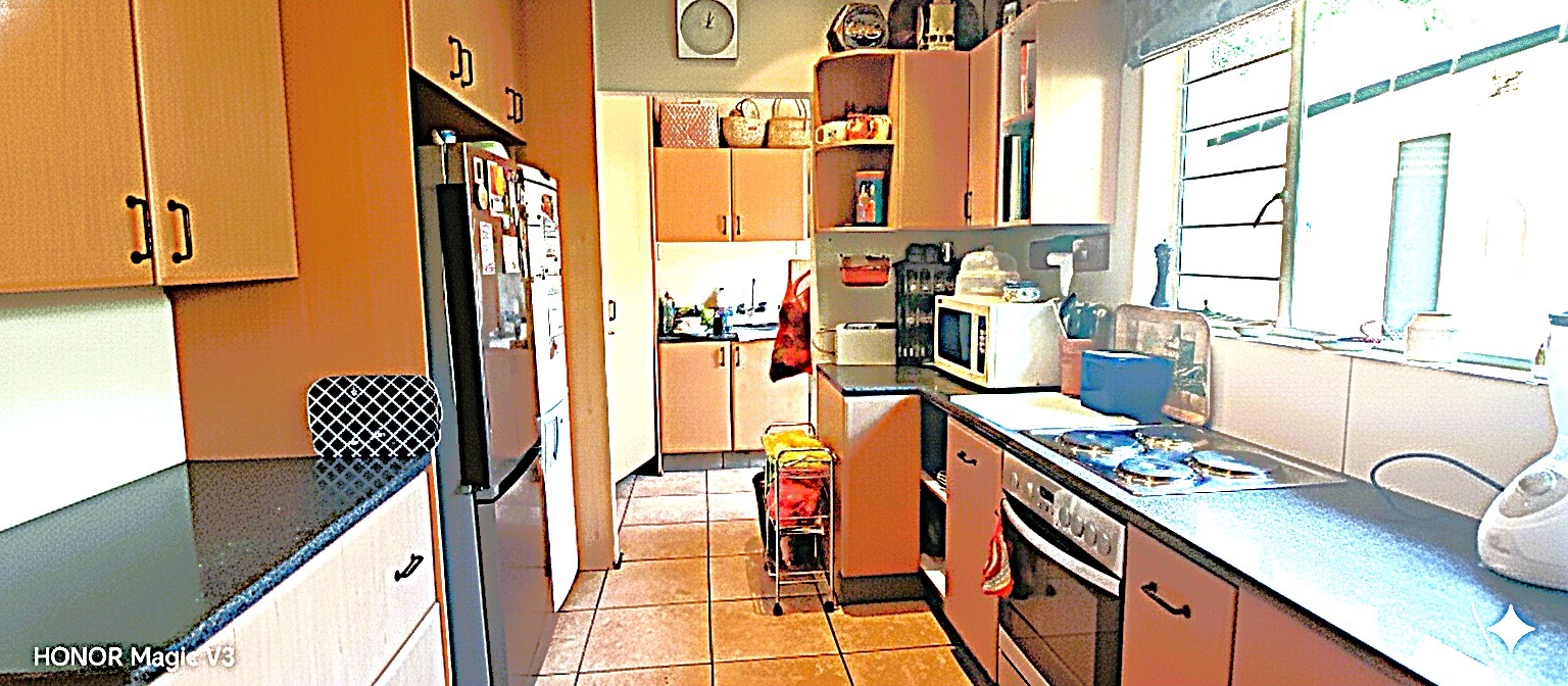 Down the passage, you’ll find four spacious bedrooms with built-in cupboards and two neat bathrooms, including a main en-suite for added privacy. The fourth bedroom is ideal as a guest suite or home office, offering flexibility to suit your lifestyle.