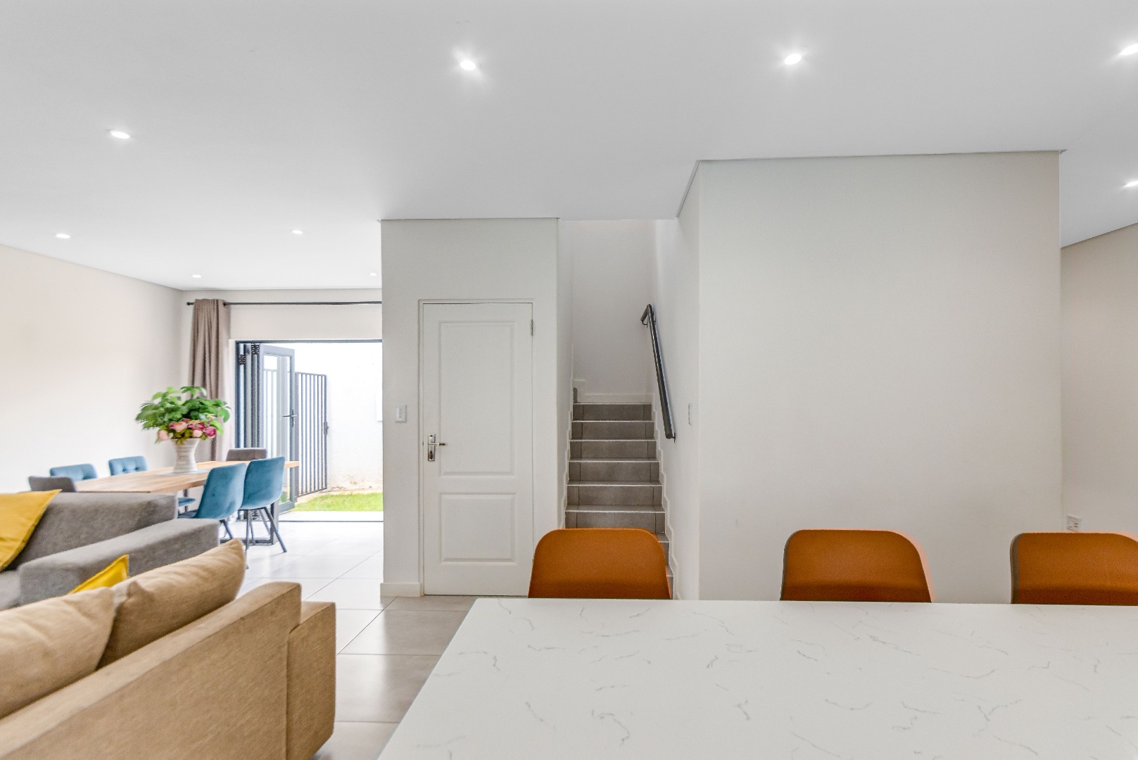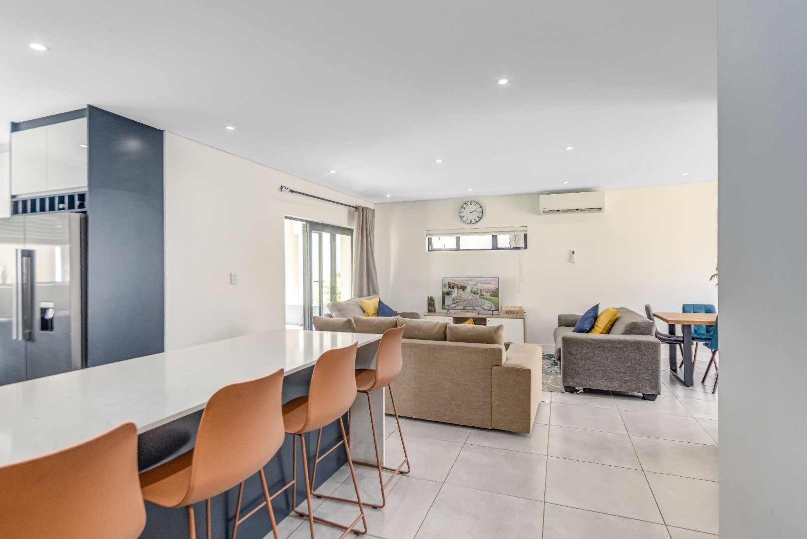 This two-storey home unfolds beautifully, beginning with a light-filled open-plan kitchen, lounge, and dining room designed for effortless living.