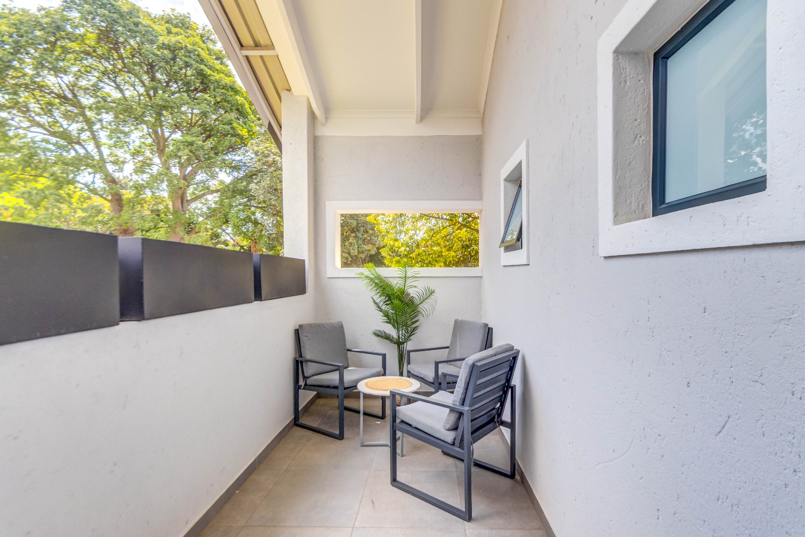 Step out onto the balcony and enjoy a peaceful moment overlooking your private outdoor space.