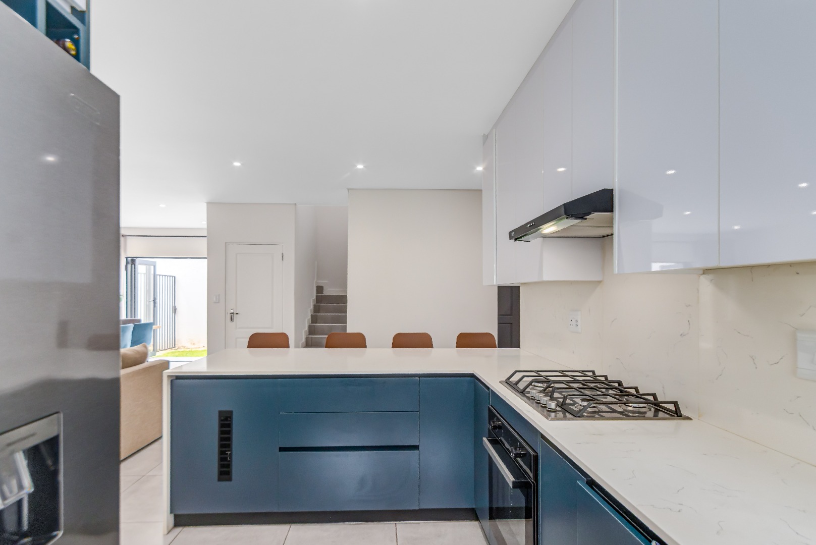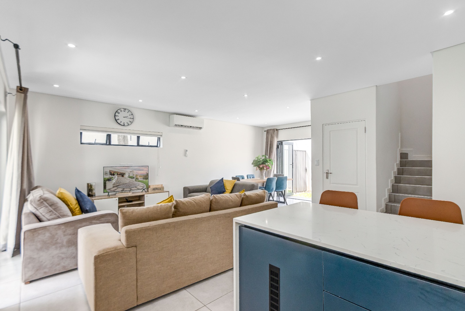 This two-storey home unfolds beautifully, beginning with a light-filled open-plan kitchen, lounge, and dining room designed for effortless living.