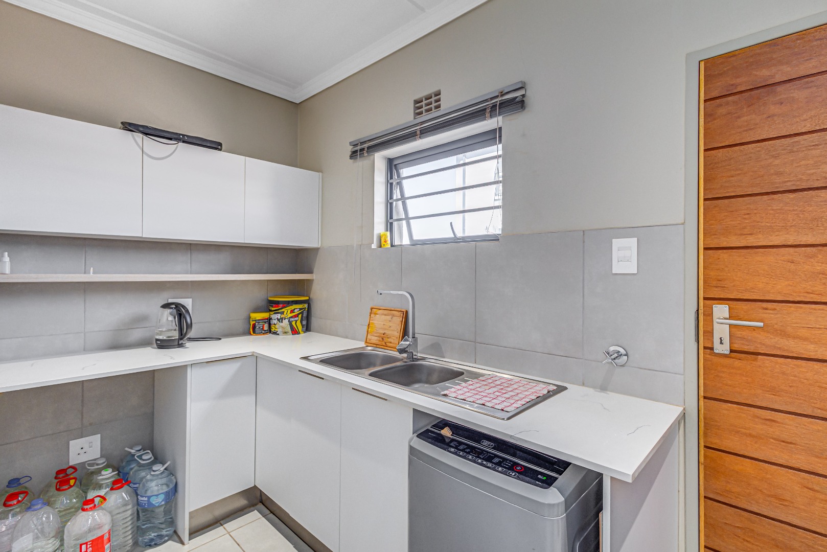 Outside, the private garden and paved patio provide the perfect setting for weekend braais and relaxed outdoor gatherings.