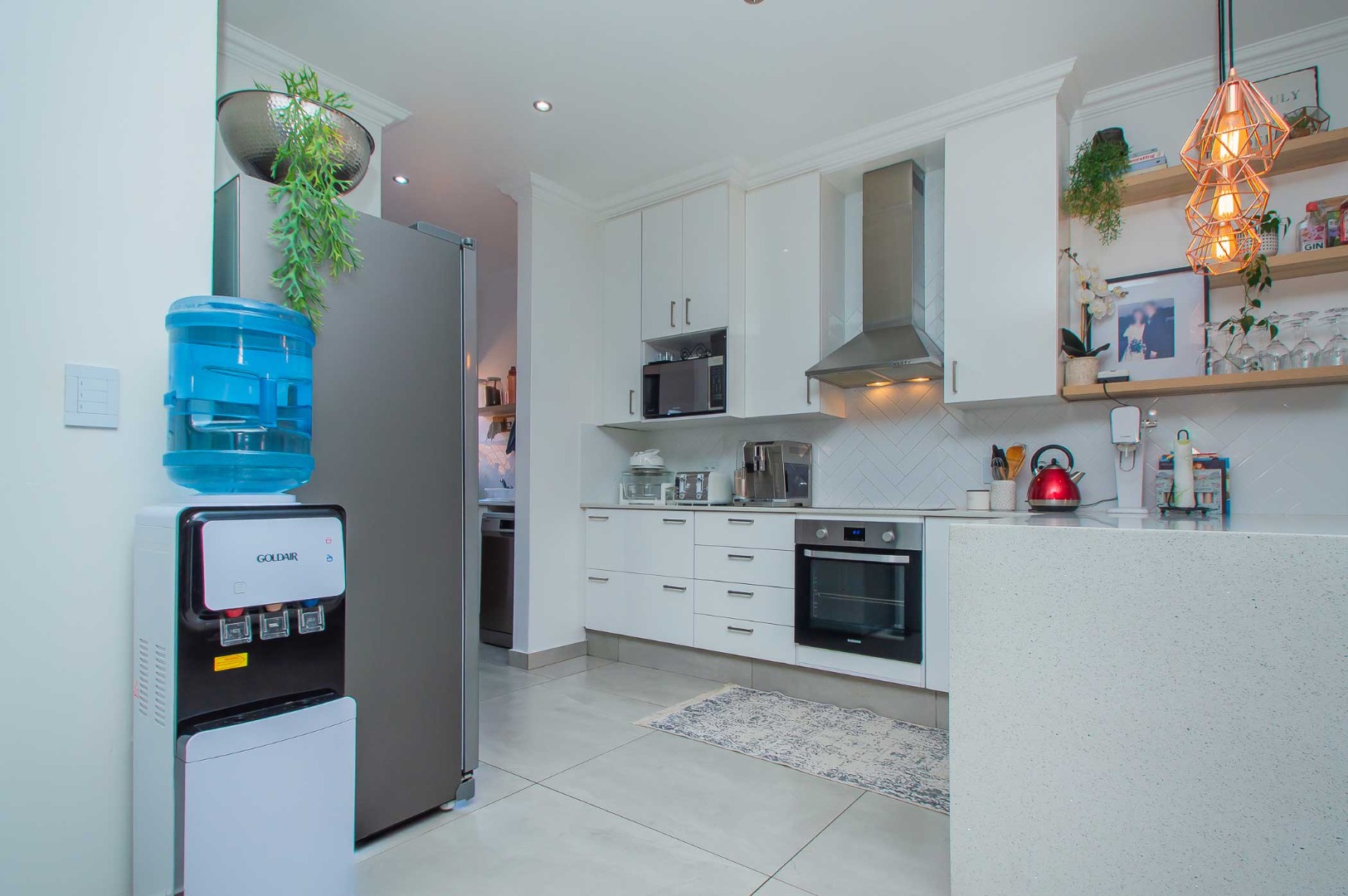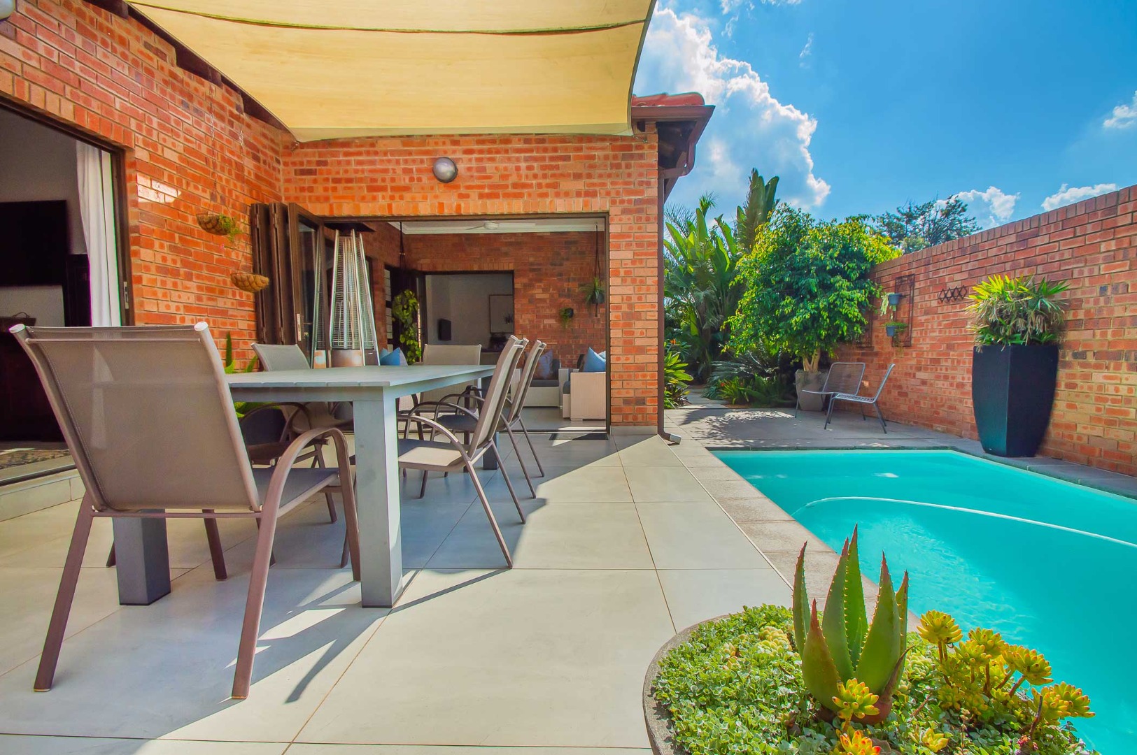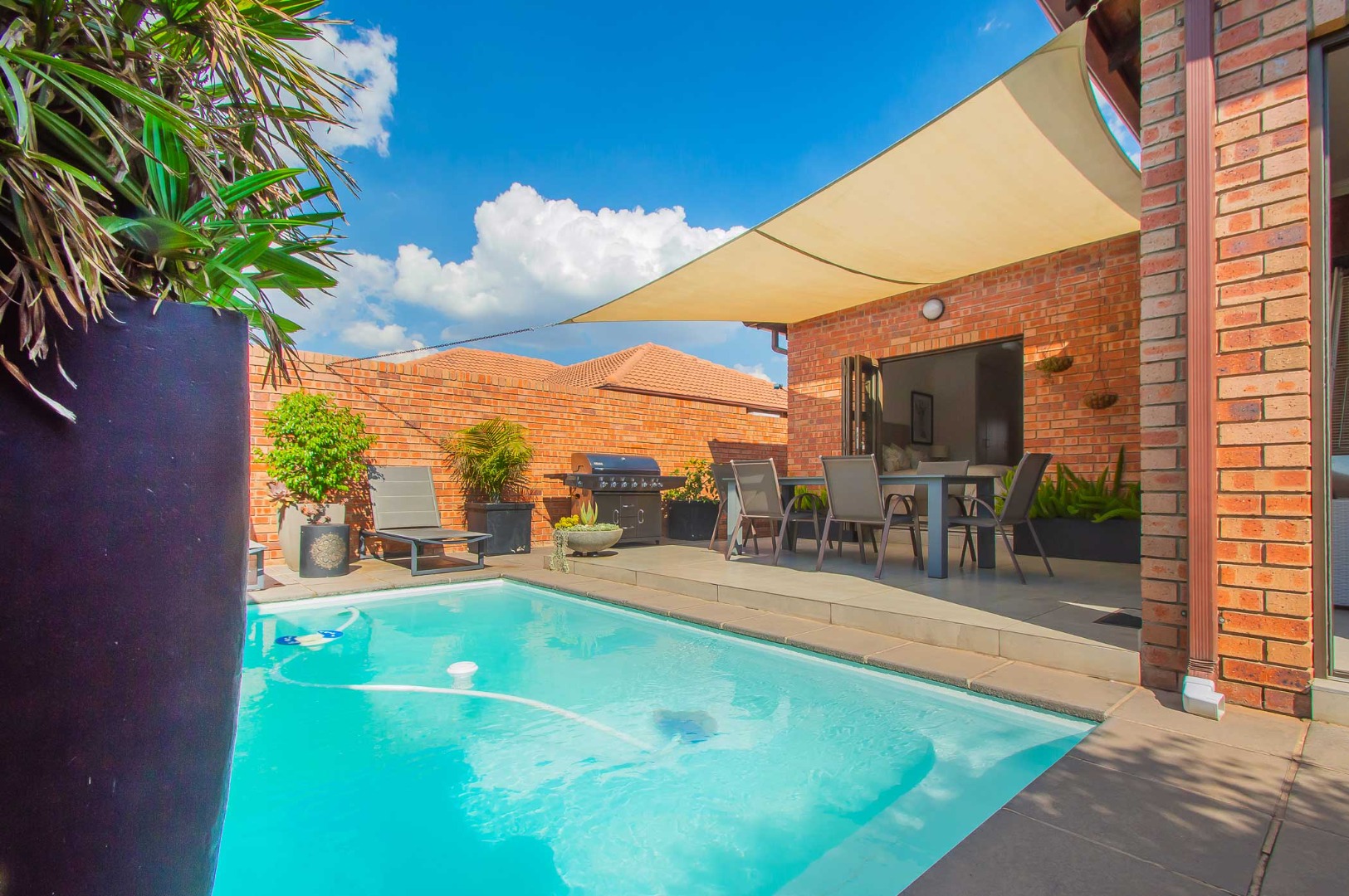 Stunning full title home with ultra-modern finishes, private, has a blue sparkling swimming pool and a lush green landscaped low maintenance garden. ABSOLUTE BLISS!