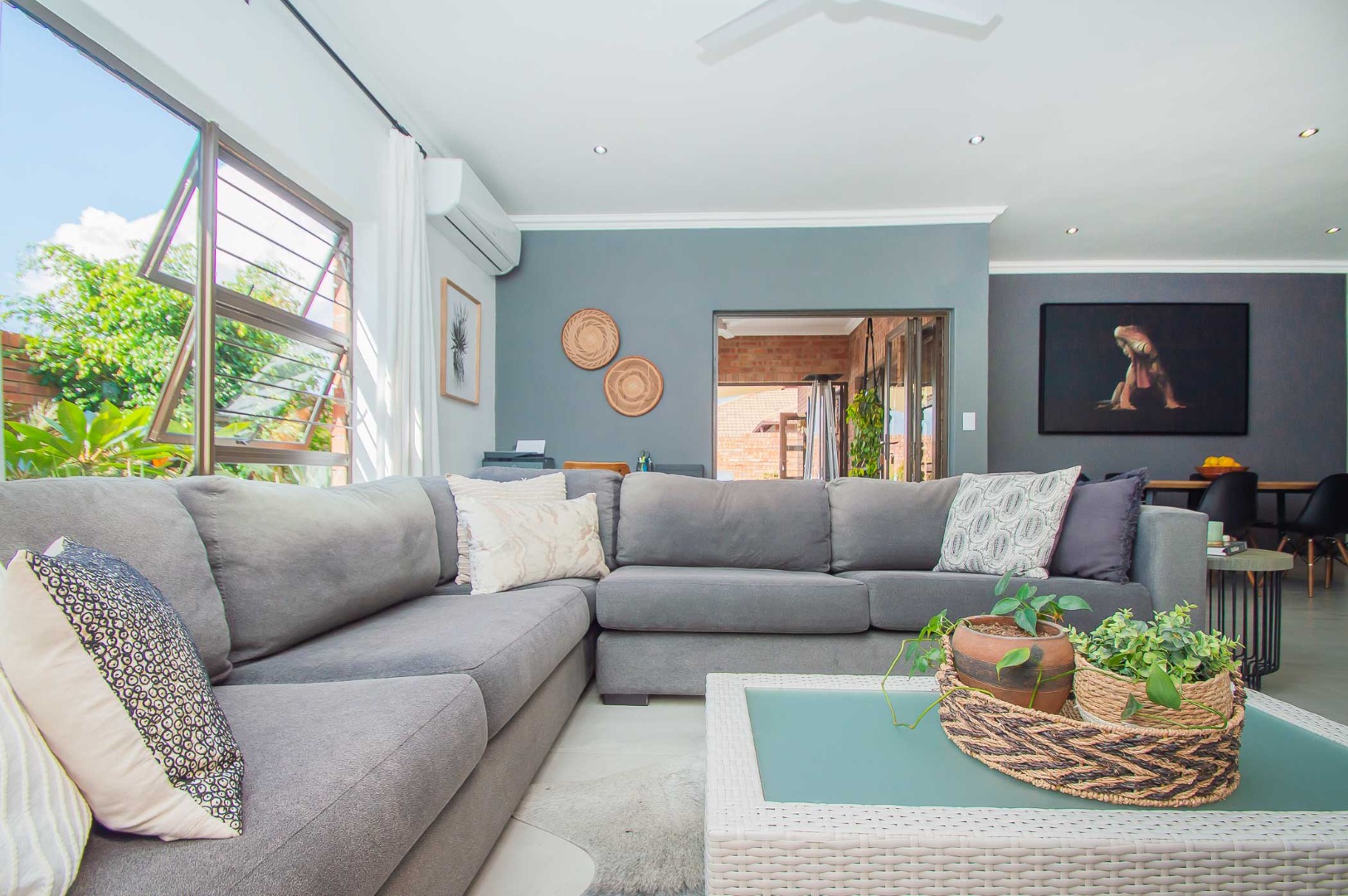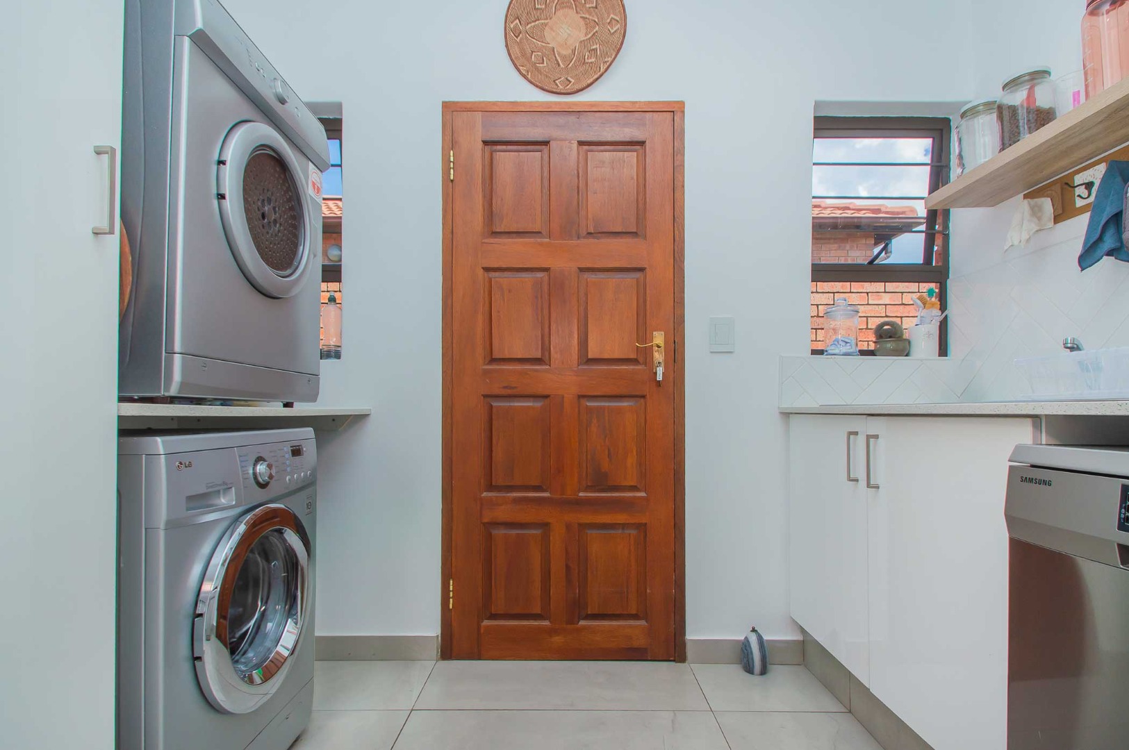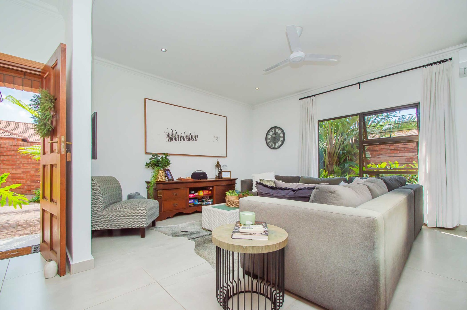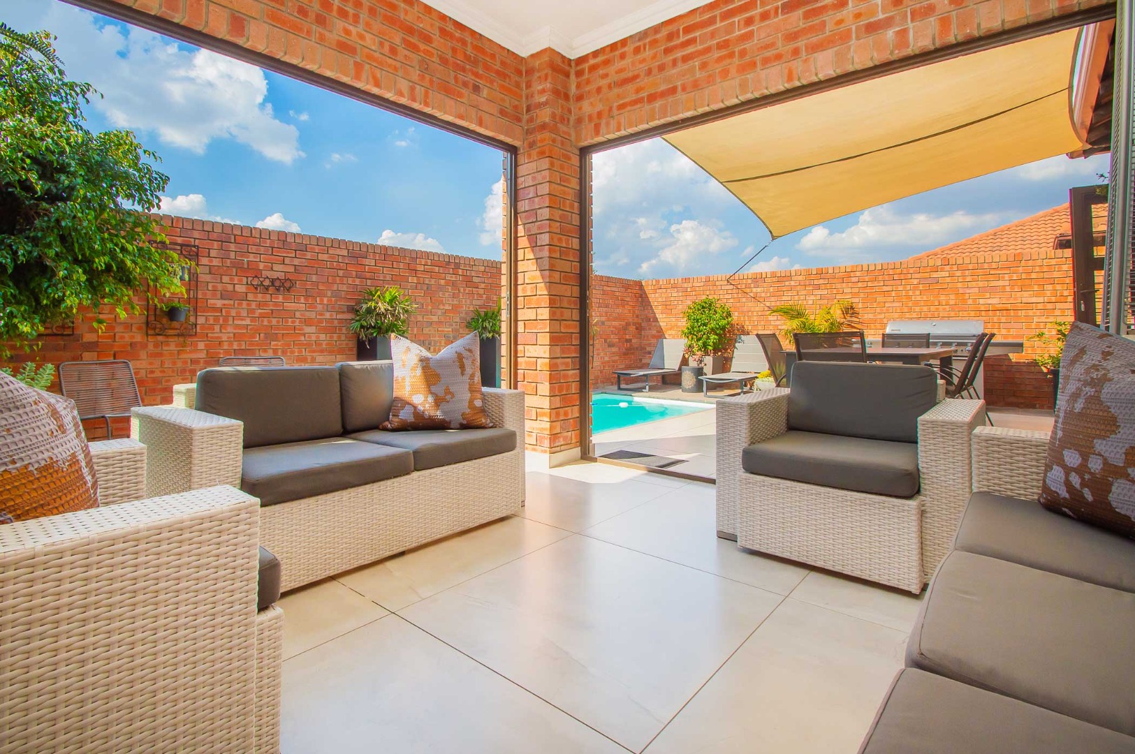Stunning full title home with ultra-modern finishes, private, has a blue sparkling swimming pool and a lush green landscaped low maintenance garden. ABSOLUTE BLISS!
