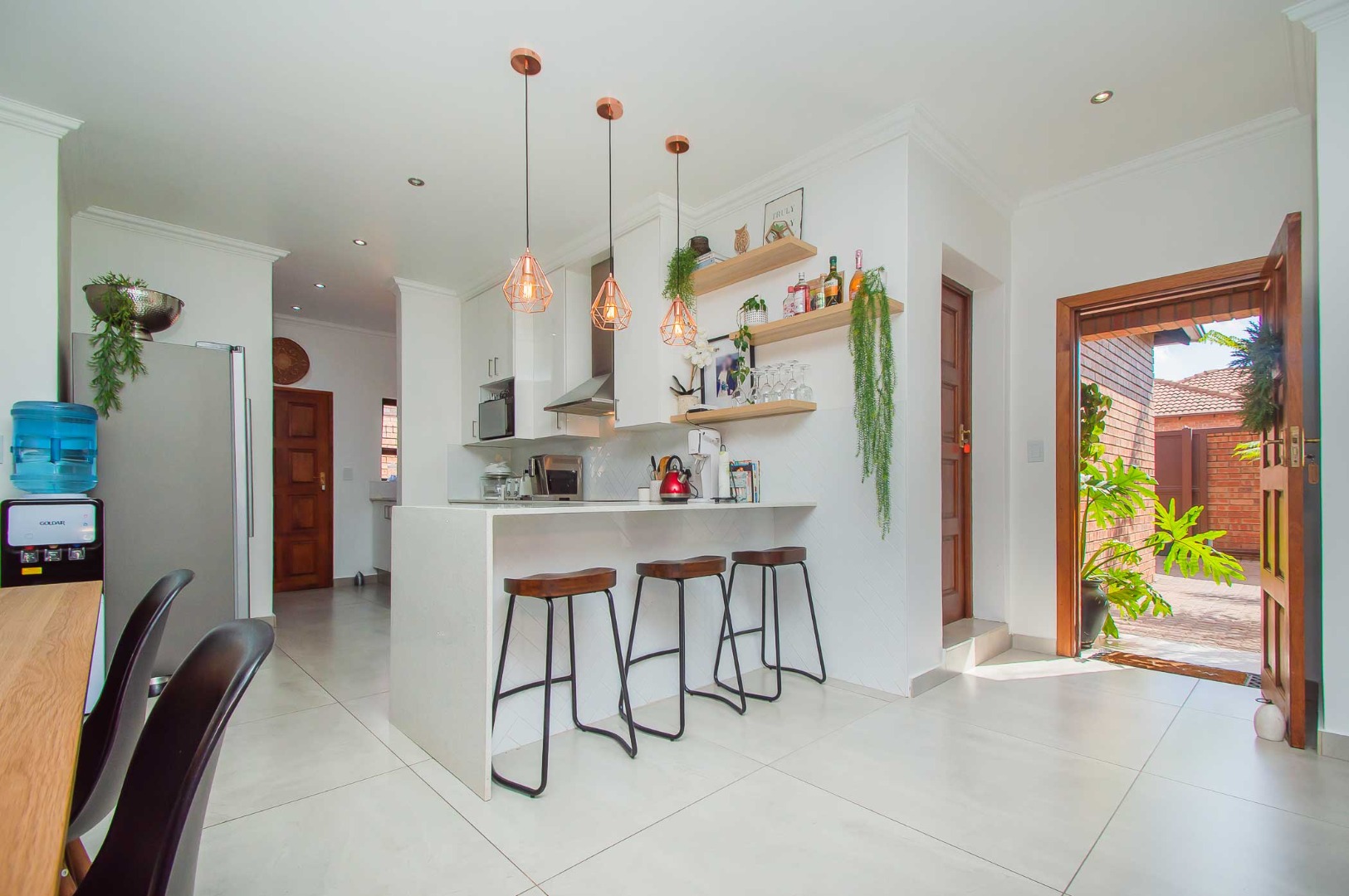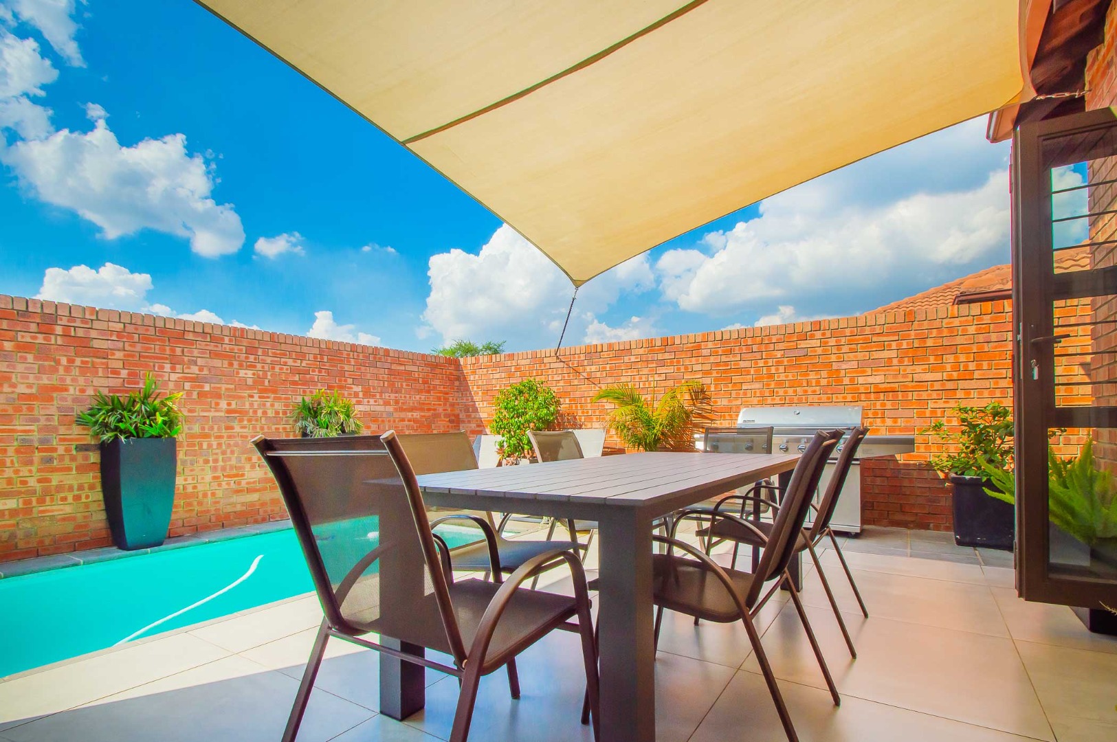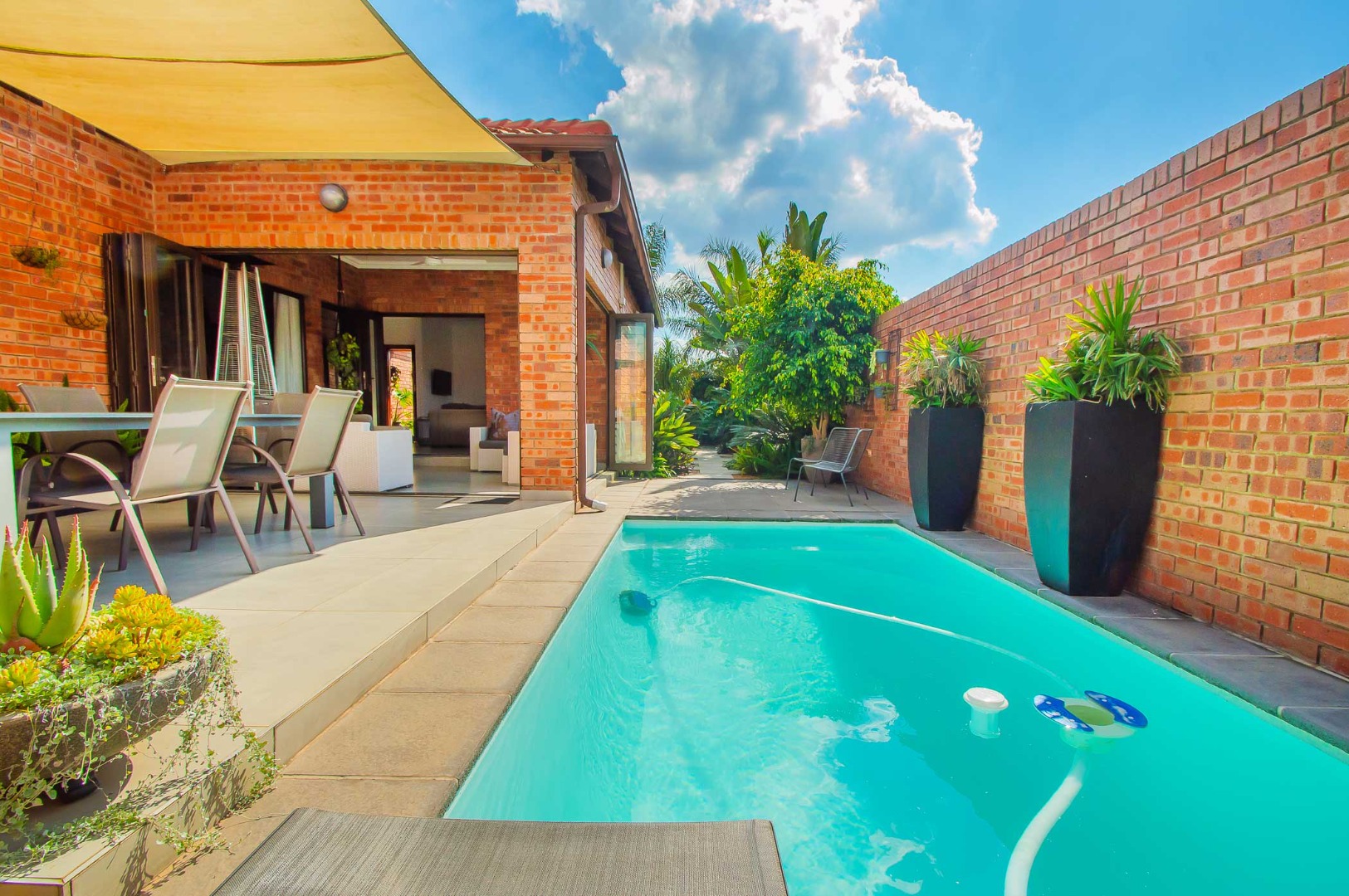 Stunning full title home with ultra-modern finishes, private, has a blue sparkling swimming pool and a lush green landscaped low maintenance garden. ABSOLUTE BLISS!