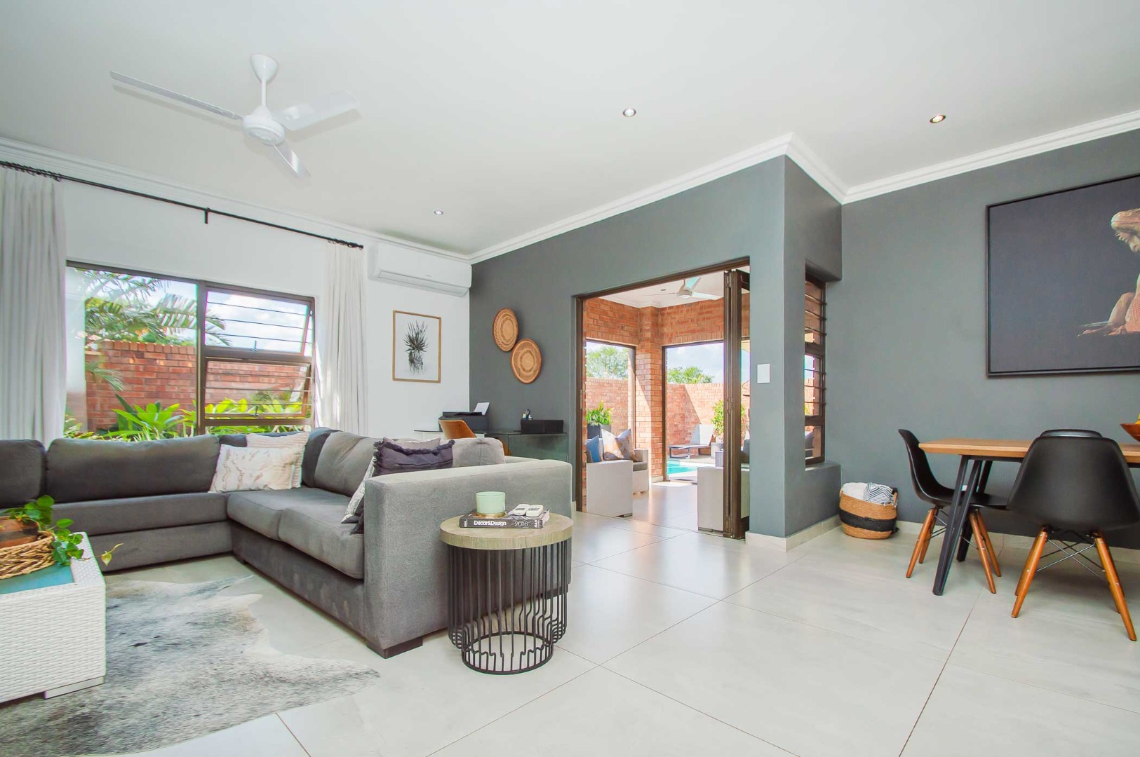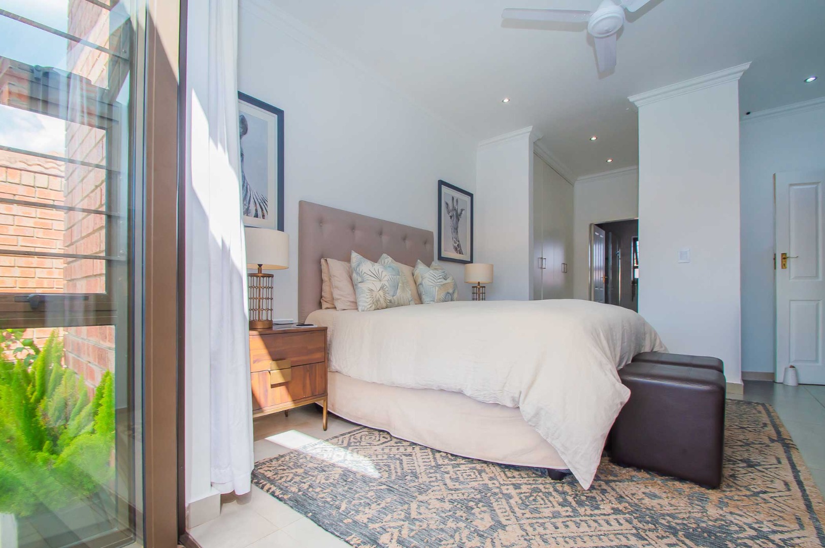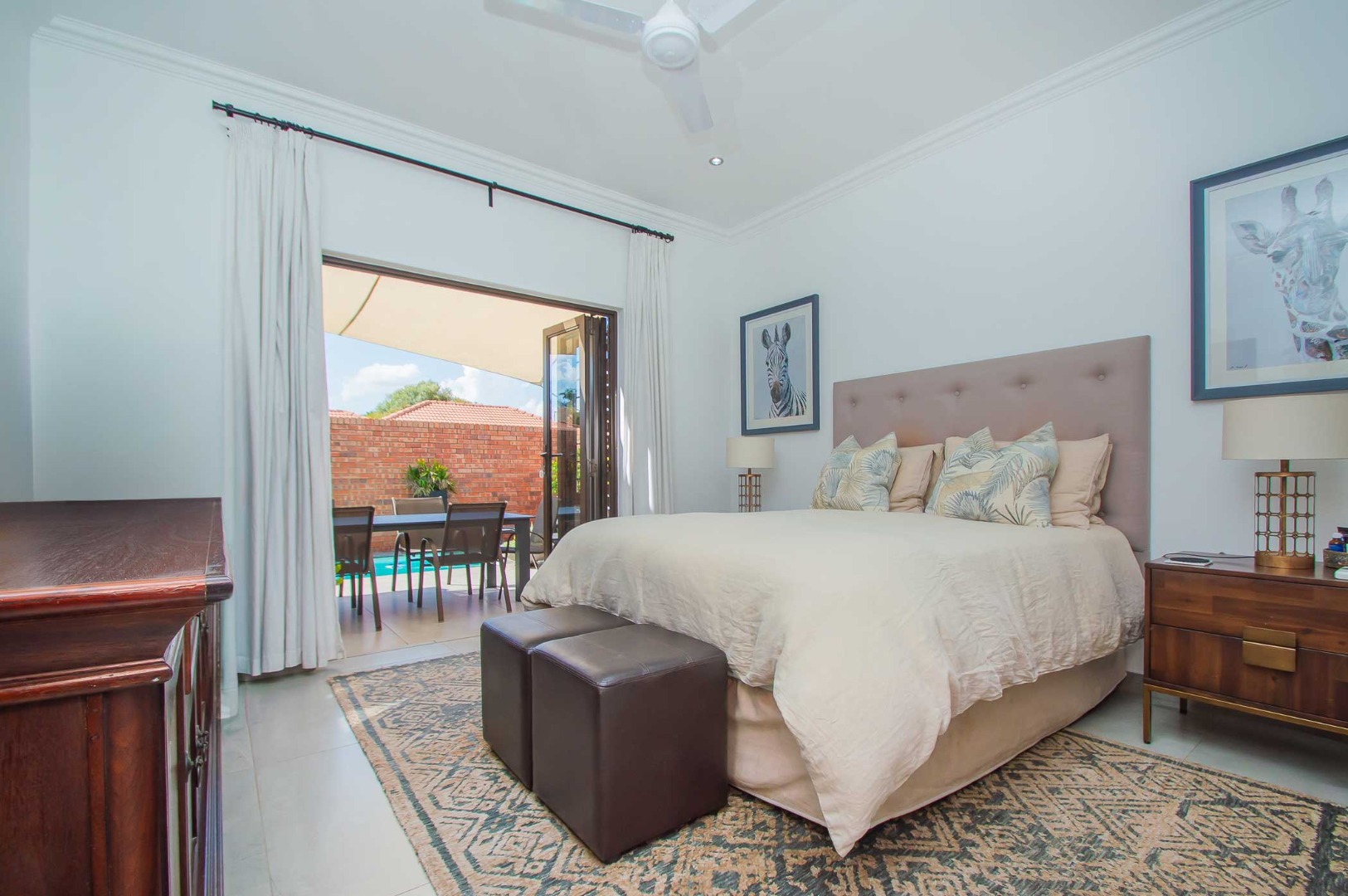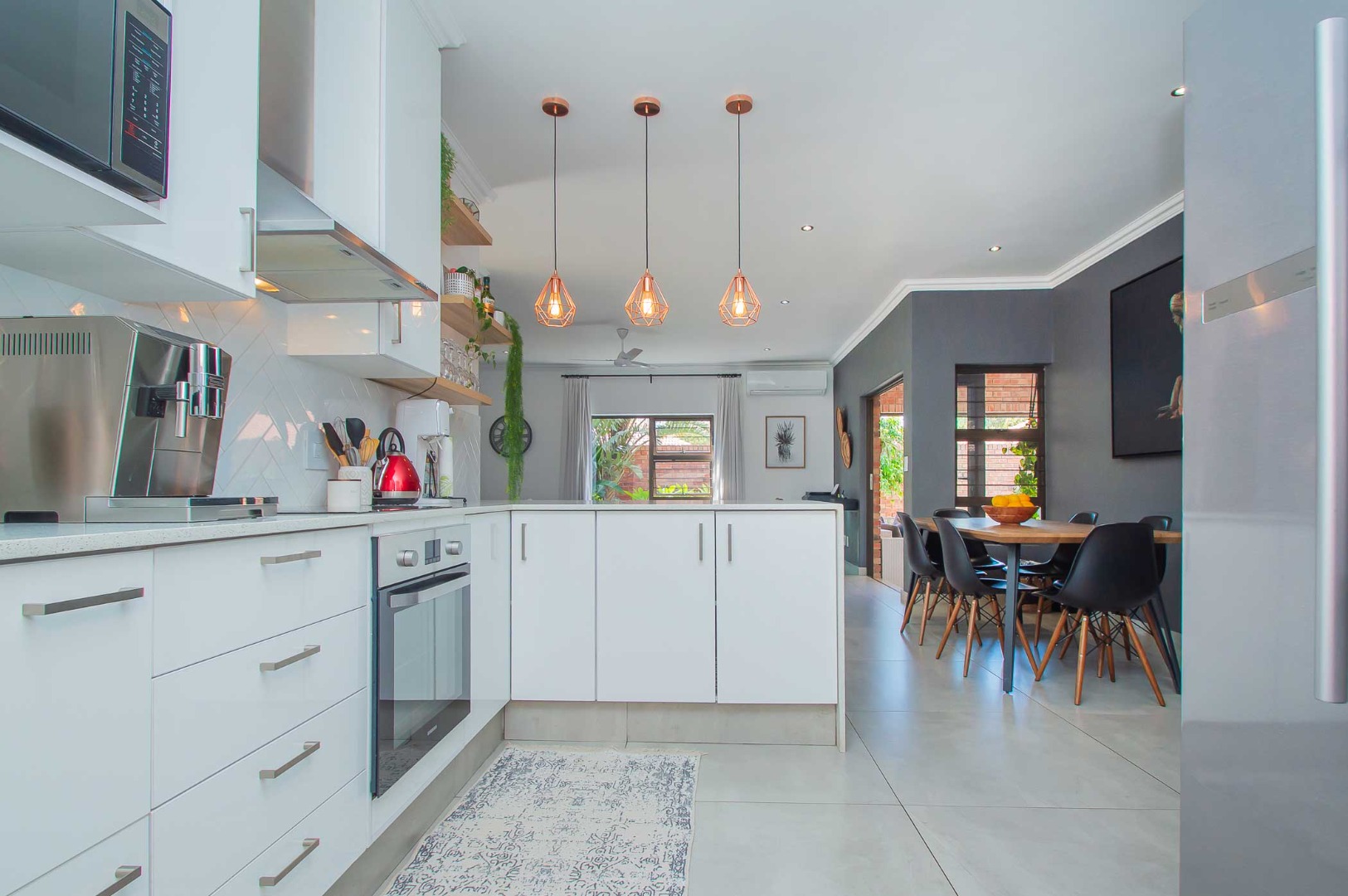 Stunning full title home with ultra-modern finishes, private, has a blue sparkling swimming pool and a lush green landscaped low maintenance garden. ABSOLUTE BLISS!