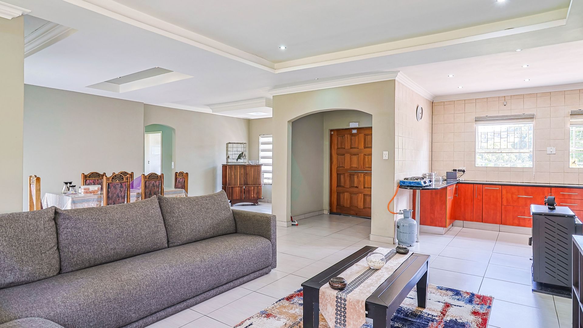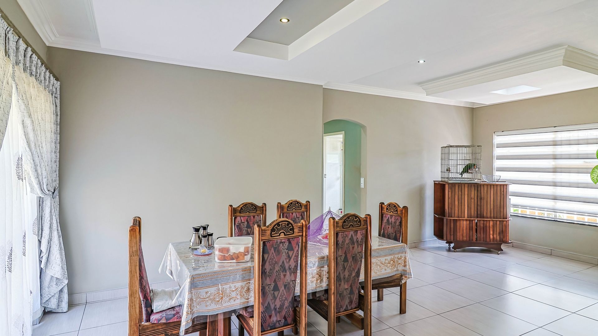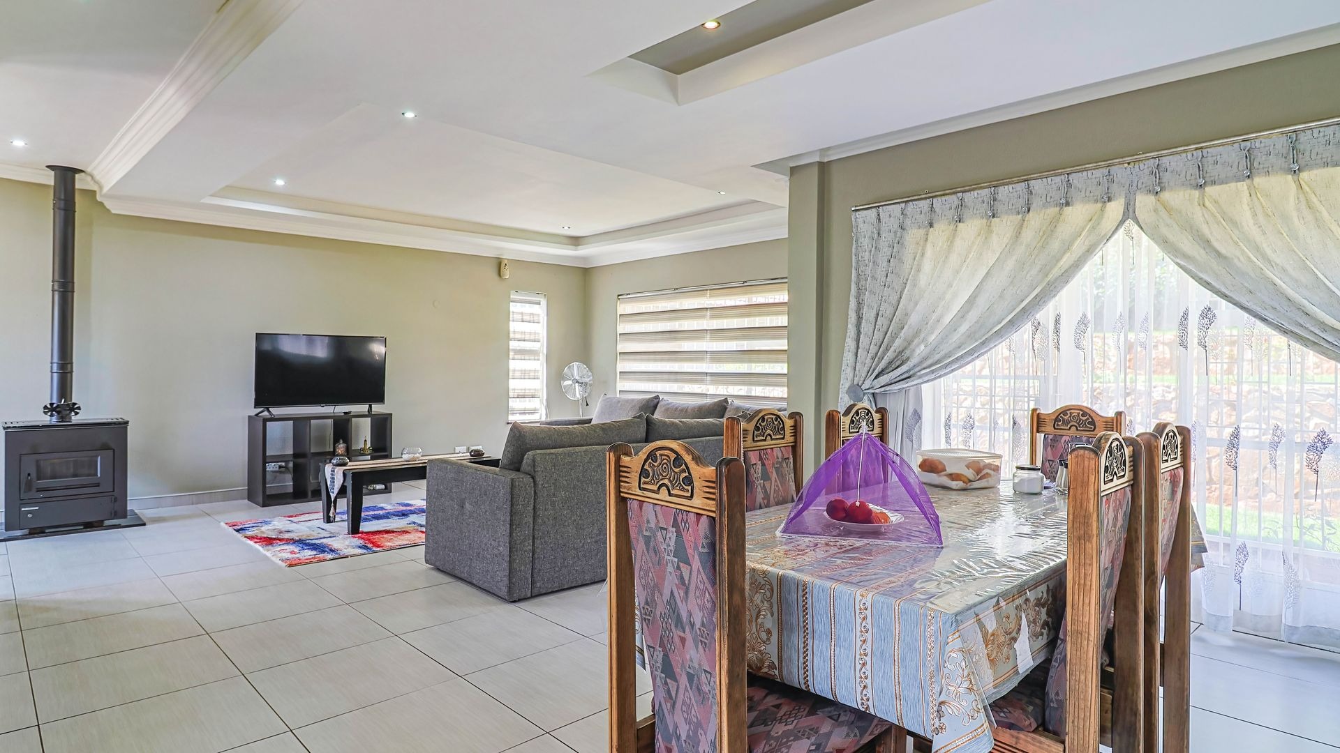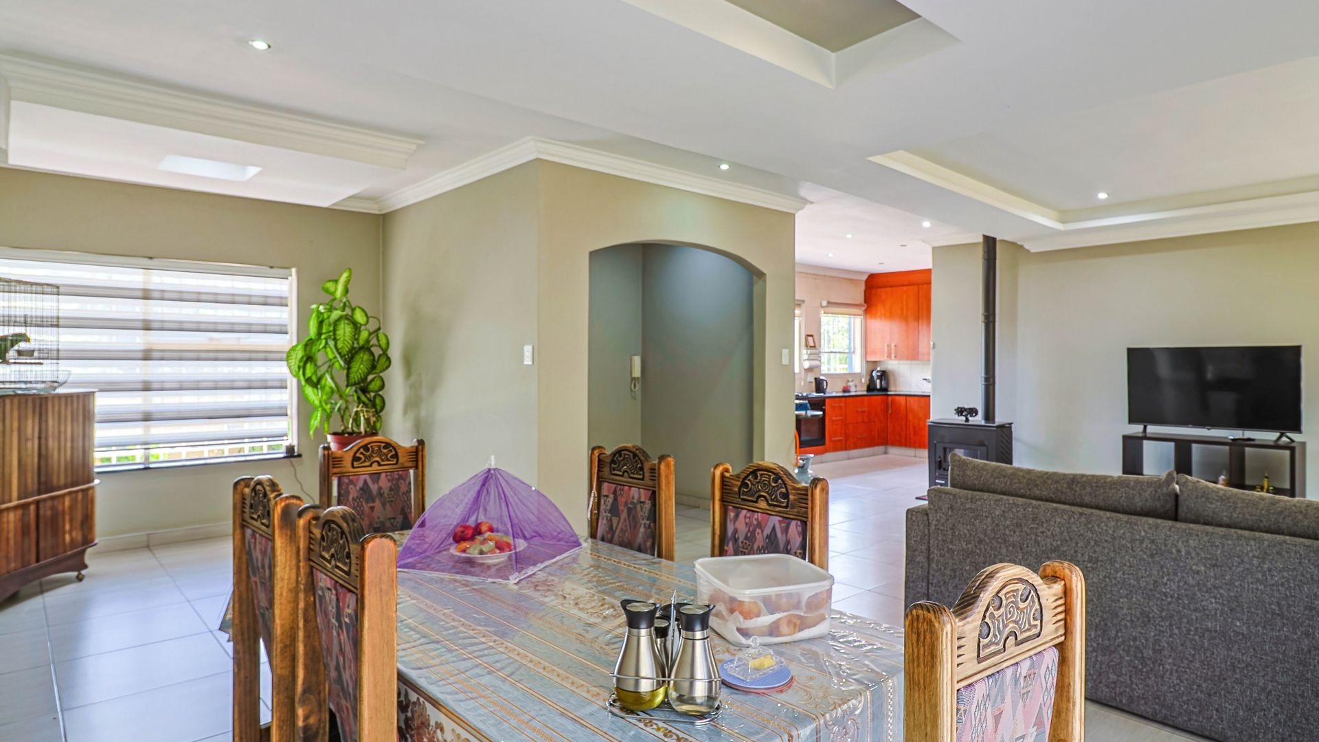 This charming and well-appointed family home is located in the highly sought-after suburb of Quellerina, offering generous living spaces and refined finishes throughout. The home features a spacious tiled lounge with a fireplace and striking designer ceiling, creating a warm and inviting atmosphere. A bright dining room, also enhanced by a designer ceiling, flows seamlessly into the lounge and well-designed kitchen, making it ideal for both everyday family living and effortless entertaining.