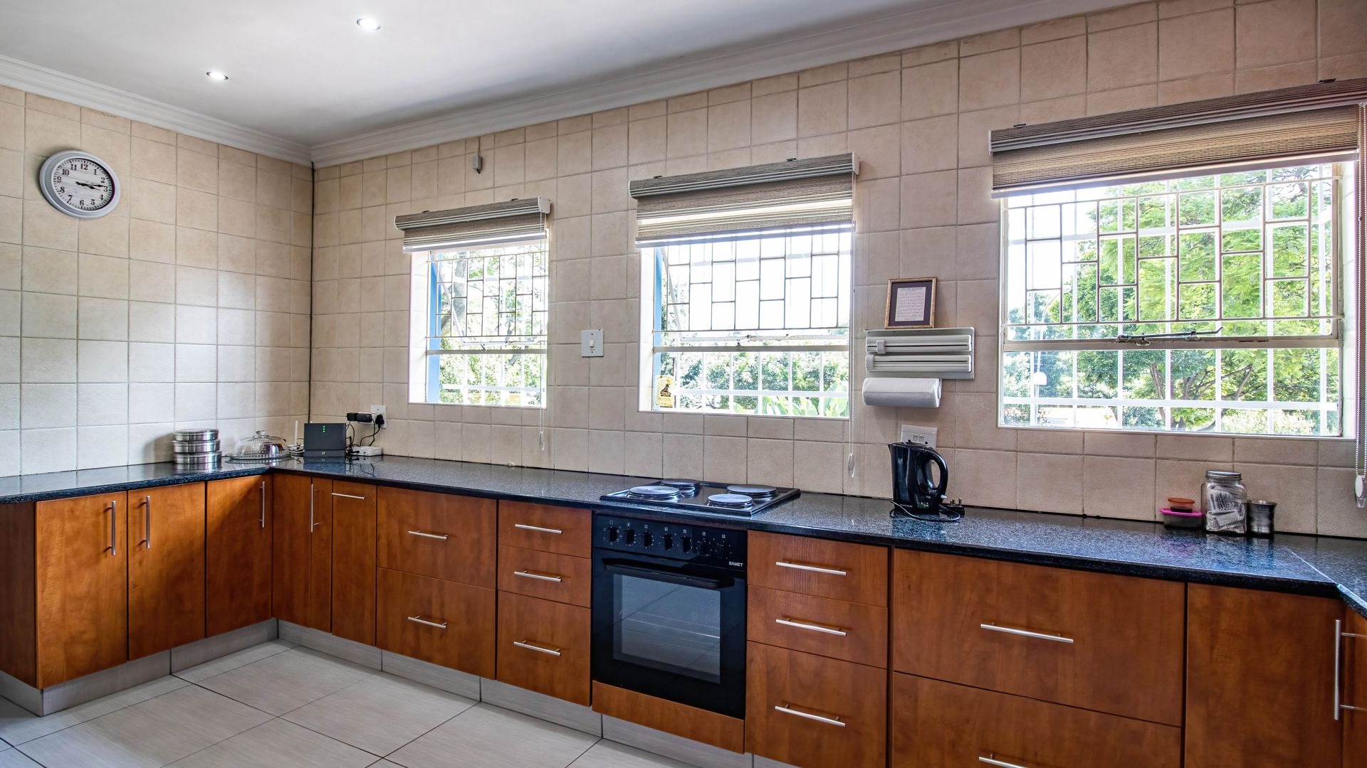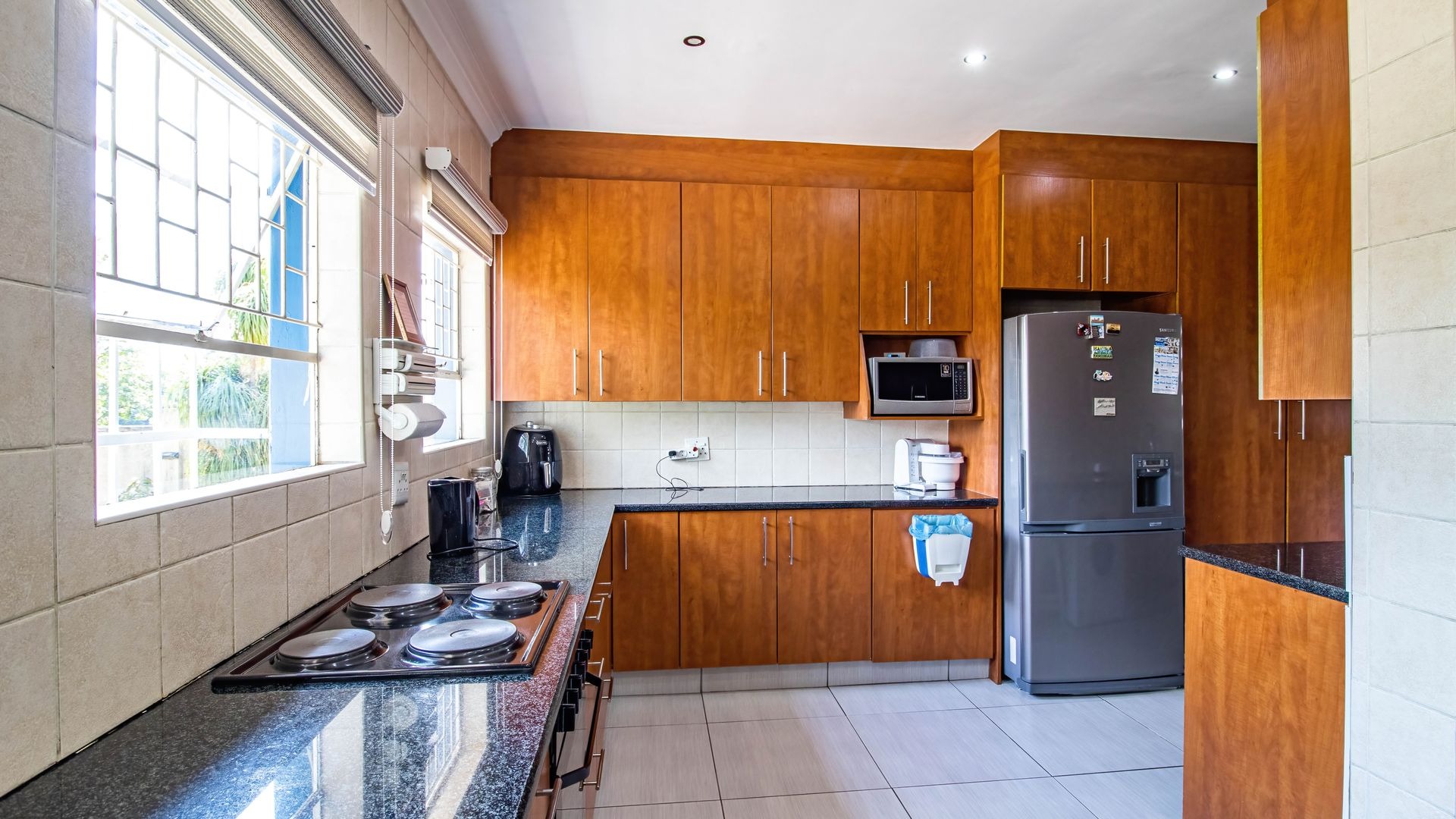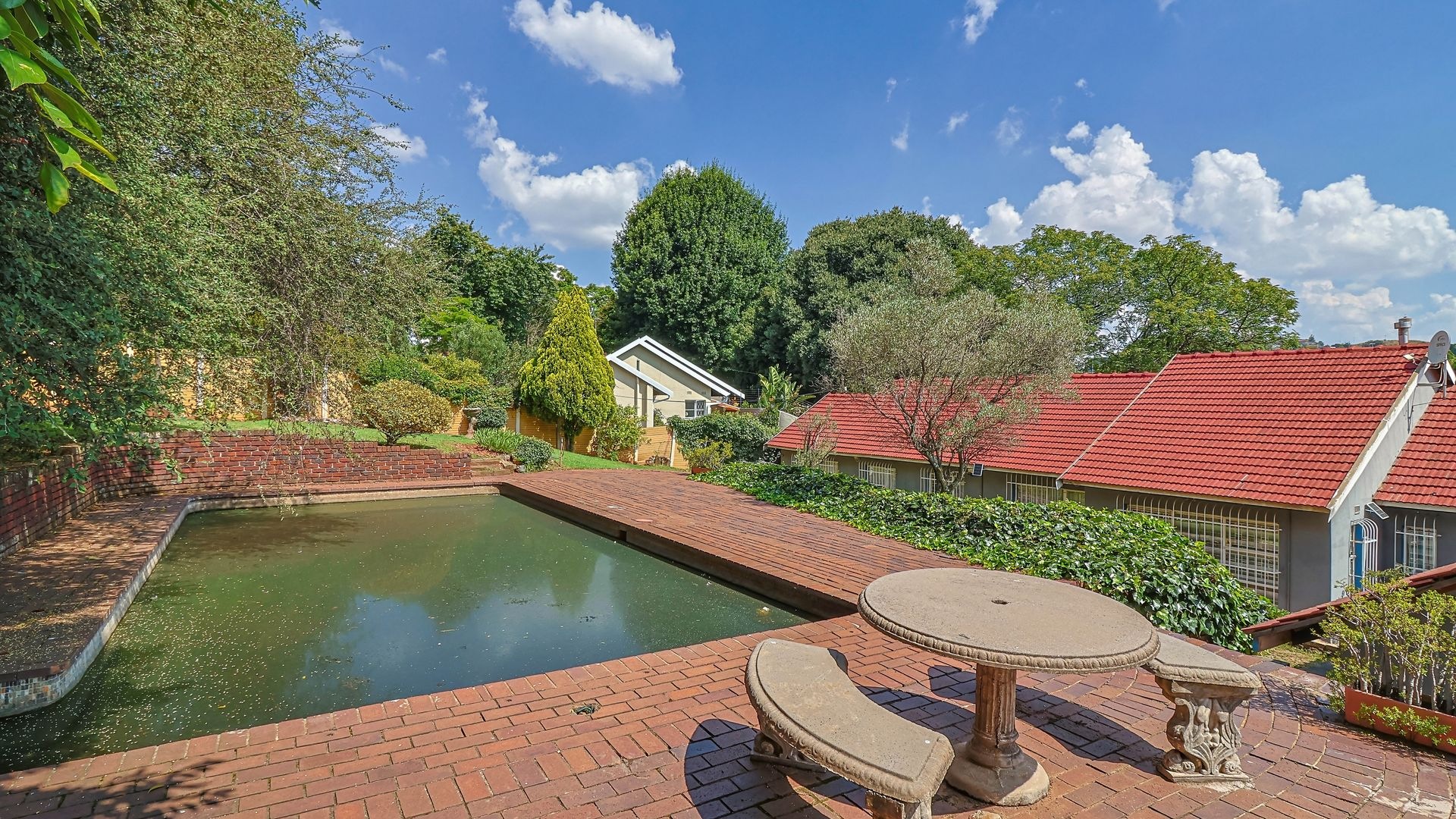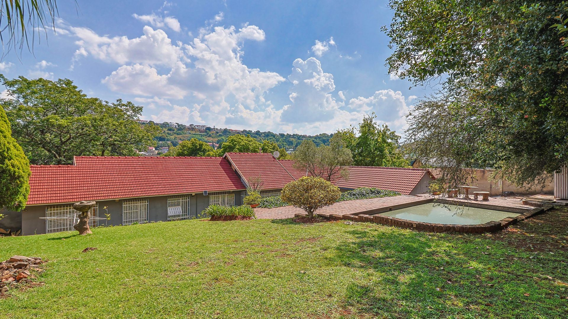 Accommodation includes three generously sized, light-filled bedrooms, with the main bedroom boasting a full en-suite bathroom featuring a double shower, while a modern guest bathroom services the remaining bedrooms. Adding exceptional value is a separate two-bedroom cottage with its own private access, perfect for extended family, guests, or rental income. Also staff room with room and bathroom. Set in a lush landscaped garden with mature trees and a swimming pool, the property is further complemented by a double automated garage, additional parking, excellent security, and a central location close to amenities, schools, and major access routes. Lets go view!