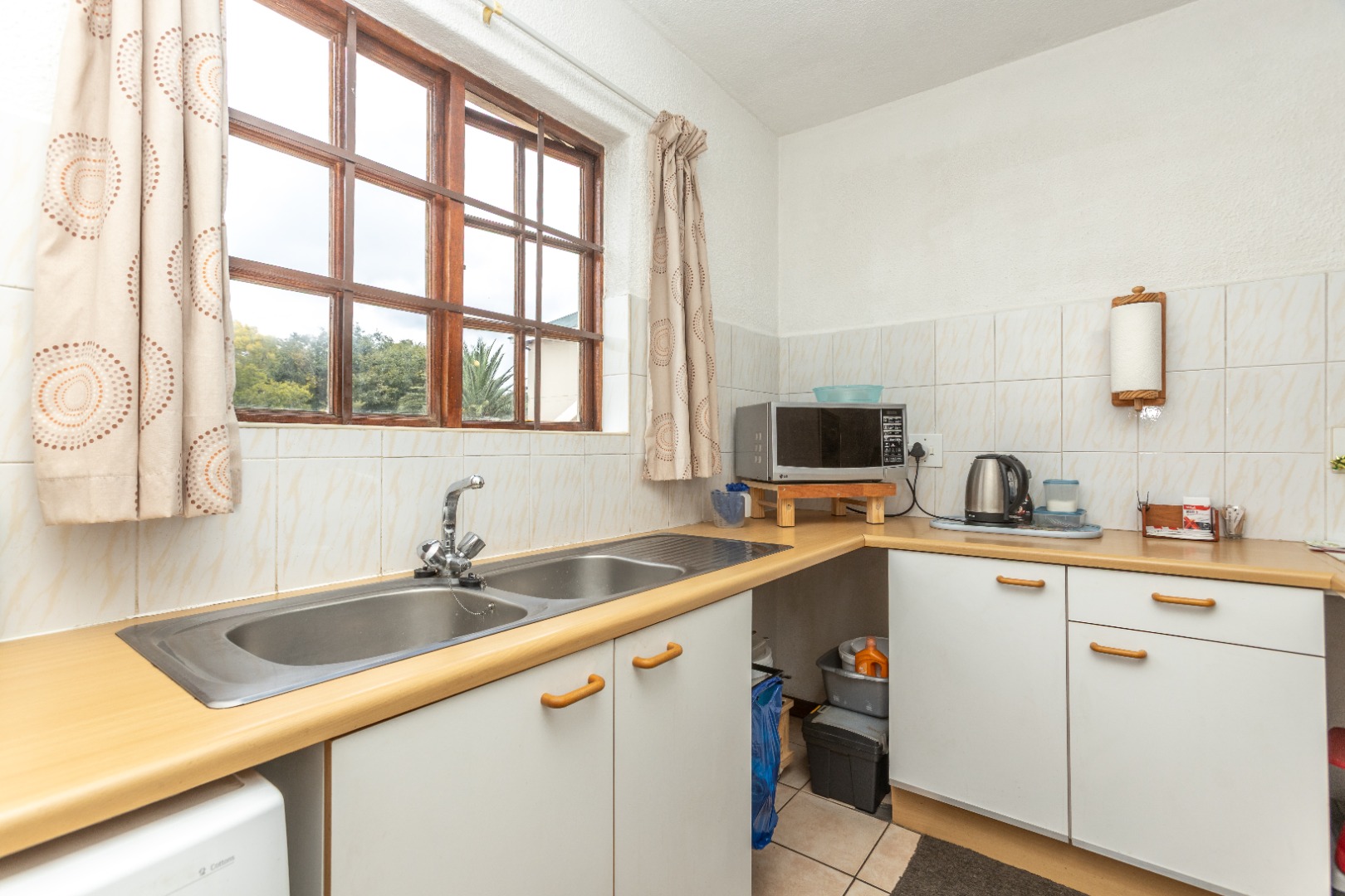 The Kitchen has ample cupboards, space for 2 under counter appliances and a single door fridge.