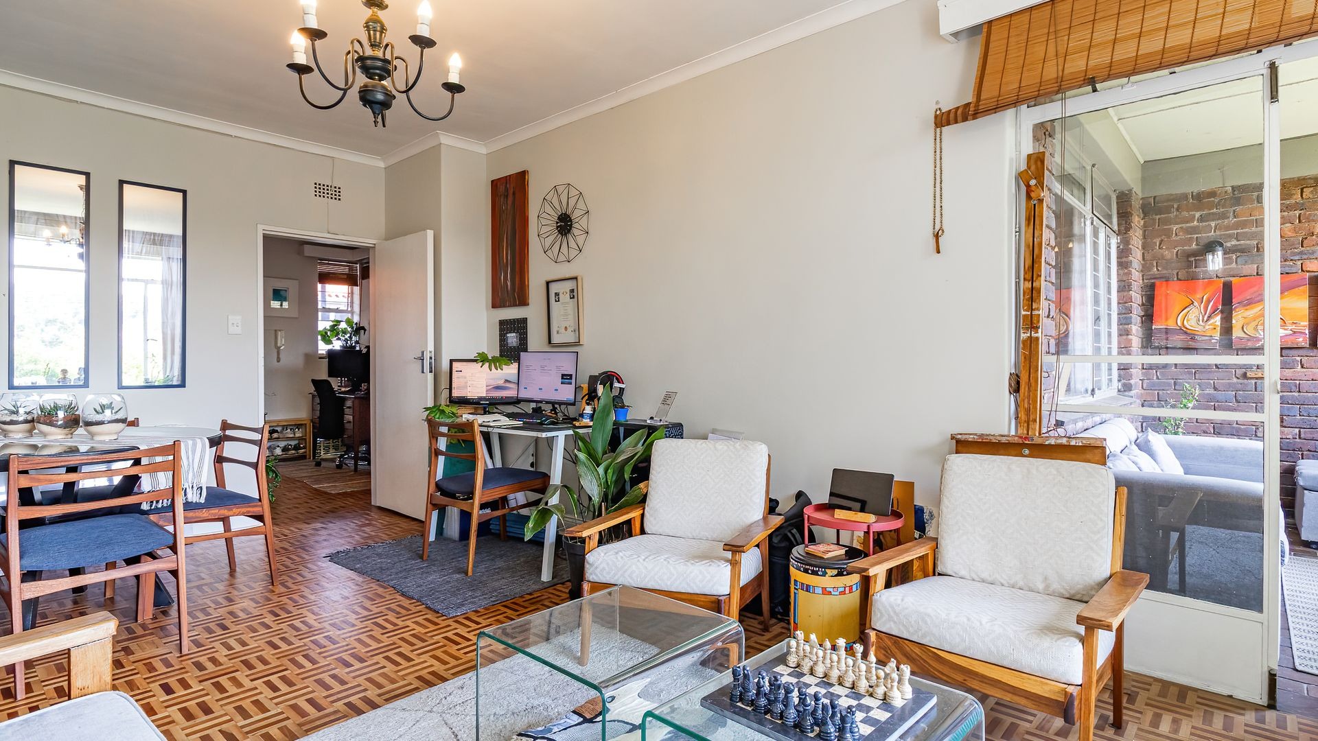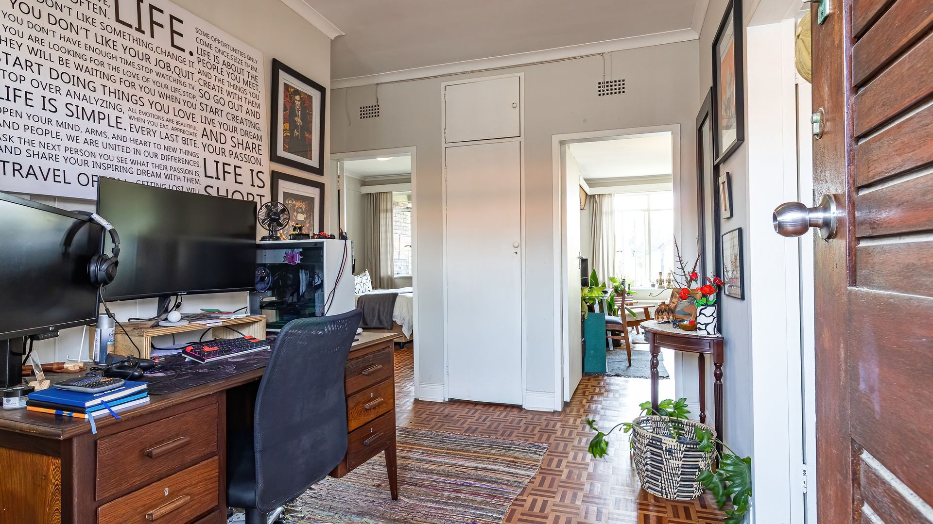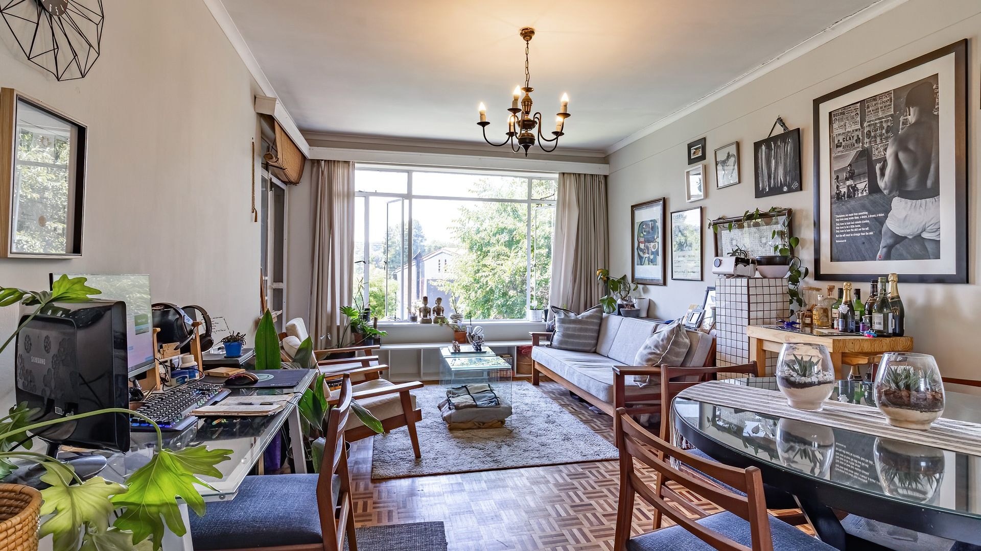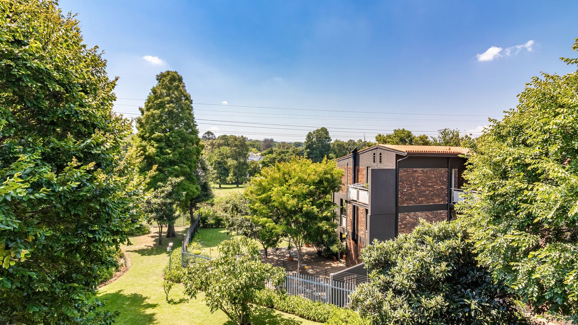This 84m² top-floor one-bedroom apartment in a beautifully maintained, well managed complex offers sweeping treetop views, parklike gardens, and central access to Sandton CBD and Rosebank business districts. It features generously proportioned rooms with solid wood parquet flooring and large window-scapes affording lots of natural light. Large reception room opens to a balcony perfect for relaxing and enjoying the sunsets. Well-appointed kitchen with ample storage. Comfortable bedroom with good wardrobe space and a modern bathroom. Spacious entrance hall - ideal for work from home.