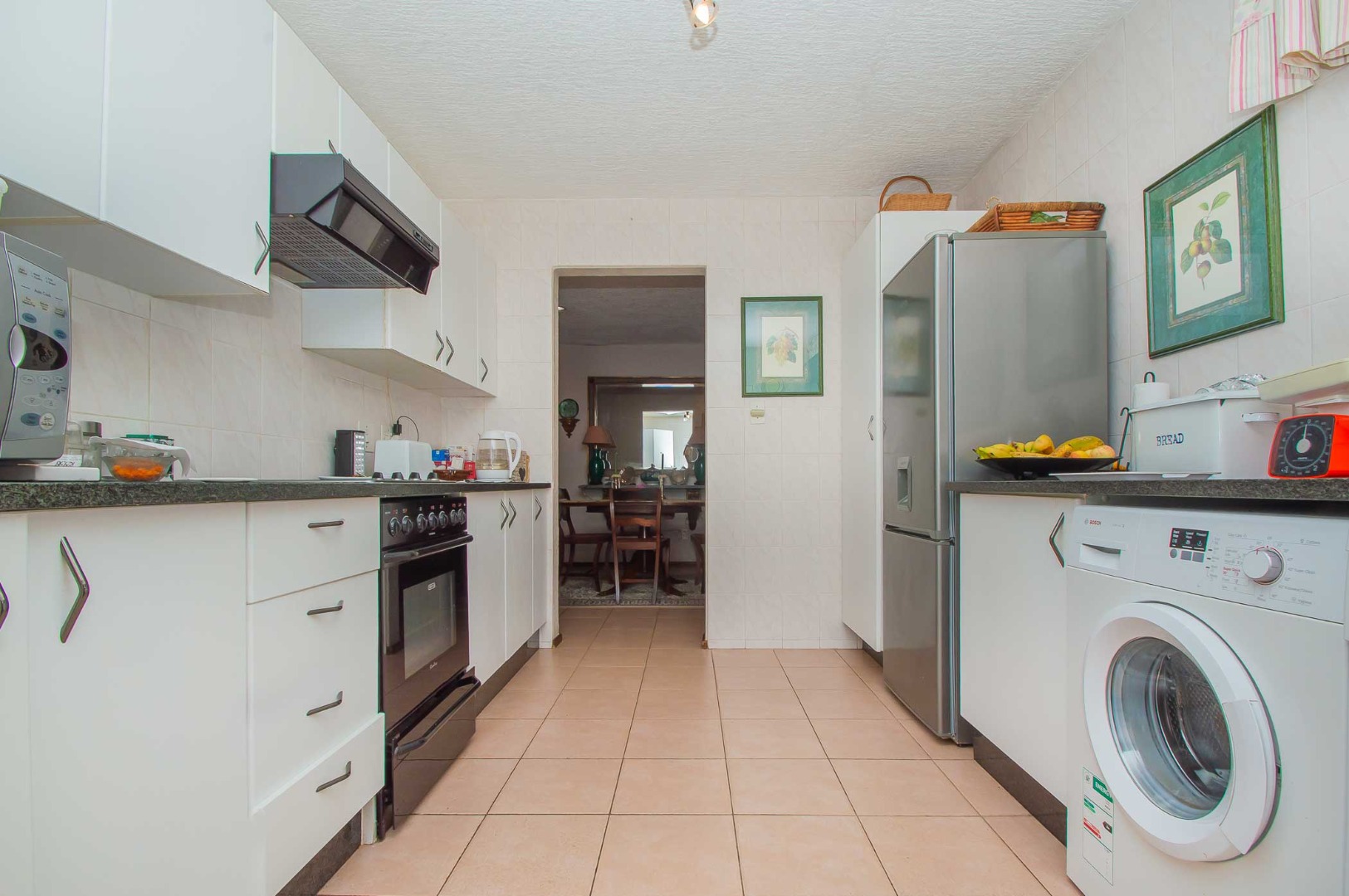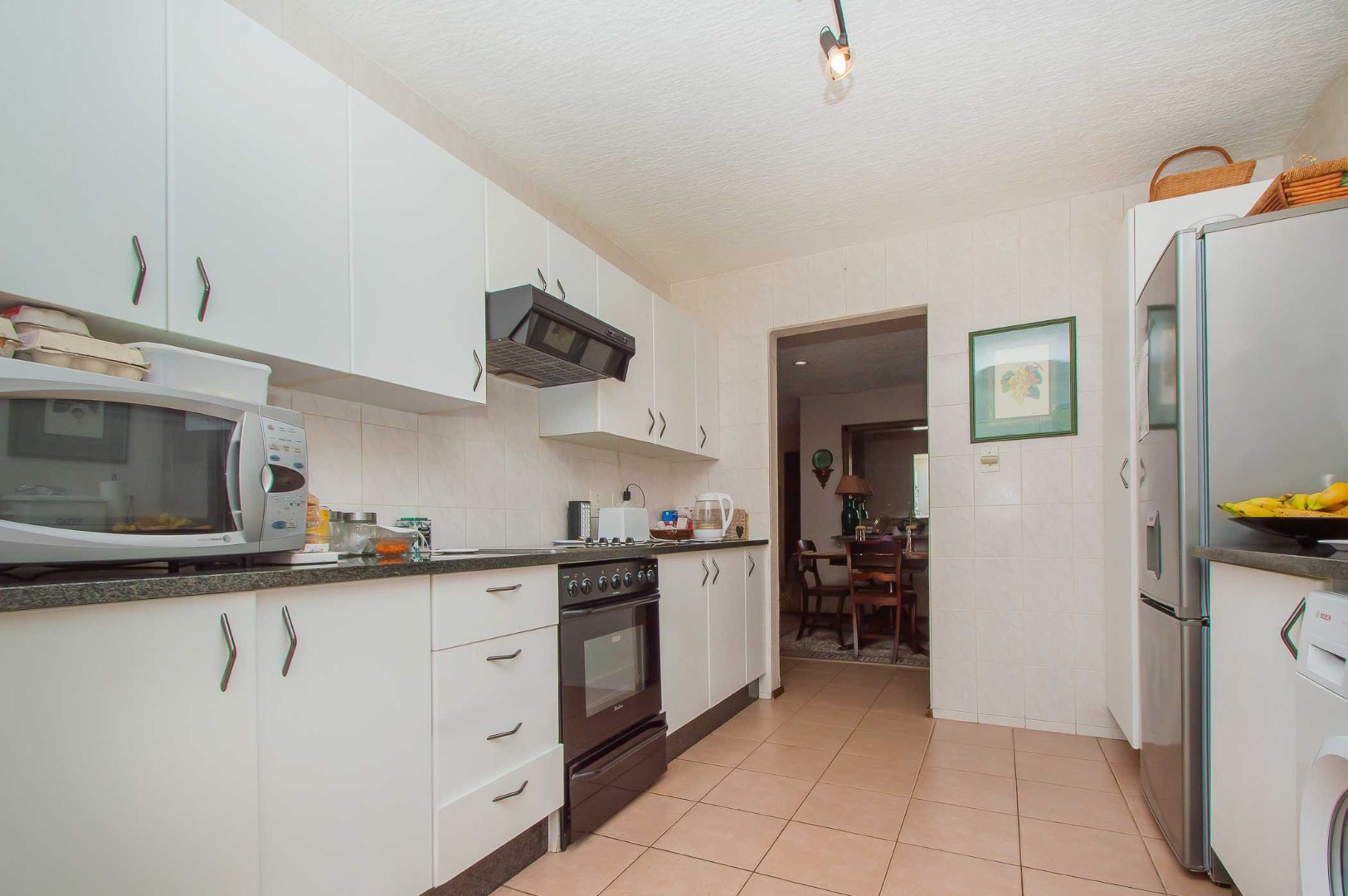 The kitchen is well-equipped with ample cupboard space, catering to all your storage needs and providing an inviting space for culinary creations.