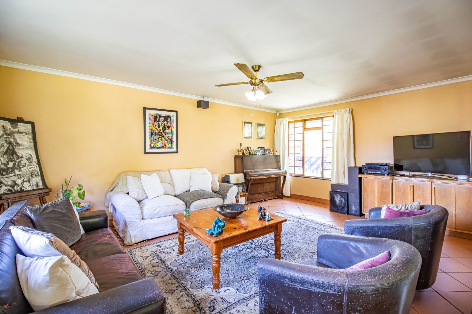 The home features a well-designed kitchen with a separate scullery, ample cupboard space, and a gas stove – perfect for family cooking and entertaining. Enjoy a separate dining area, a dedicated office/study, and a spacious entertainment area, ideal for gatherings or relaxing evenings.