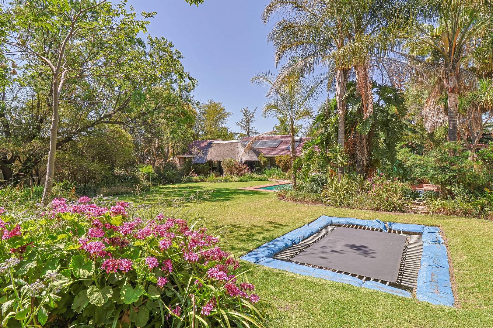 Step outside to a large, wrap-around garden offering plenty of space , a trampoline for children and pets to play and afire pit for those wonderful evenings spent with family . The enclosed patio overlooks a sparkling pool, creating the perfect outdoor oasis.