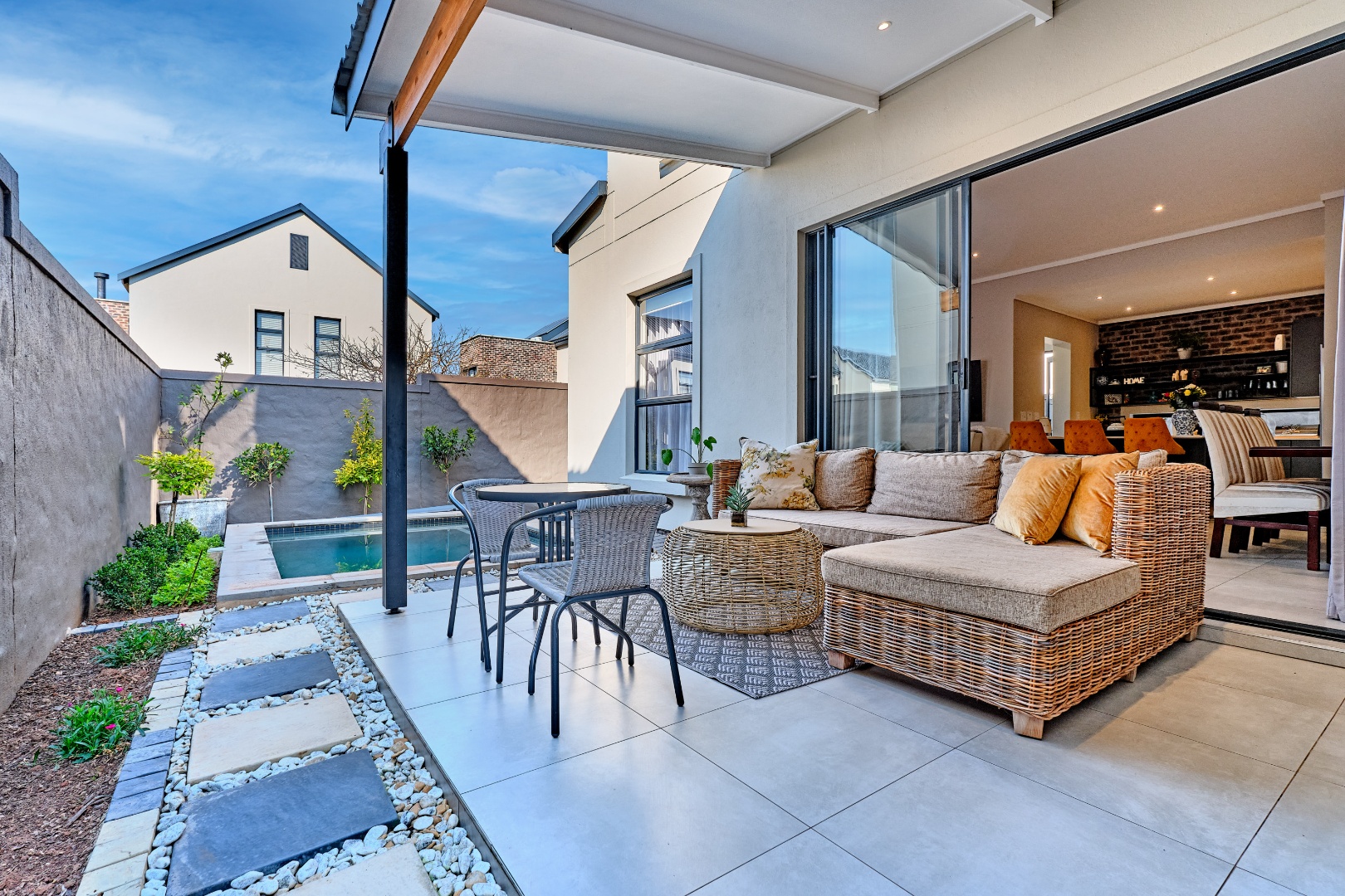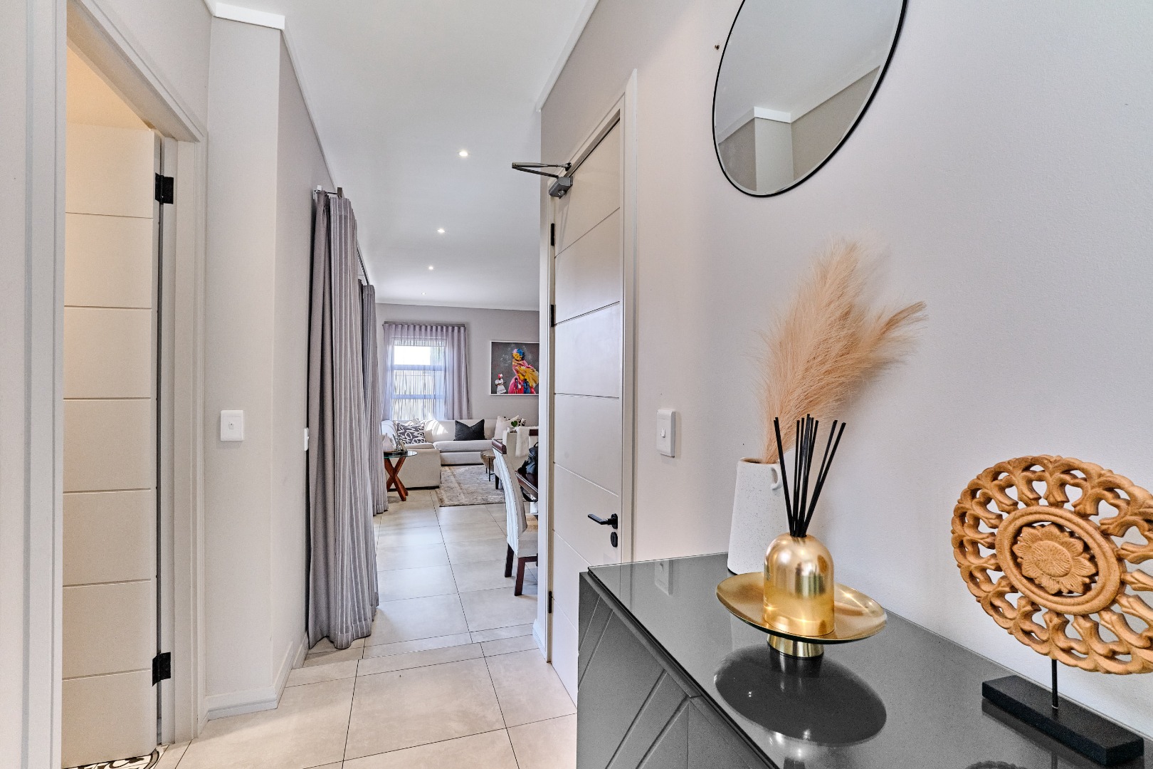 Beautiful contemporary residence located in the highly desirable Eagle Ridge Estate. Eagle Ridge Estate comprises of 25 freehold properties within a secure complex featuring 24/7 on-site security, surveillance cameras, and electric fencing. The inclusion of solar geysers, gas appliances, prepaid electricity meters, and borehole water showcases a commitment to environmentally friendly technology. High-speed fiber optic internet is available in all residences. Additionally, residents can enjoy a secure and private play area within the complex. Each home is meticulously designed with top-quality finishes.
