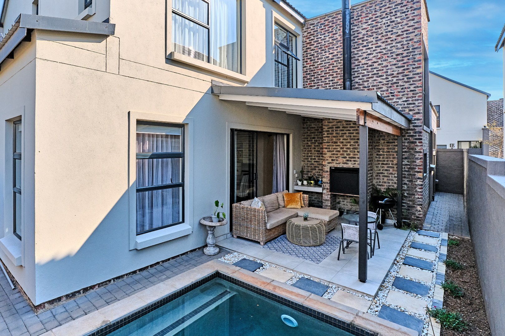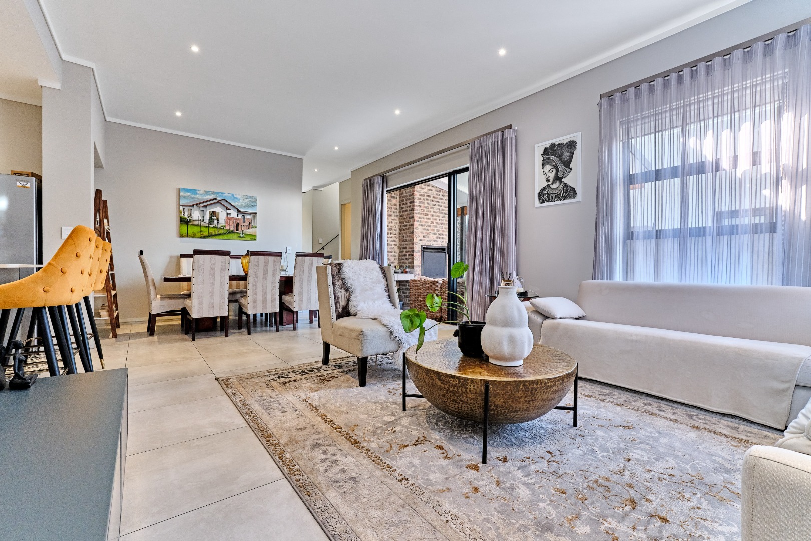 Beautiful contemporary residence located in the highly desirable Eagle Ridge Estate. Eagle Ridge Estate comprises of 25 freehold properties within a secure complex featuring 24/7 on-site security, surveillance cameras, and electric fencing. The inclusion of solar geysers, gas appliances, prepaid electricity meters, and borehole water showcases a commitment to environmentally friendly technology. High-speed fiber optic internet is available in all residences. Additionally, residents can enjoy a secure and private play area within the complex. Each home is meticulously designed with top-quality finishes.