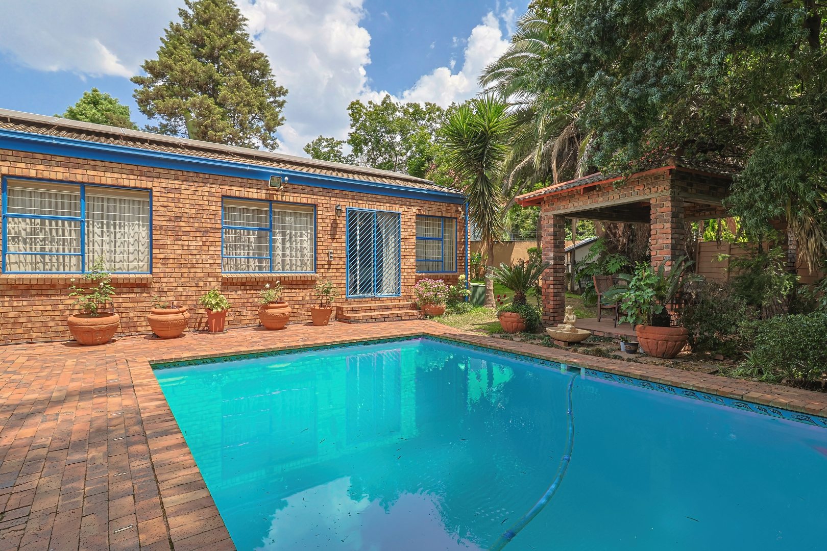 Outdoors, enjoy a wrap-around garden that offers privacy and plenty of space for children, pets, or weekend braais with friends. The sparkling pool adds the perfect touch for summer relaxation.