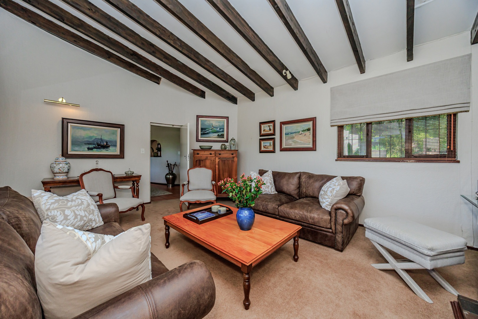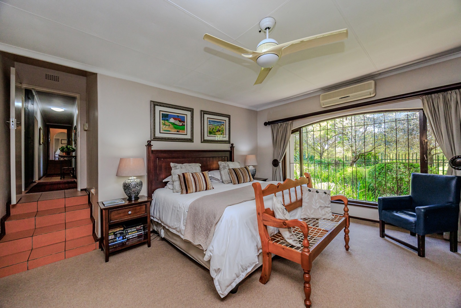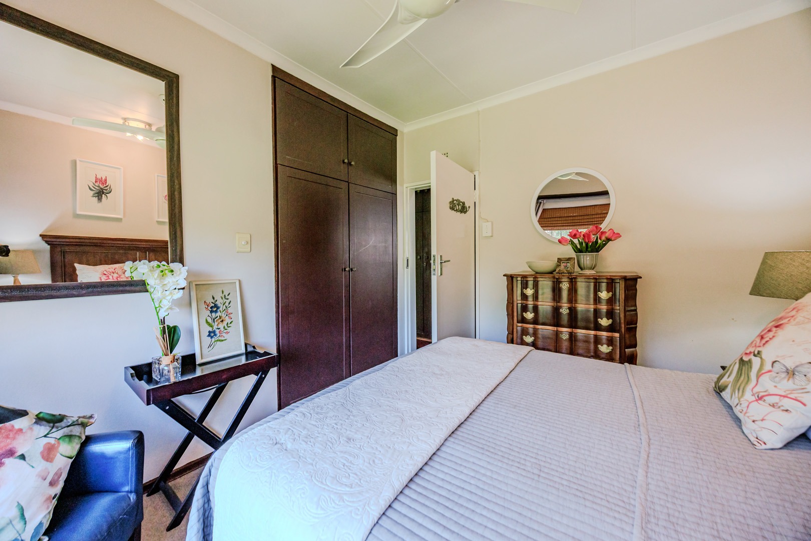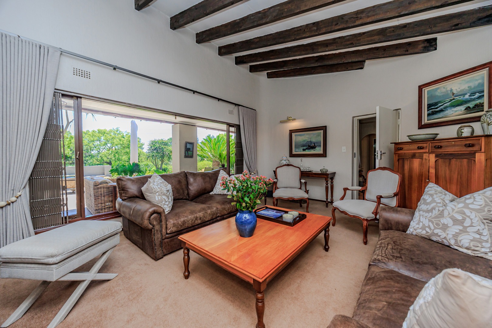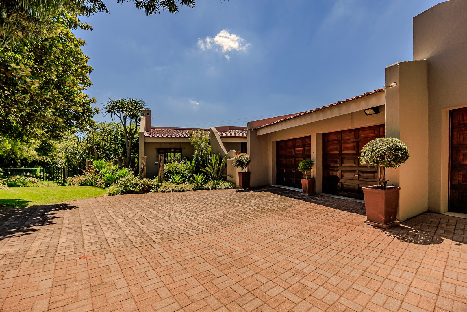 Parking is provided by three garages with direct access into the home as well as additional off street parking. Staff accommodation as well as additional storage space is also available. The garden is equipped with a borehole and water tank, along with a backup water tank for the home. The large stand offers a unique opportunity for subdivision and future development.