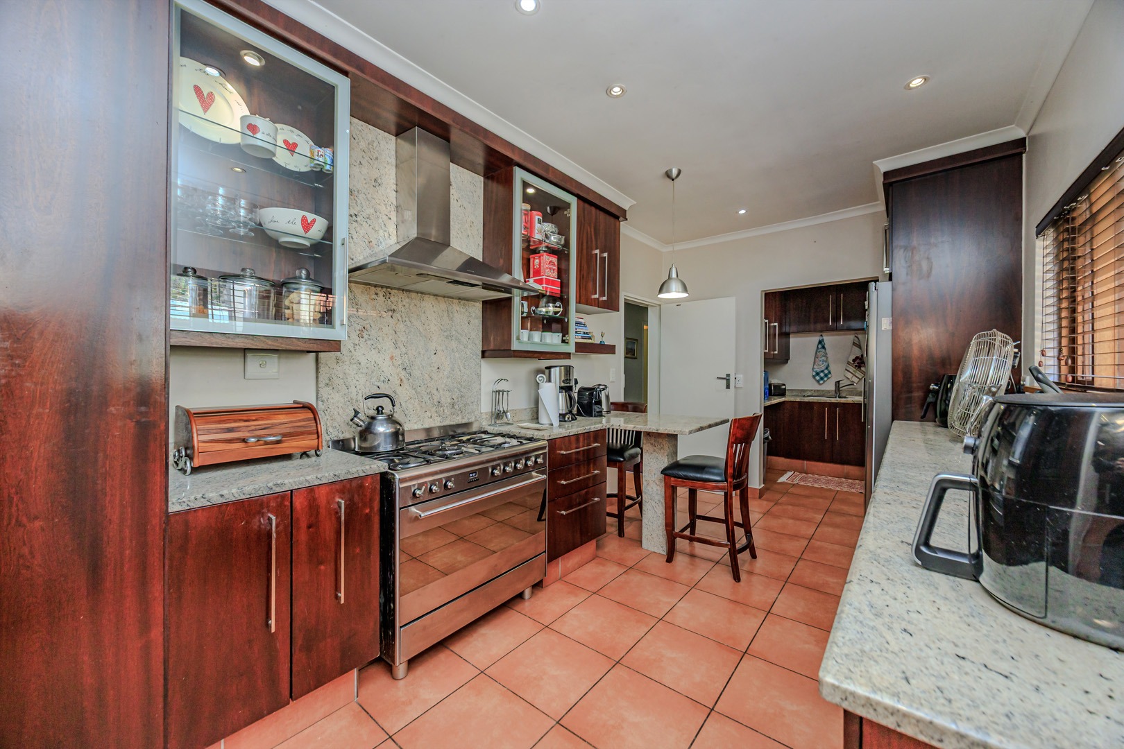 Adjacent to the modern kitchen, you'll find a sophisticated dining room, perfect for hosting dinner parties or enjoying family meals. The kitchen itself is a chef’s delight, with Smeg hob and built in microwave, offering a separate scullery and laundry room for added convenience. A cozy study nook located by the kitchen provides the perfect spot for homework or a home office.
