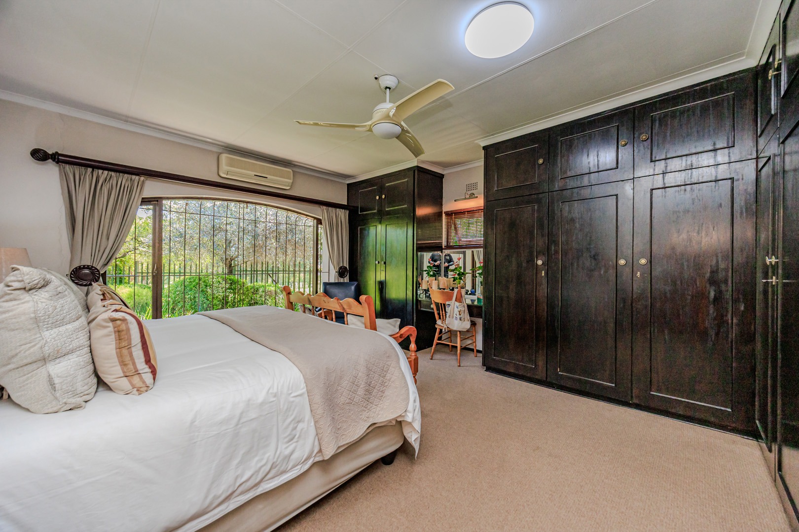 The home offers four spacious bedrooms, ensuring ample space for the whole family. The main suite is a private retreat, complete with air conditioning and an en-suite bathroom. The additional three bedrooms are serviced by a well-appointed family bathroom.